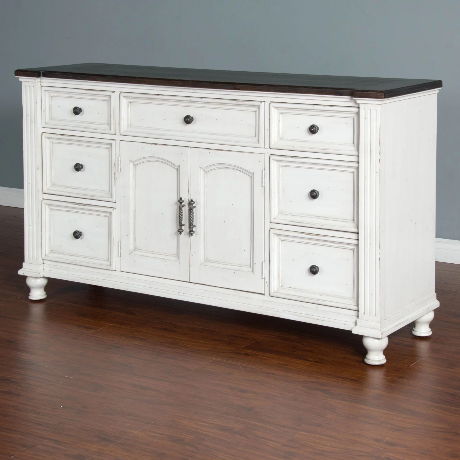 Sunny Designs Carriage House 68" Farmhouse Wood Dresser in White/Dark Brown