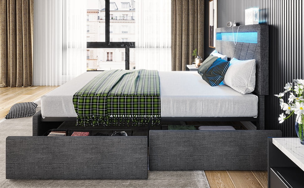 AFI Oxford Farmhouse Wood Panel Headboard with 2 USB Ports, Full, Espresso