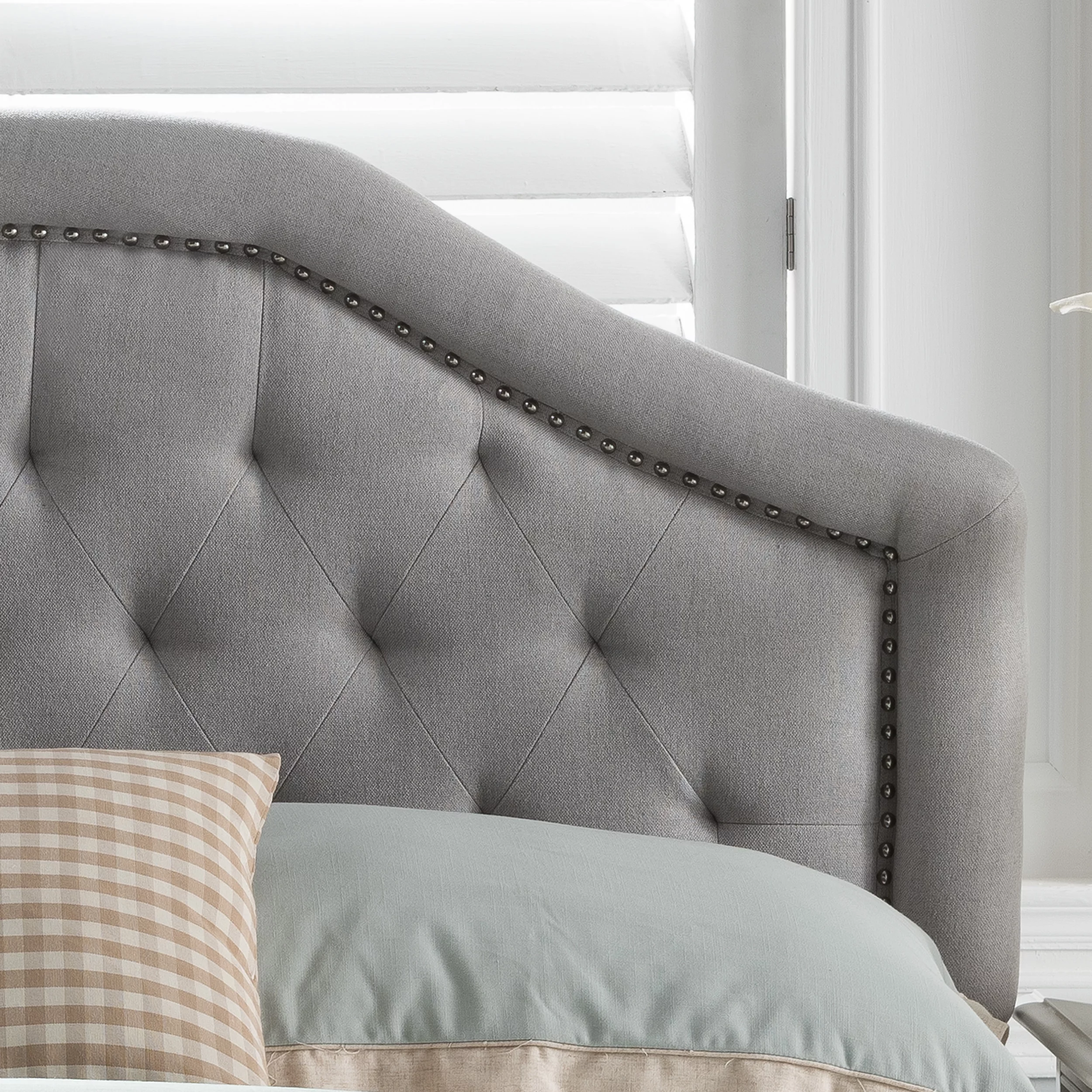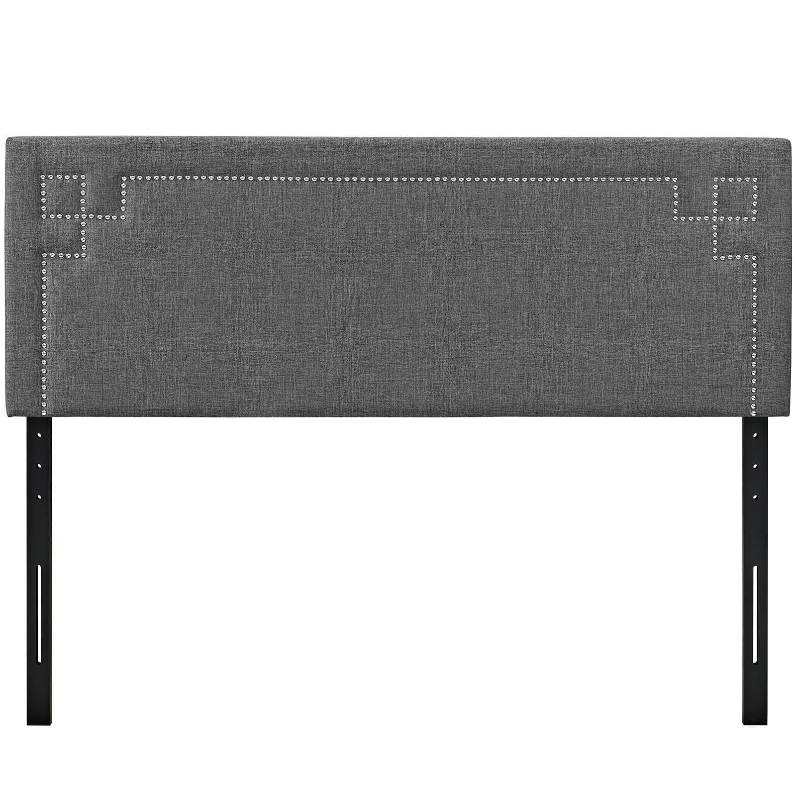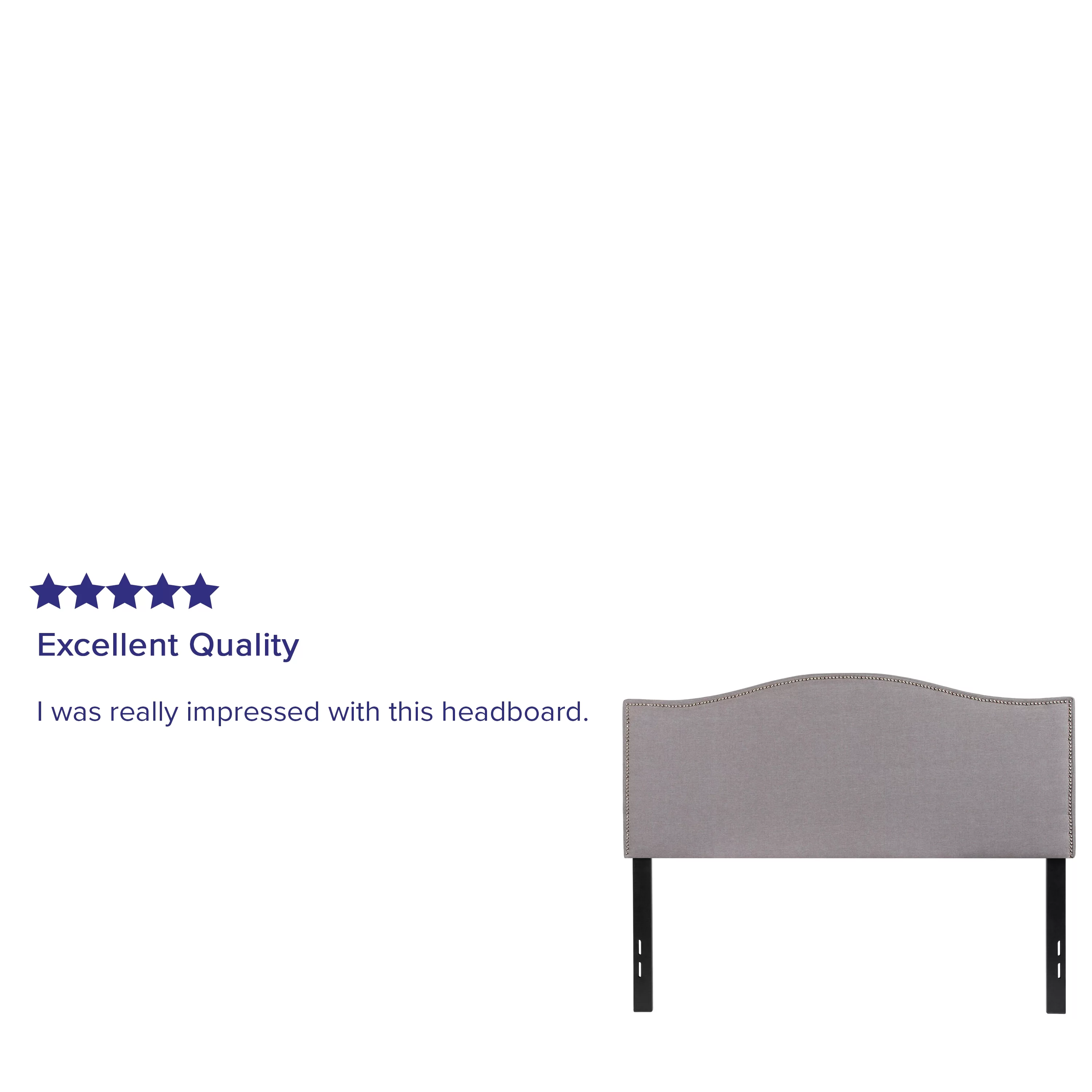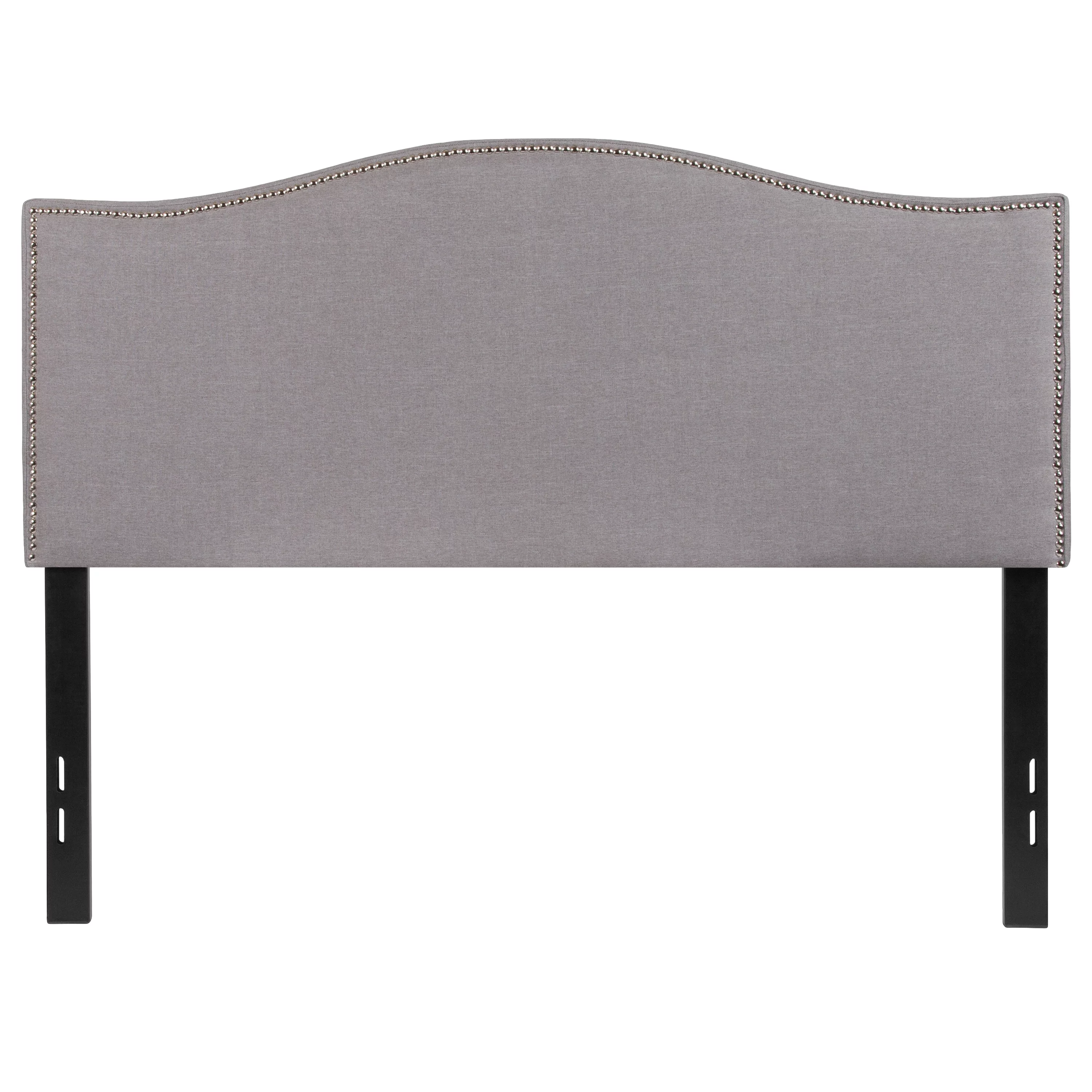 Emma + Oliver Upholstered Full Size Headboard with Nailtrim in Light Gray Fabric