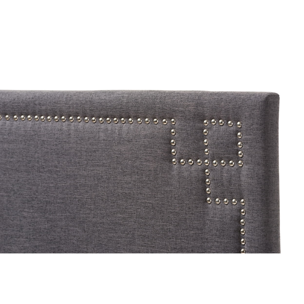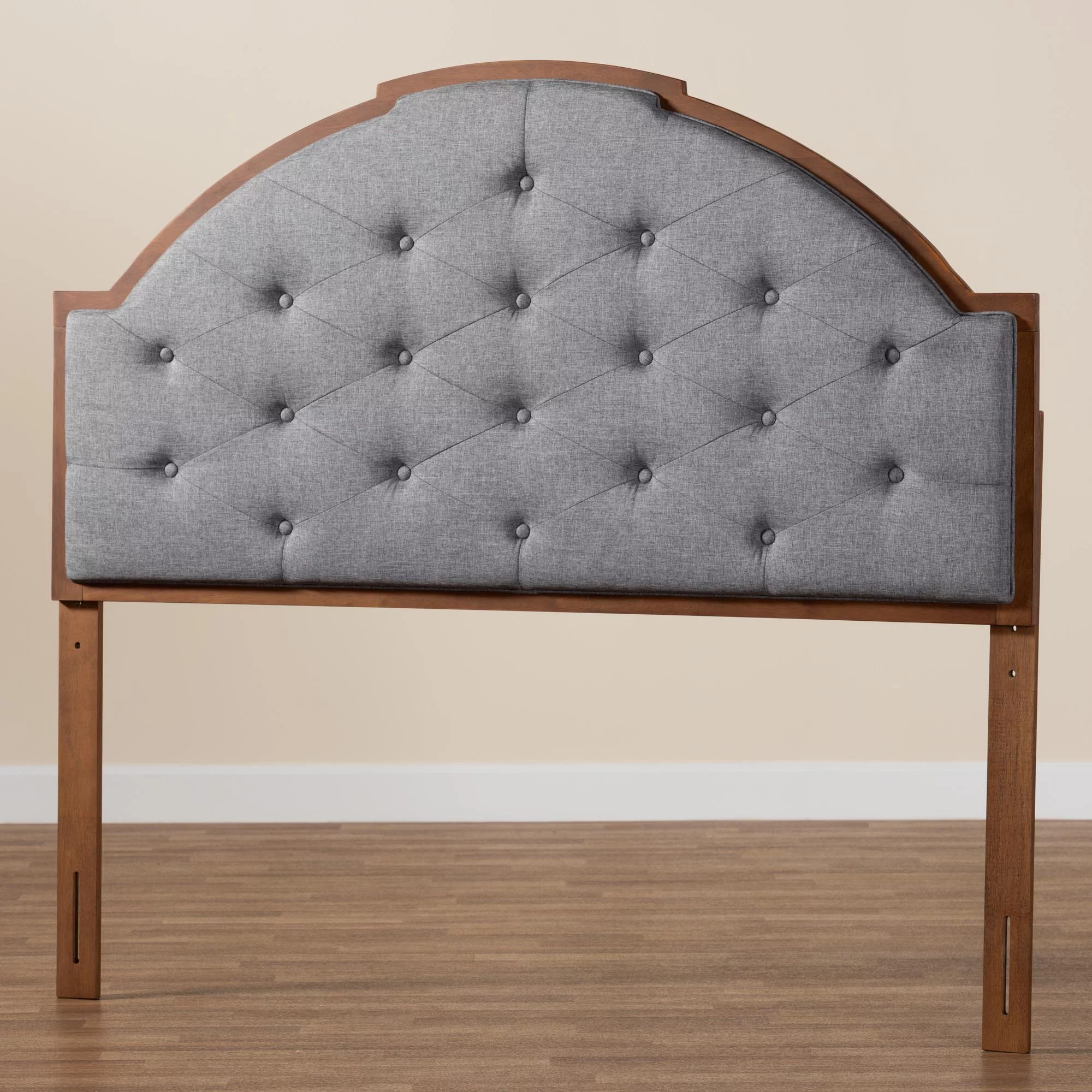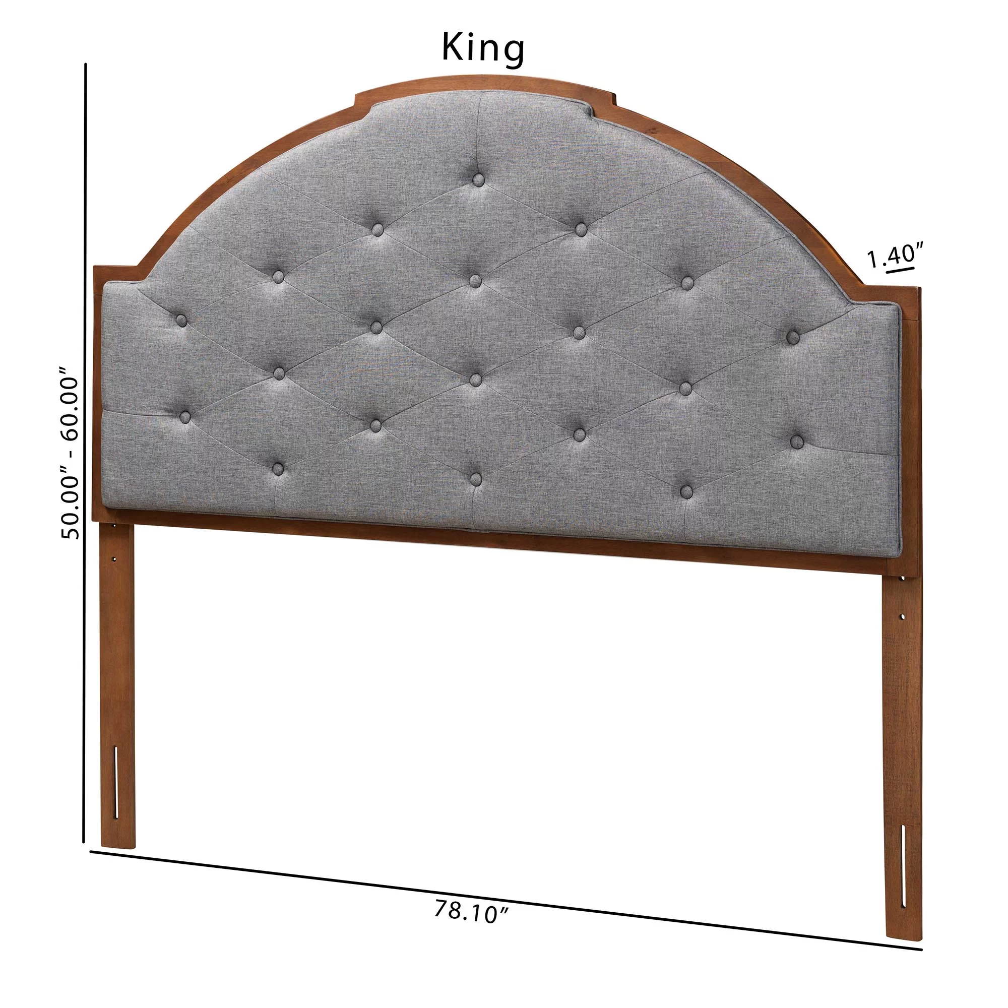 Baxton Studio Madeline Classic and Traditional Grey Fabric and Walnut Brown Finished Wood Queen Size Headboard