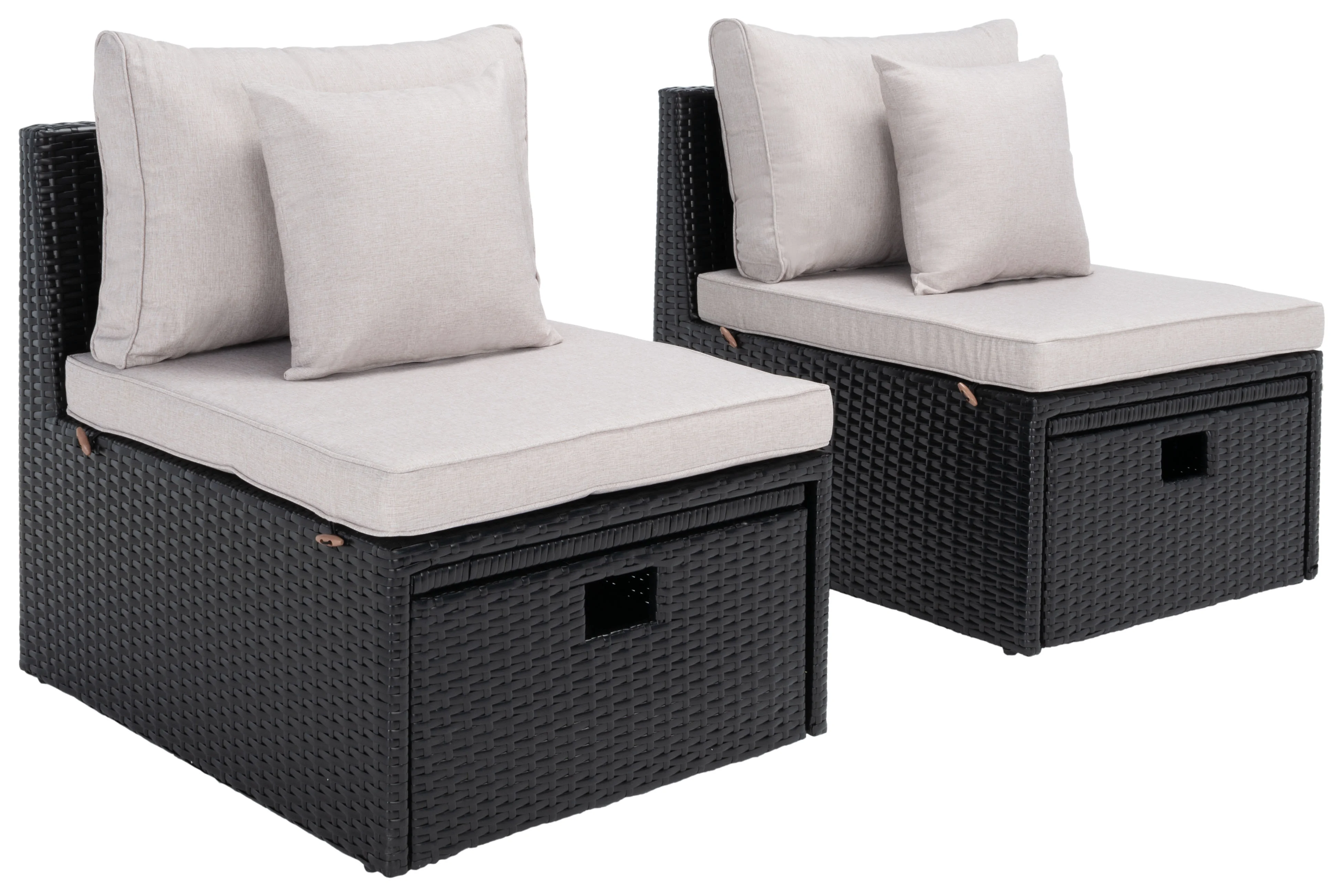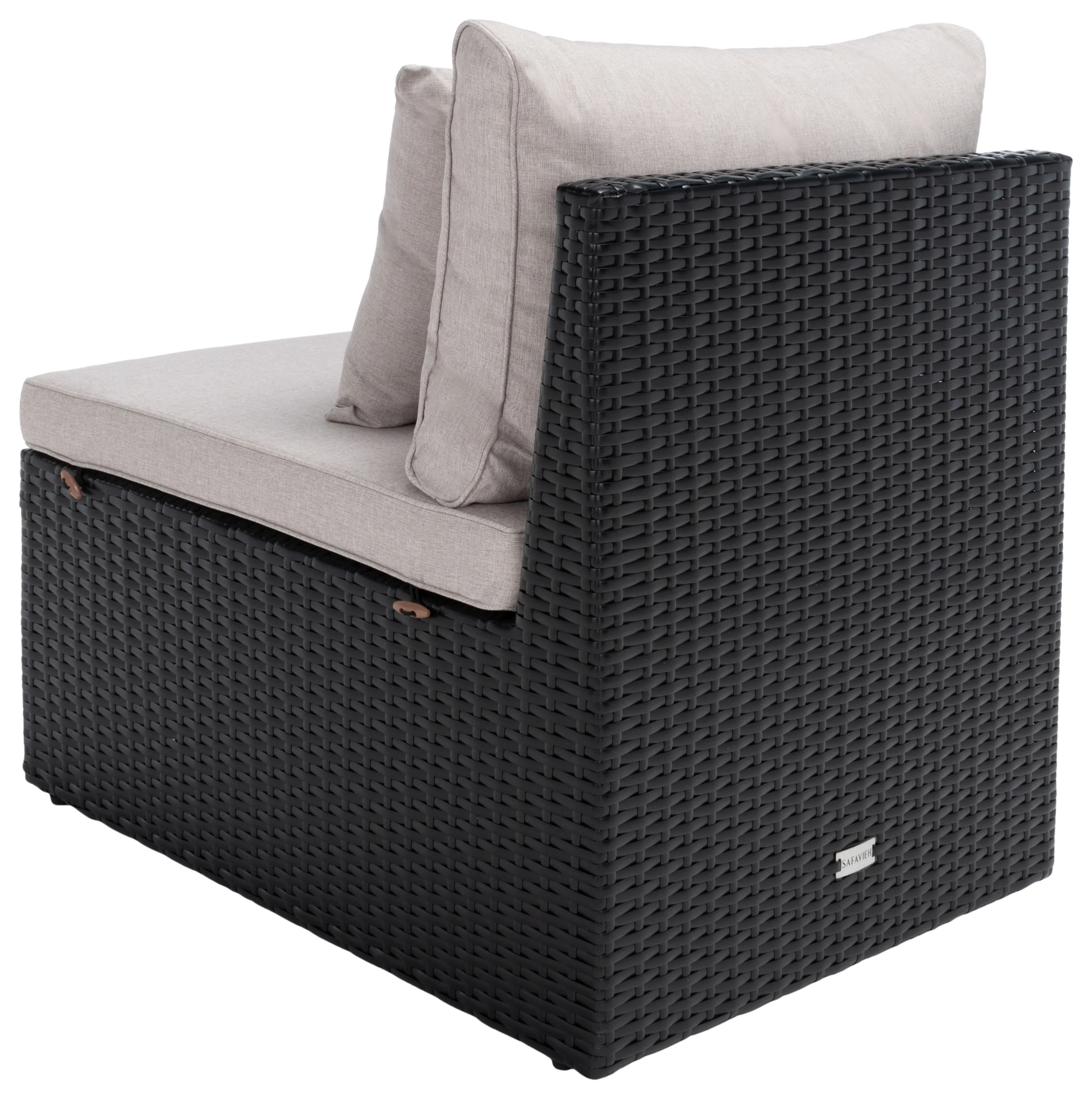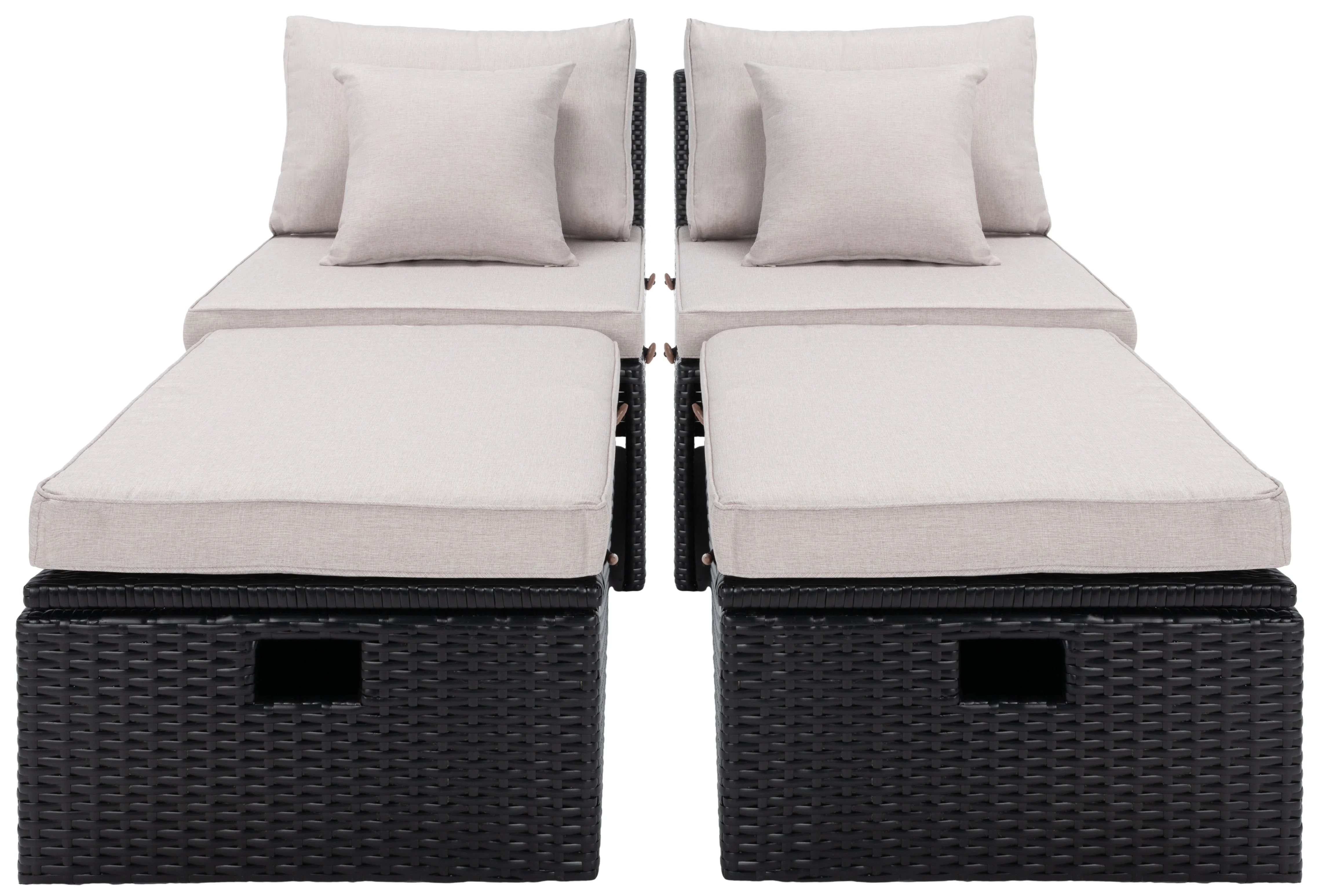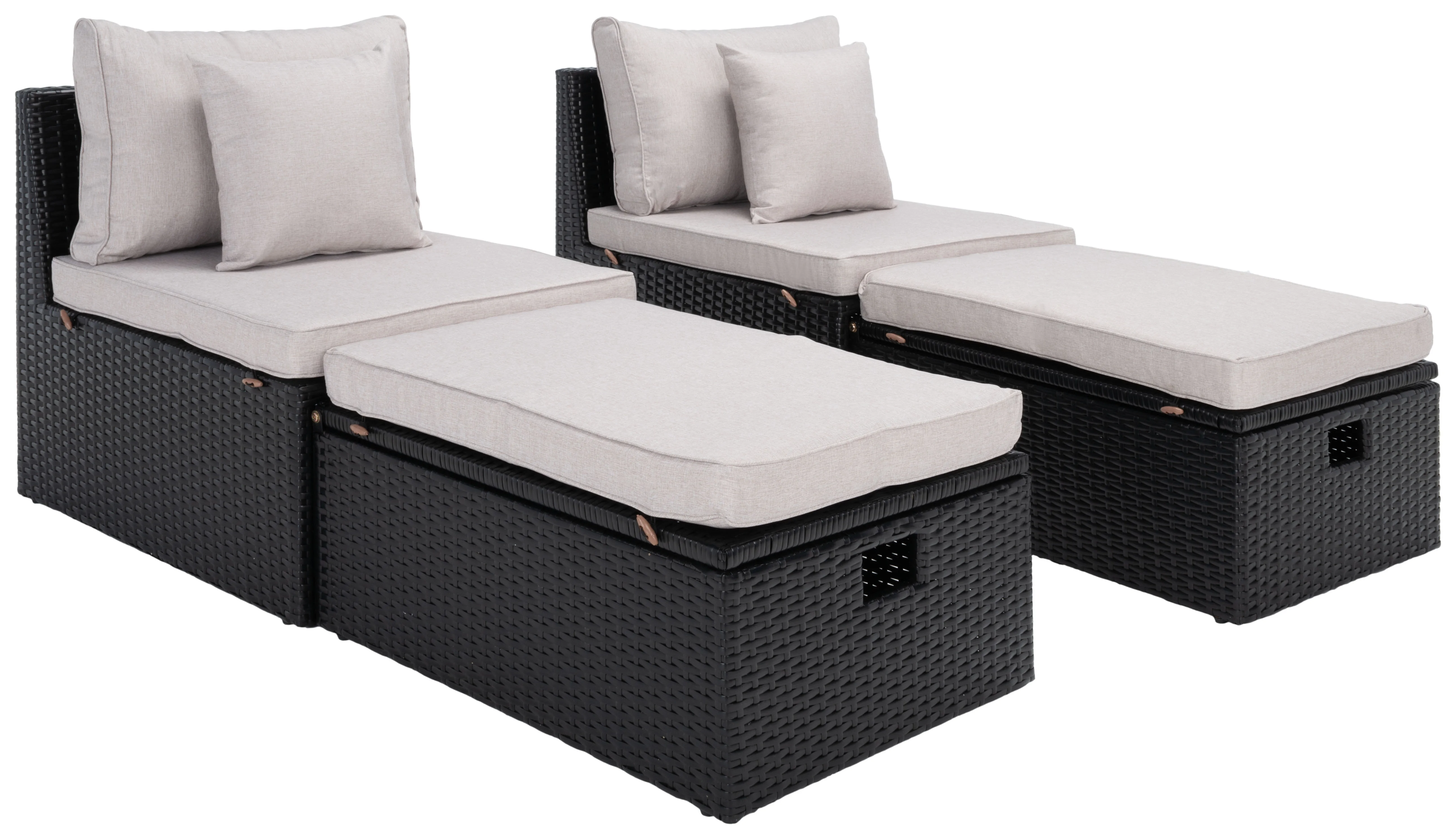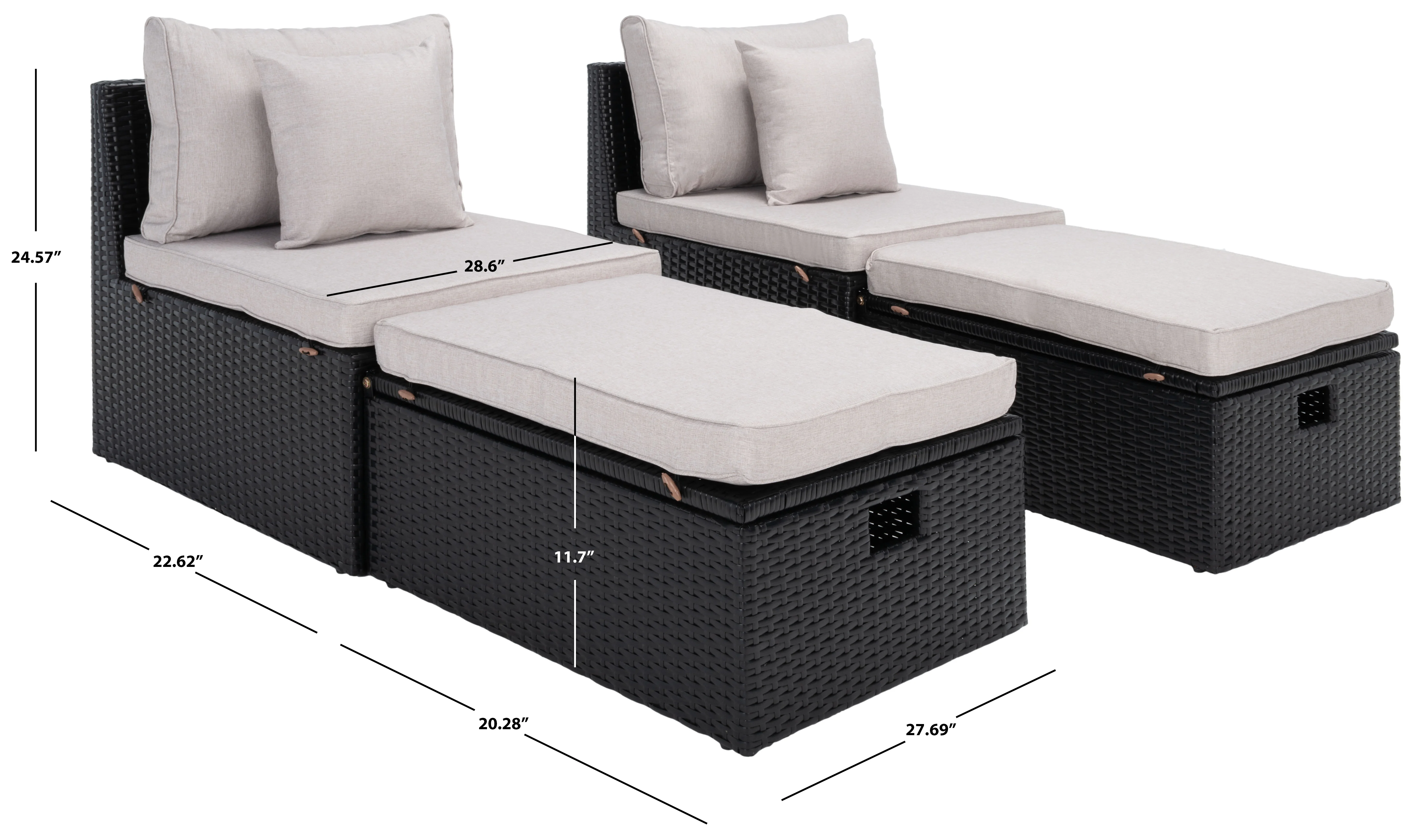 SAFAVIEH Pramla Outdoor Patio 4 Piece Sette With Ottoman, Black/Light Grey