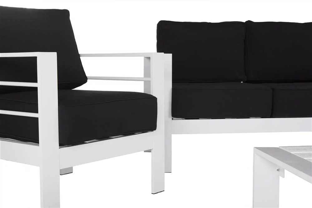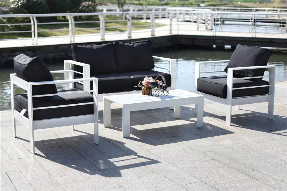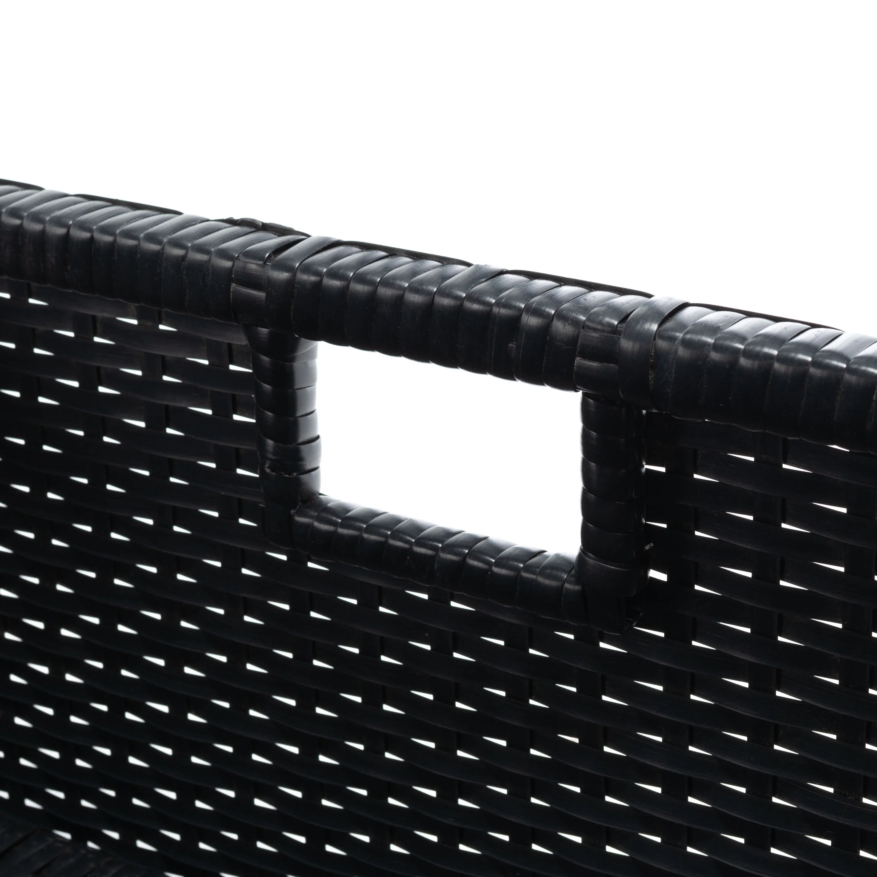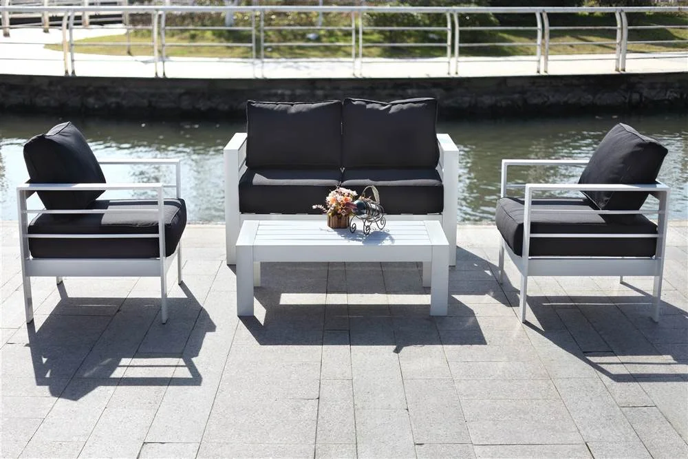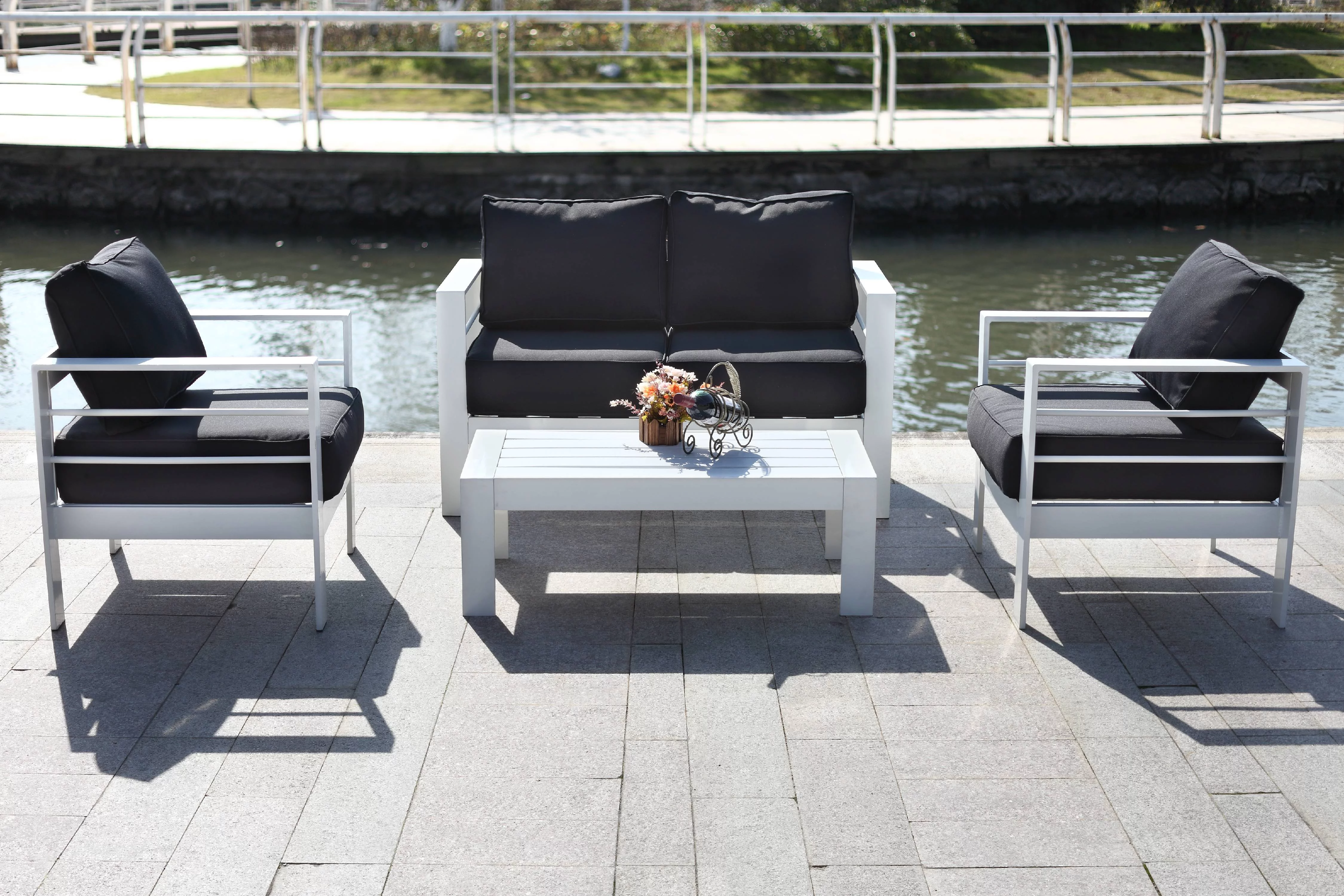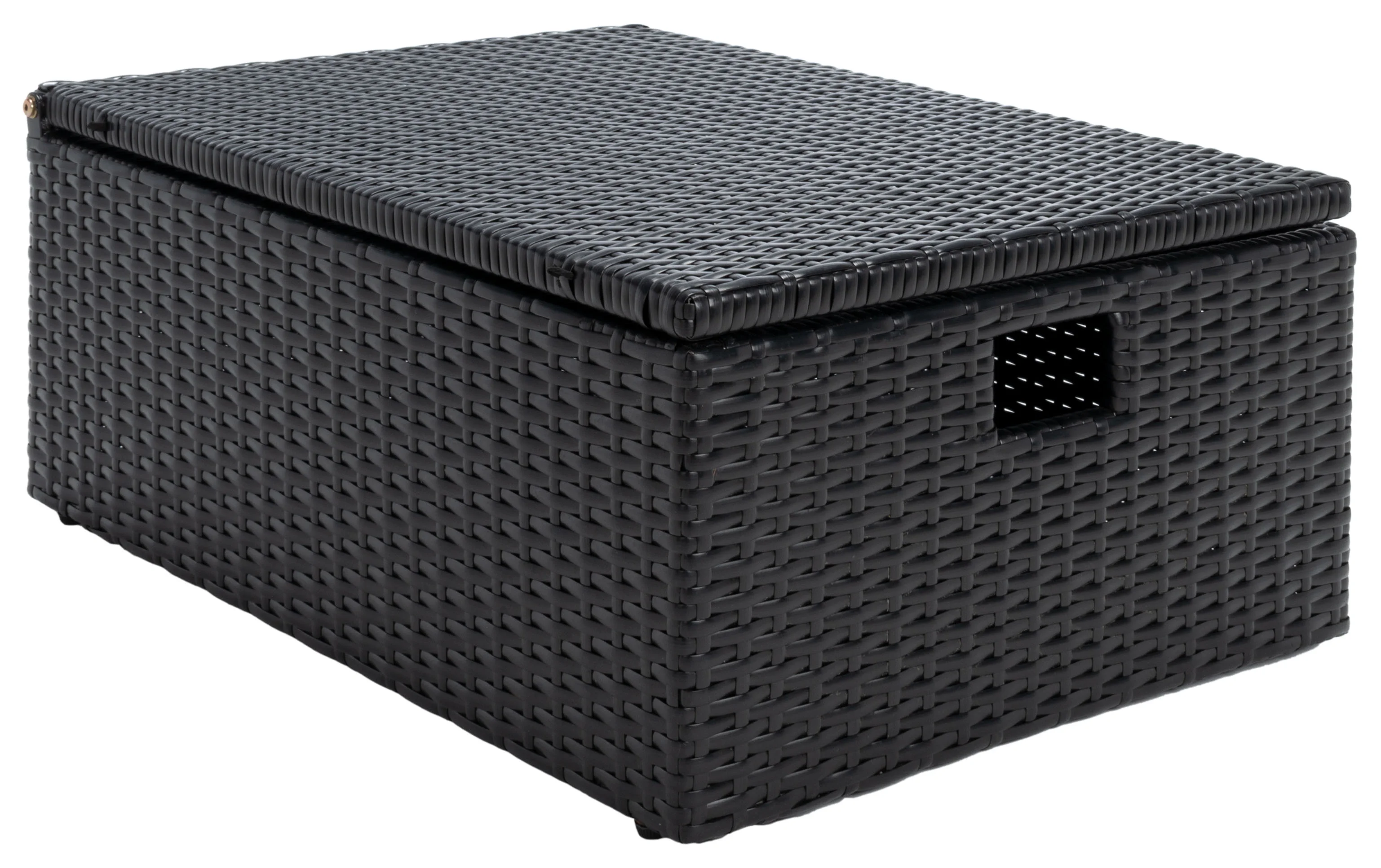 SAFAVIEH Pramla Outdoor Patio 4 Piece Sette With Ottoman, Black/Light Grey