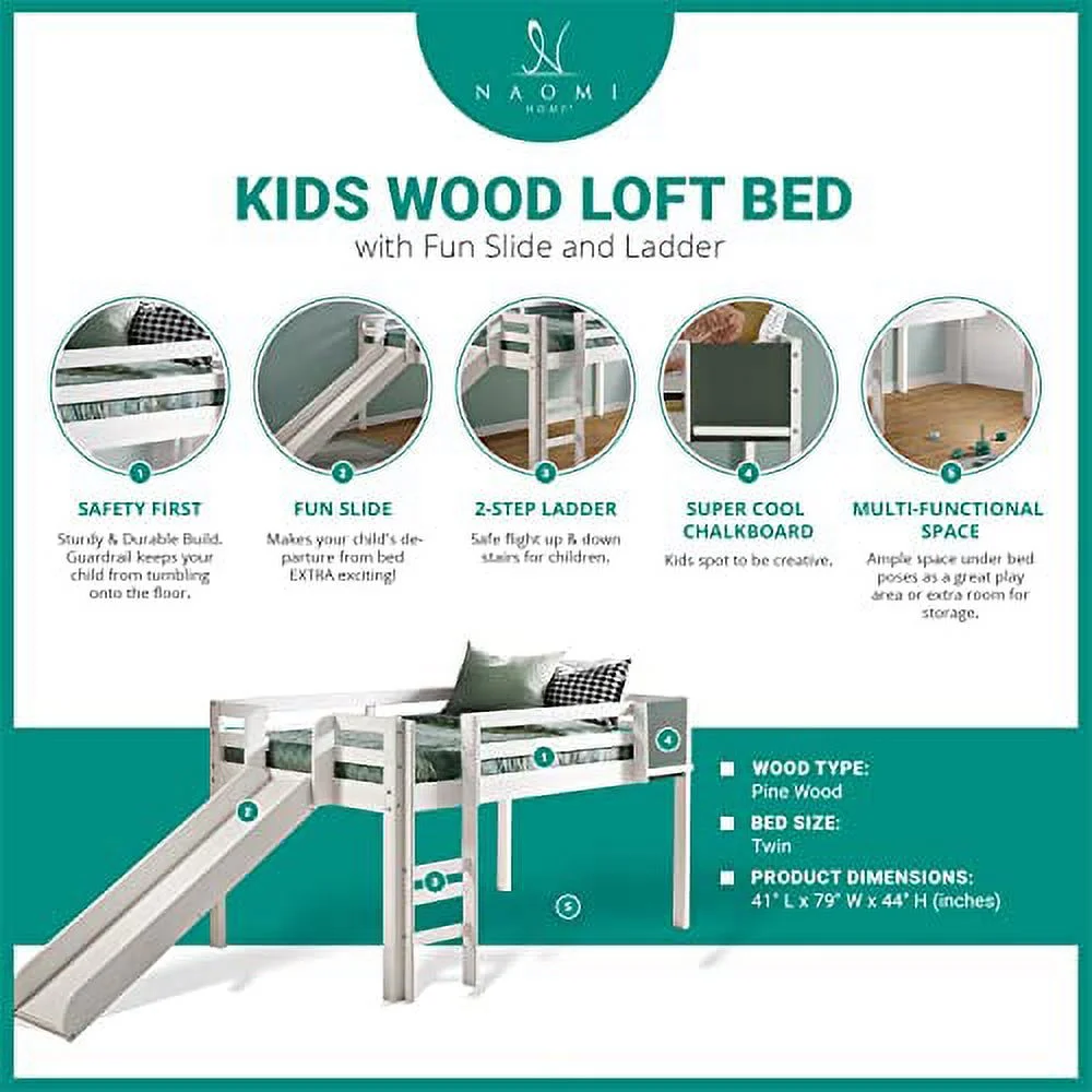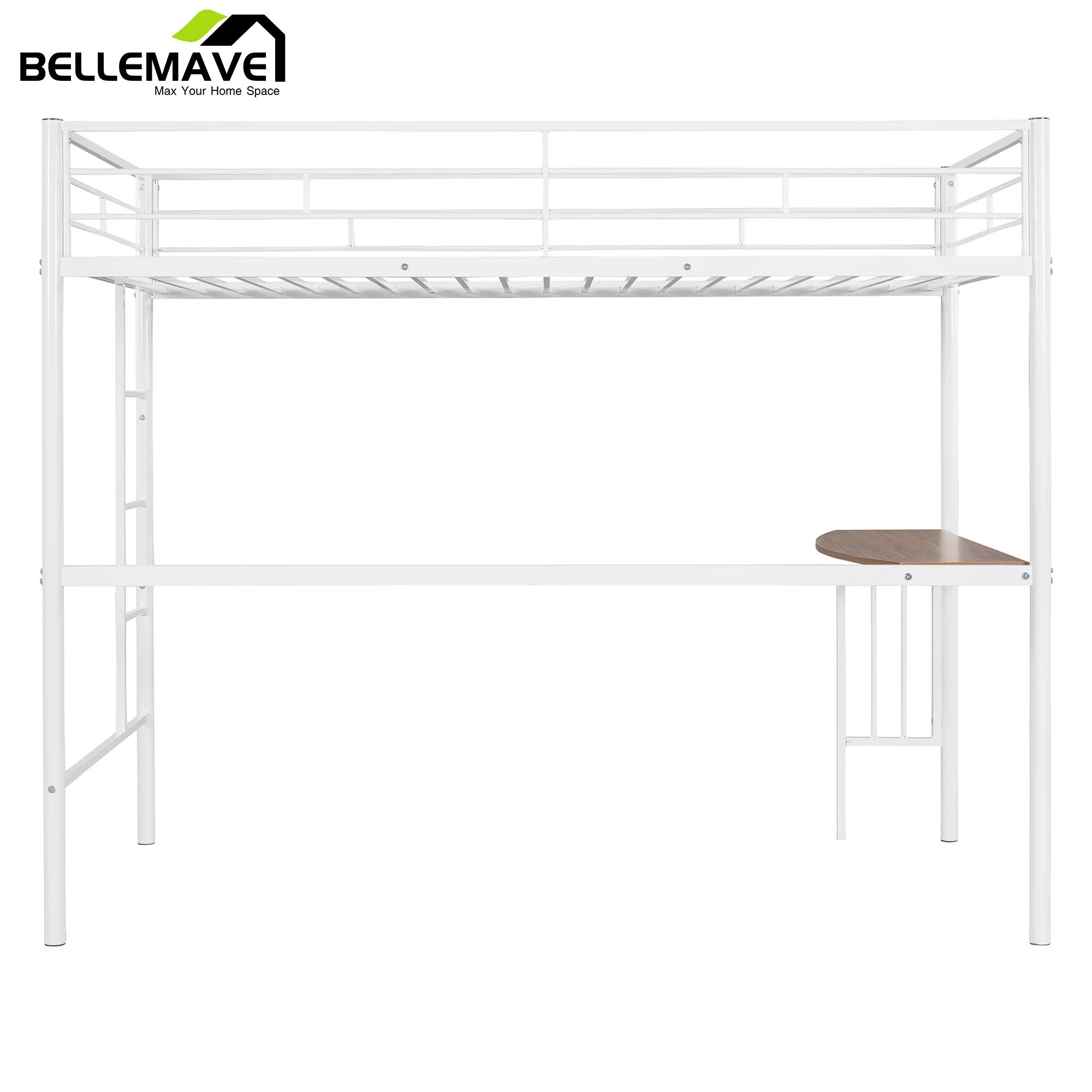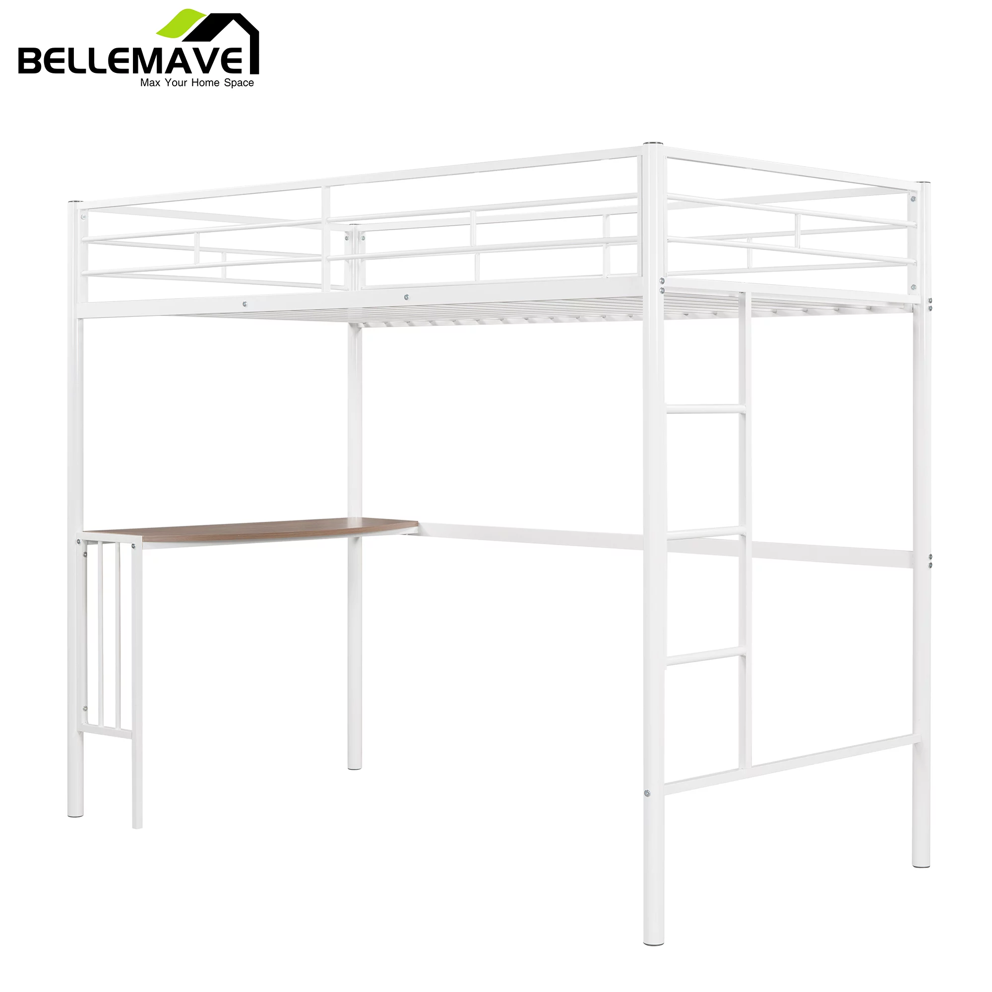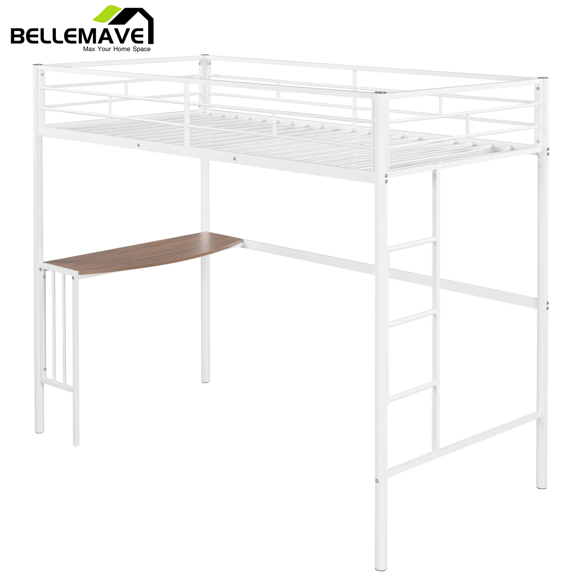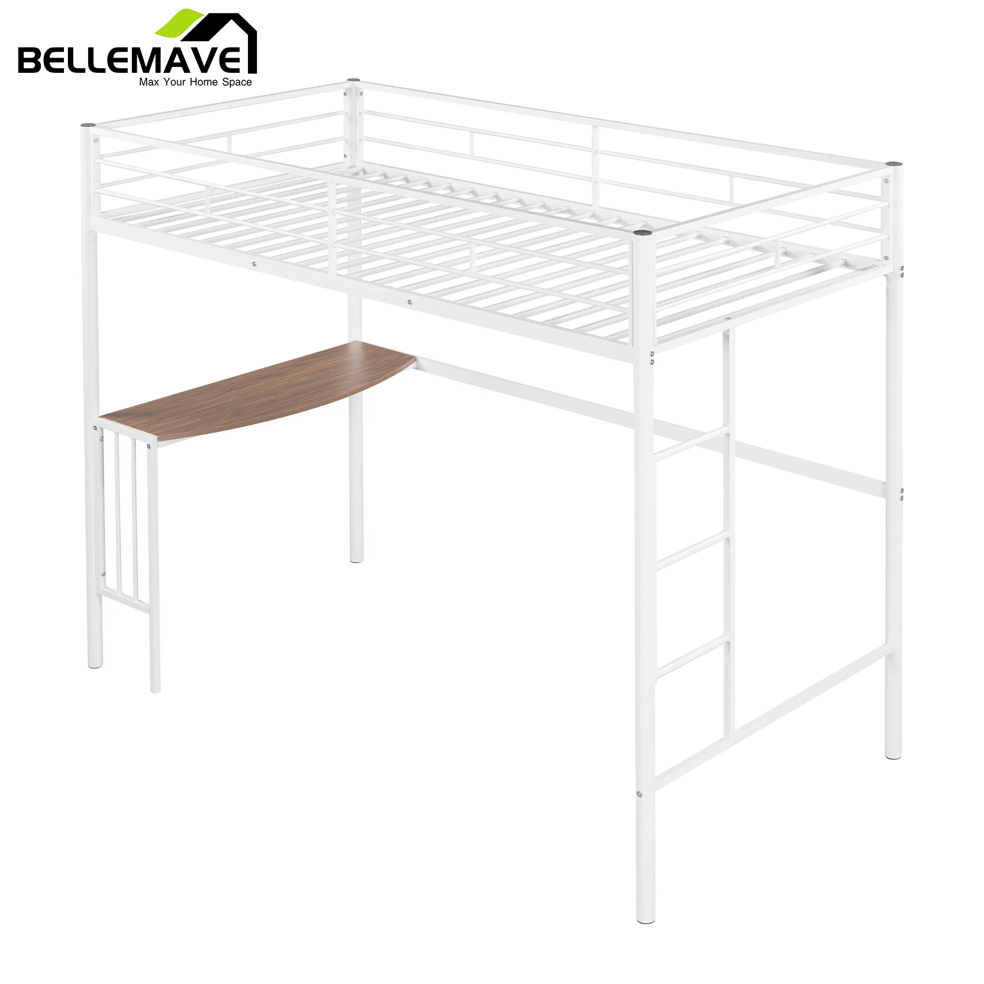 Gewnee Twin Size Metal Loft Bed with L-Shape Desk and Shelves for Kids,Teens,White