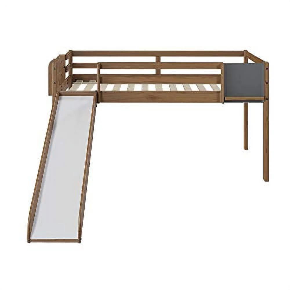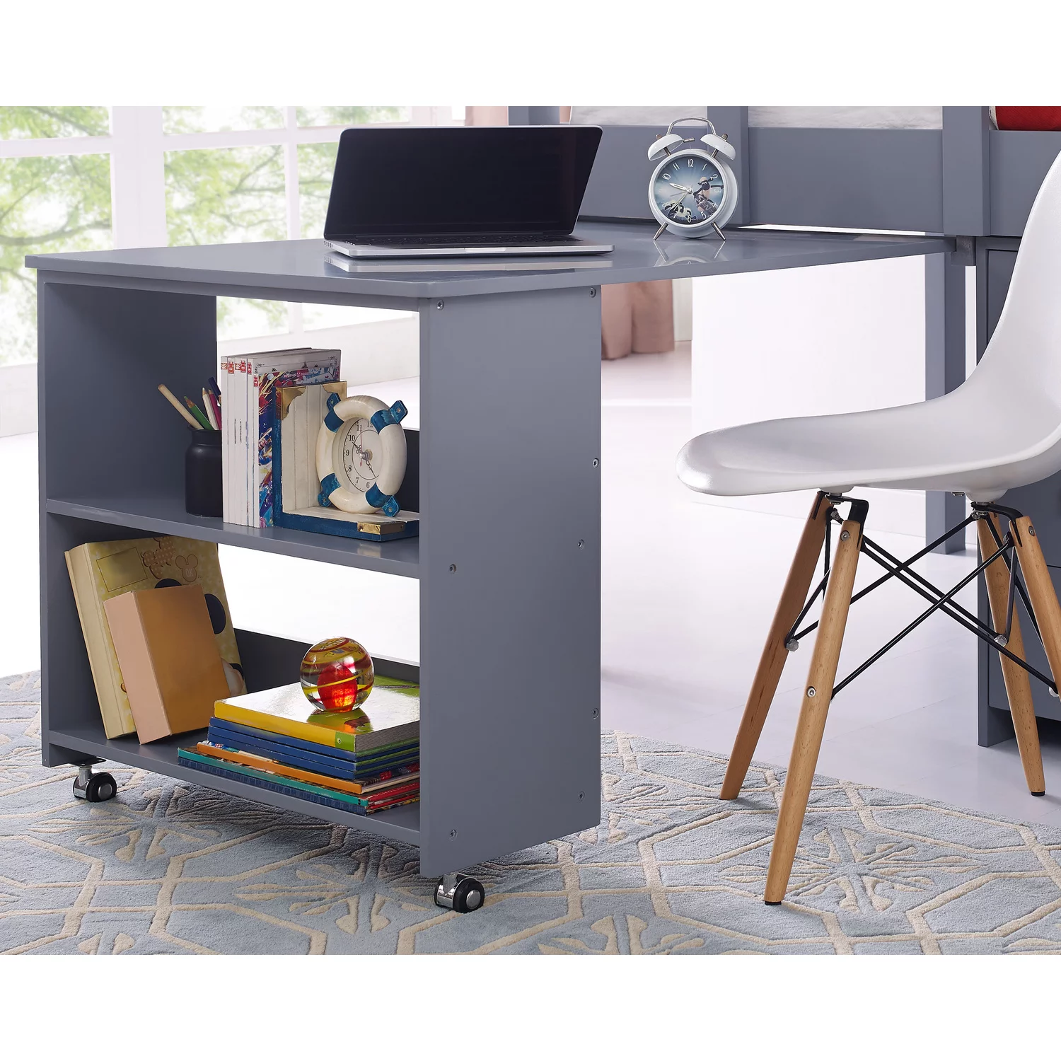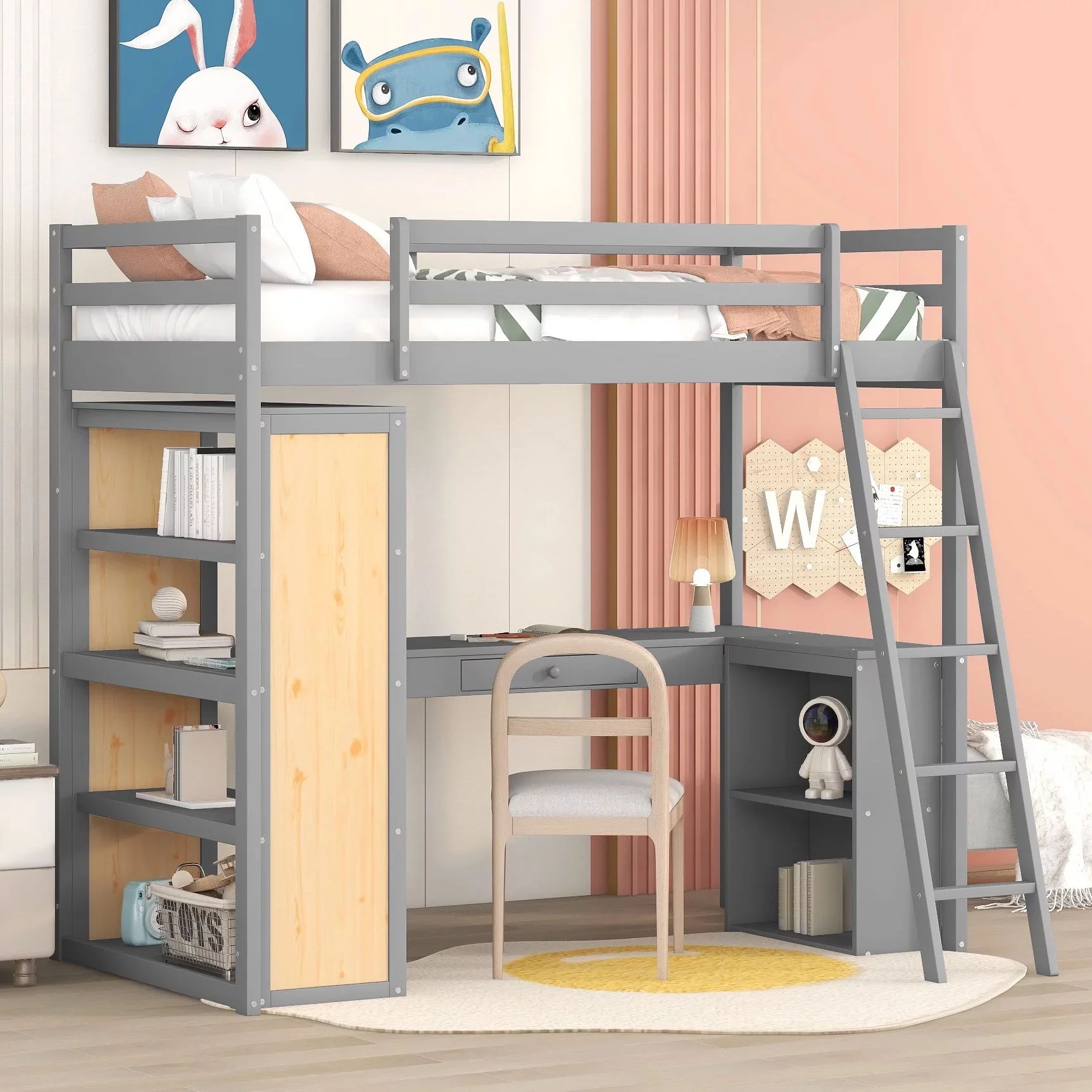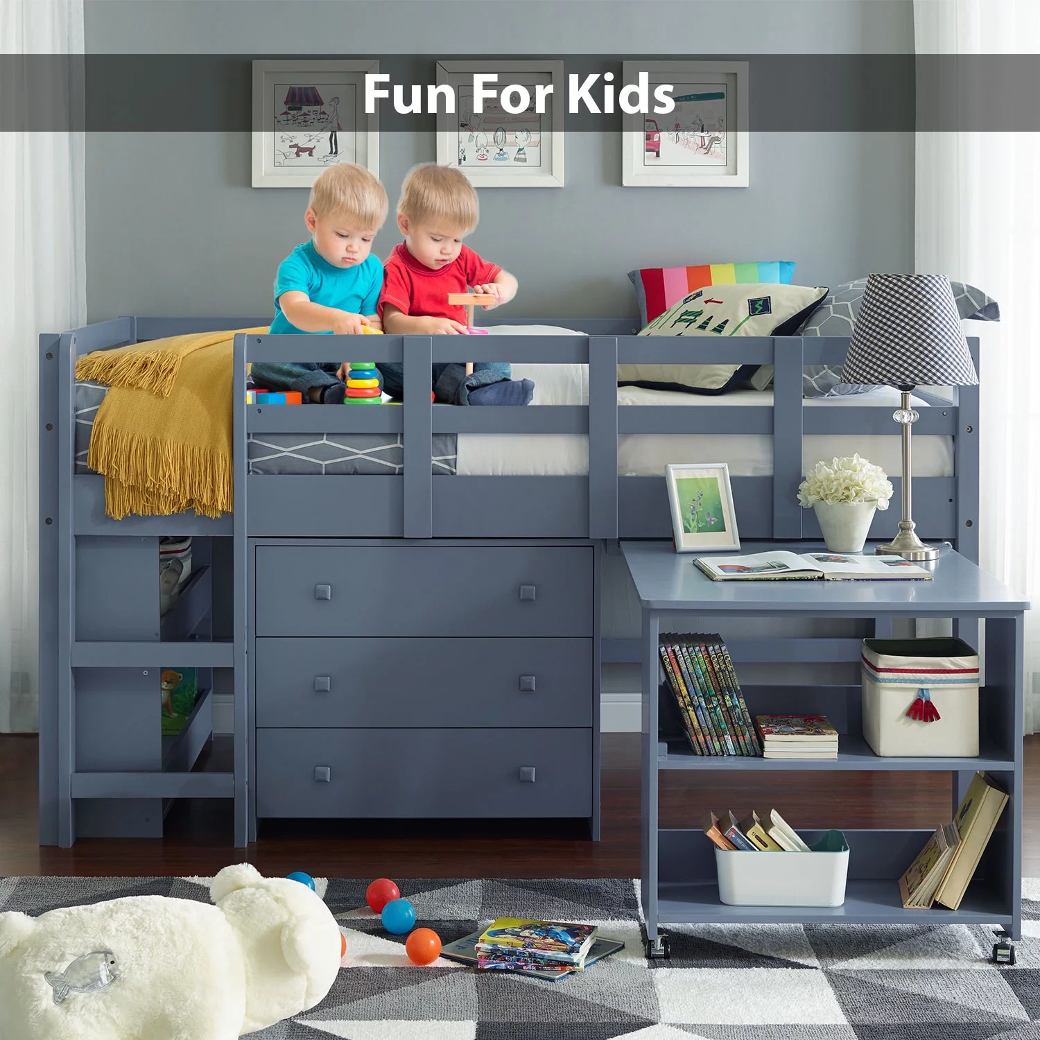 Livspace Twin Size Loft Bed with Desk and Shelves, Two Built-in Drawers, Gray