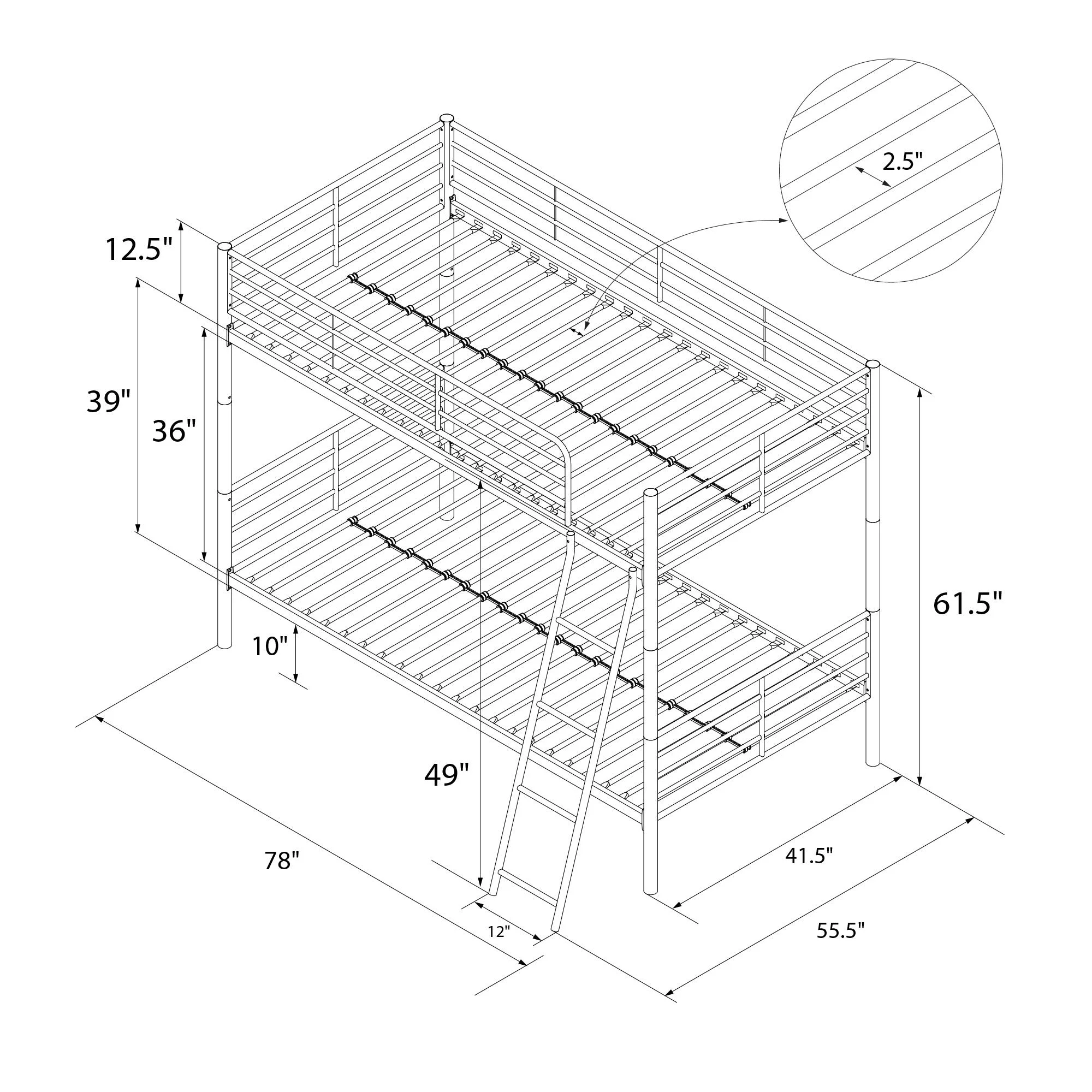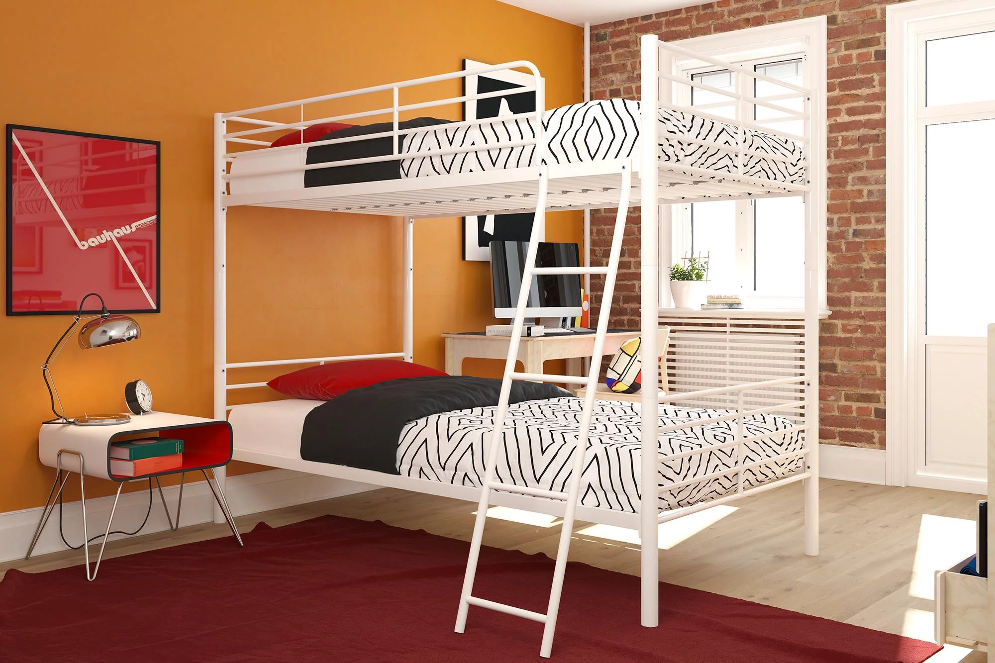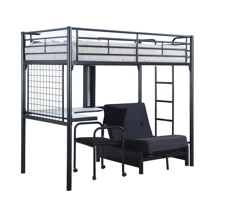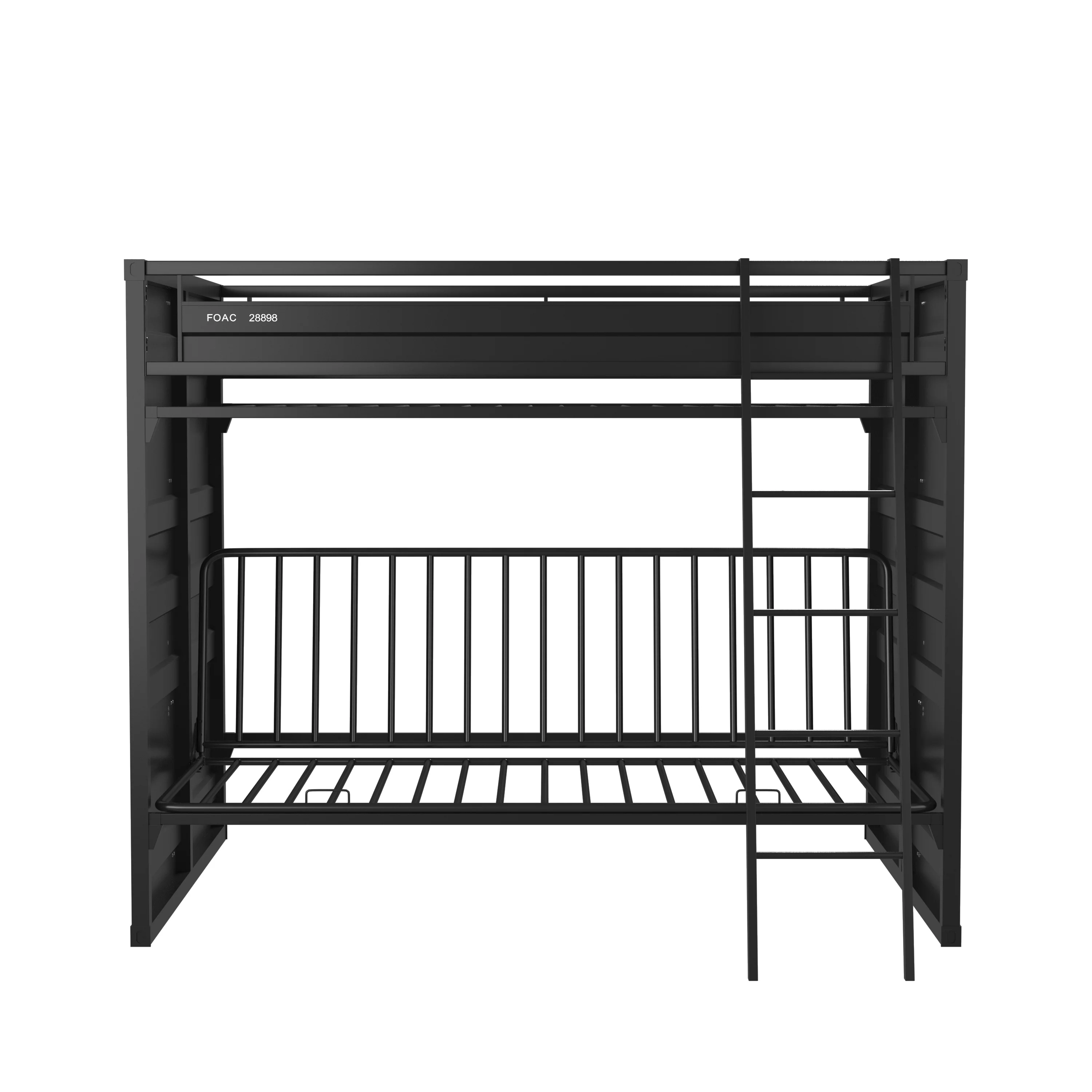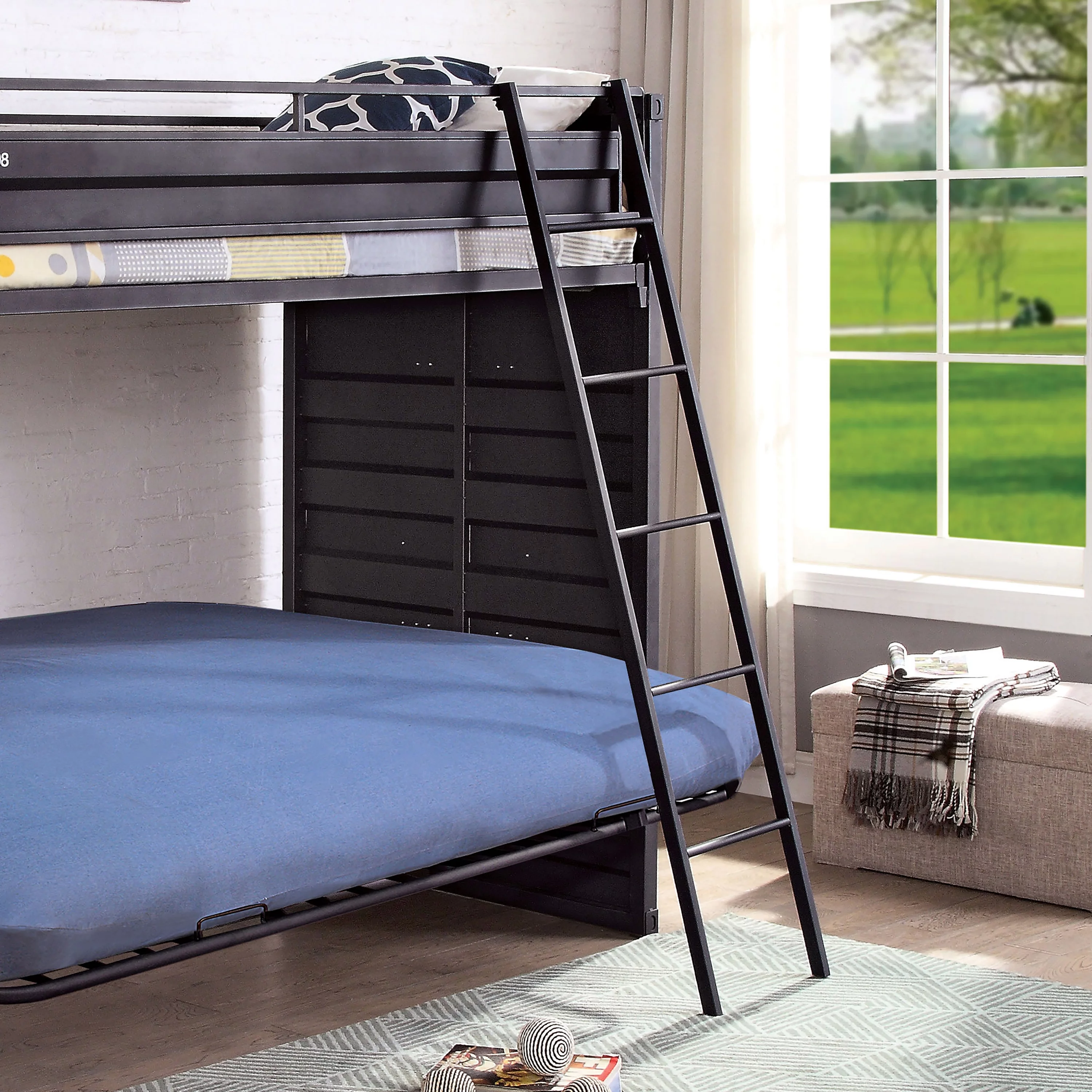 Furniture of America Malik Metal Bunk Bed with Futon Base, Twin, Black