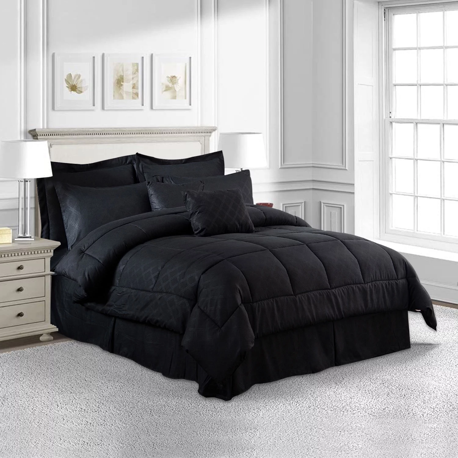 NC 10 Piece Bed in a Bag Queen Size Comforter Set Bedding Set, Plaid Pattern, Black