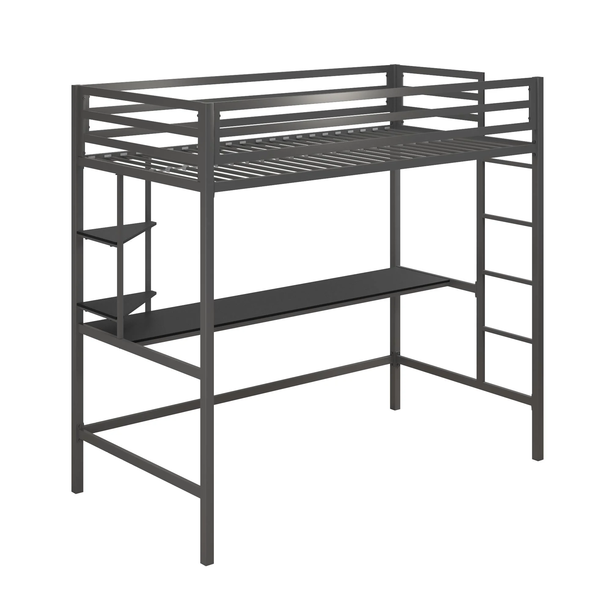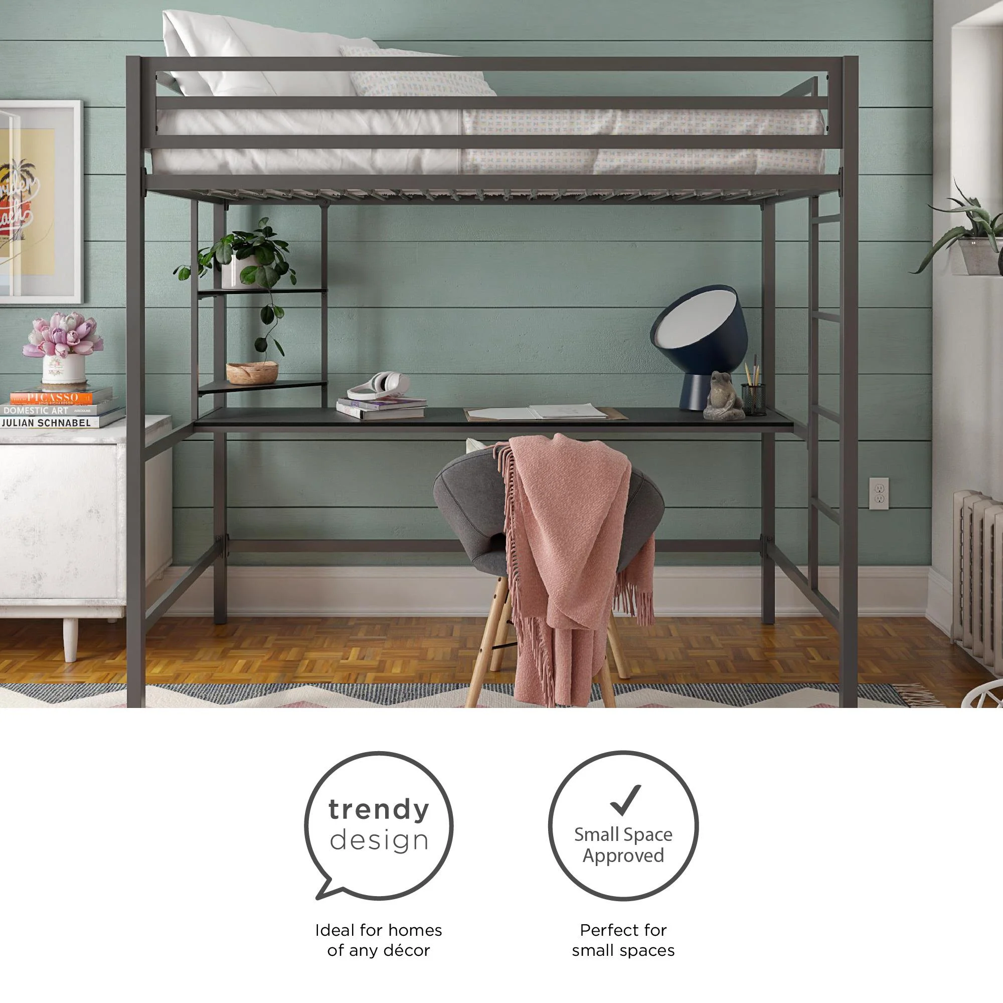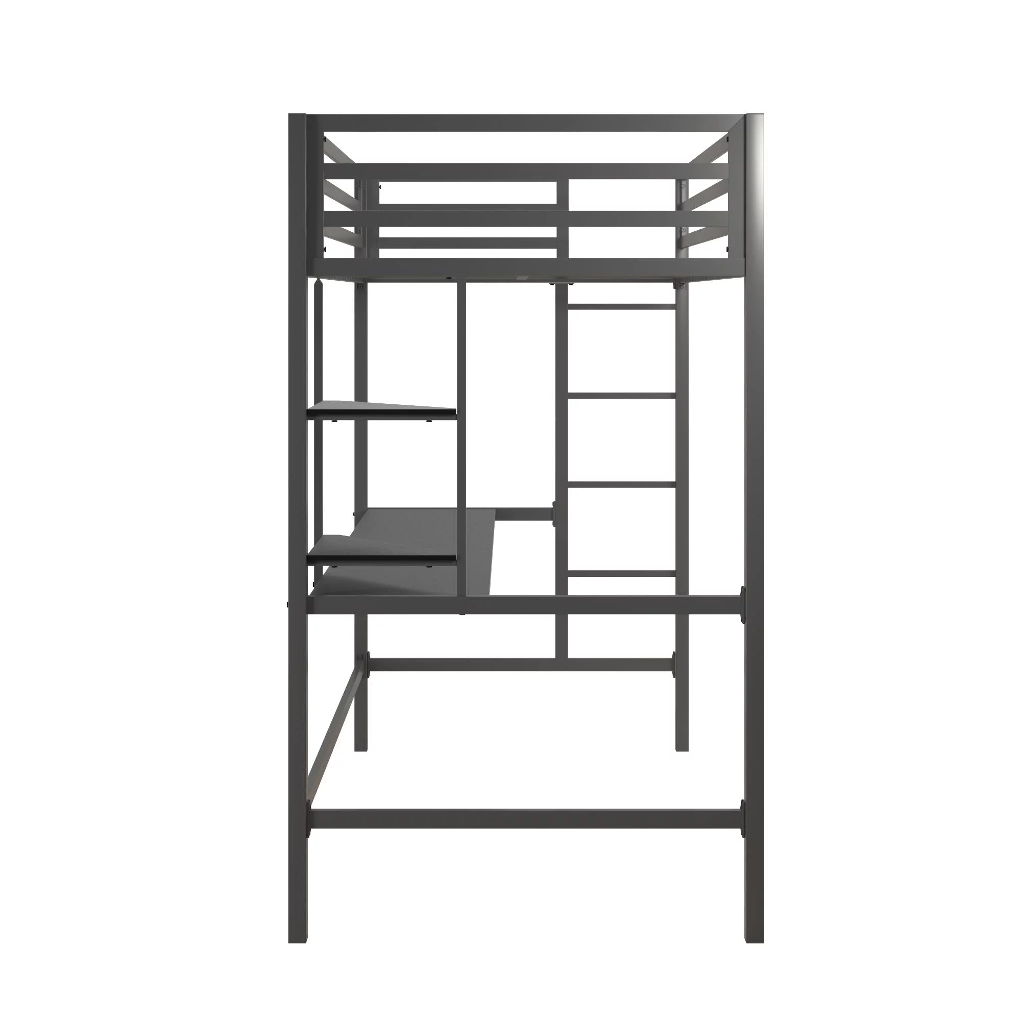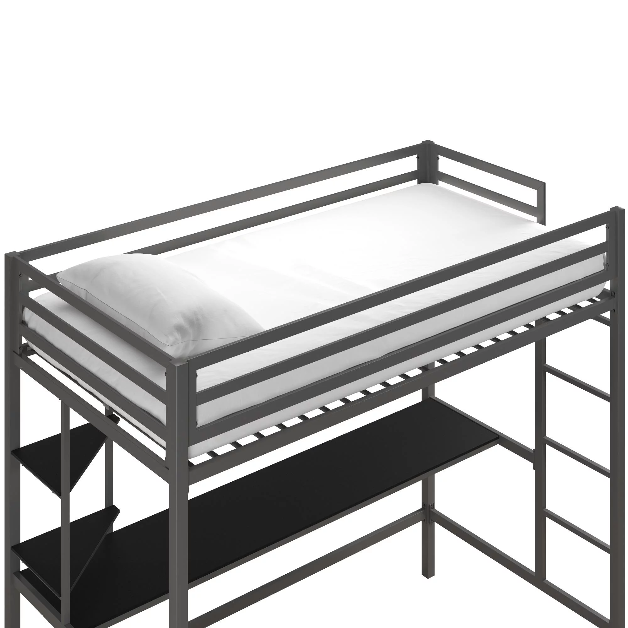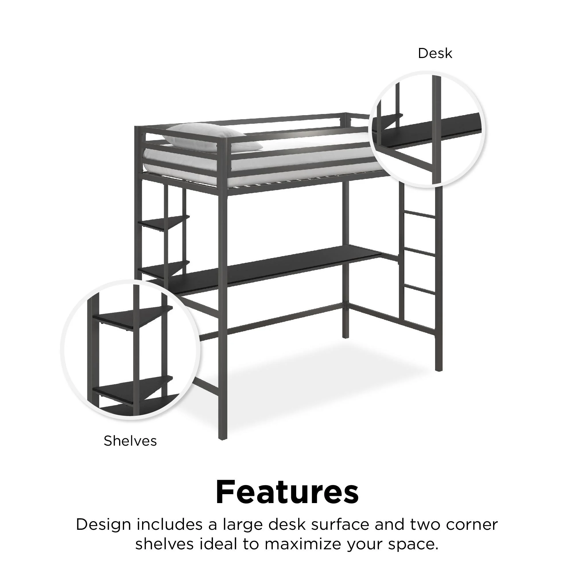Novogratz Maxwell Metal Twin Loft Bed with Desk & Shelves, Gray/ Black