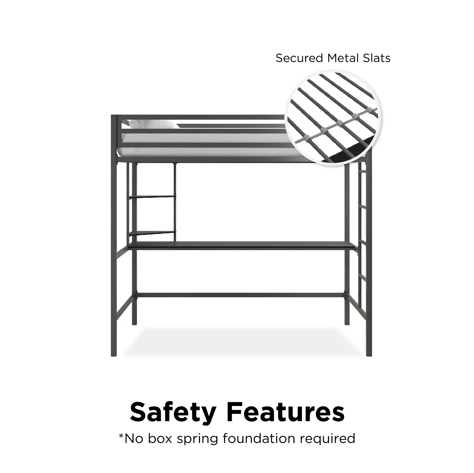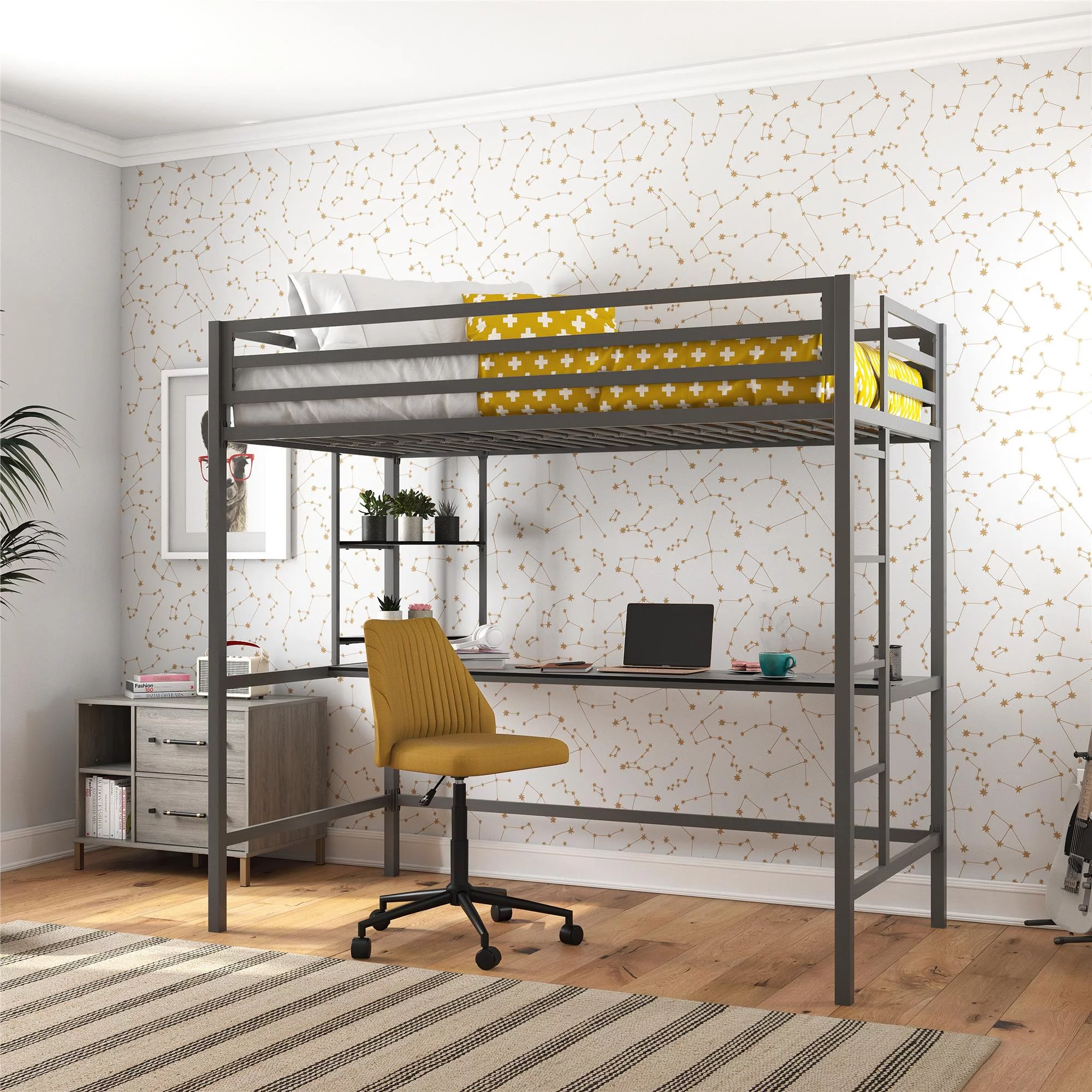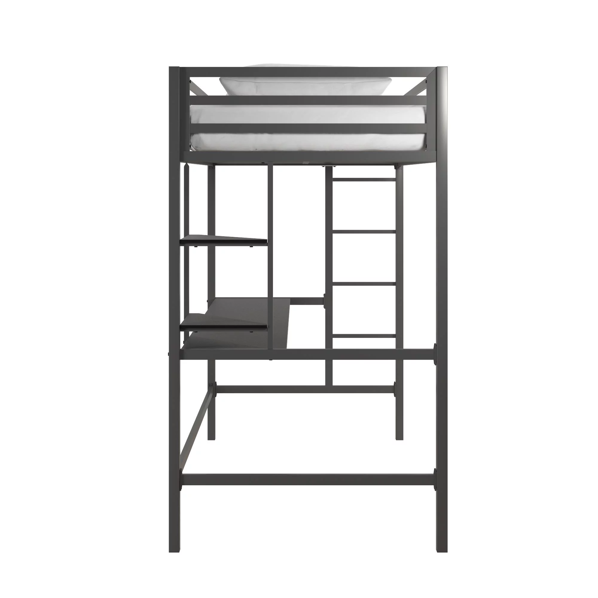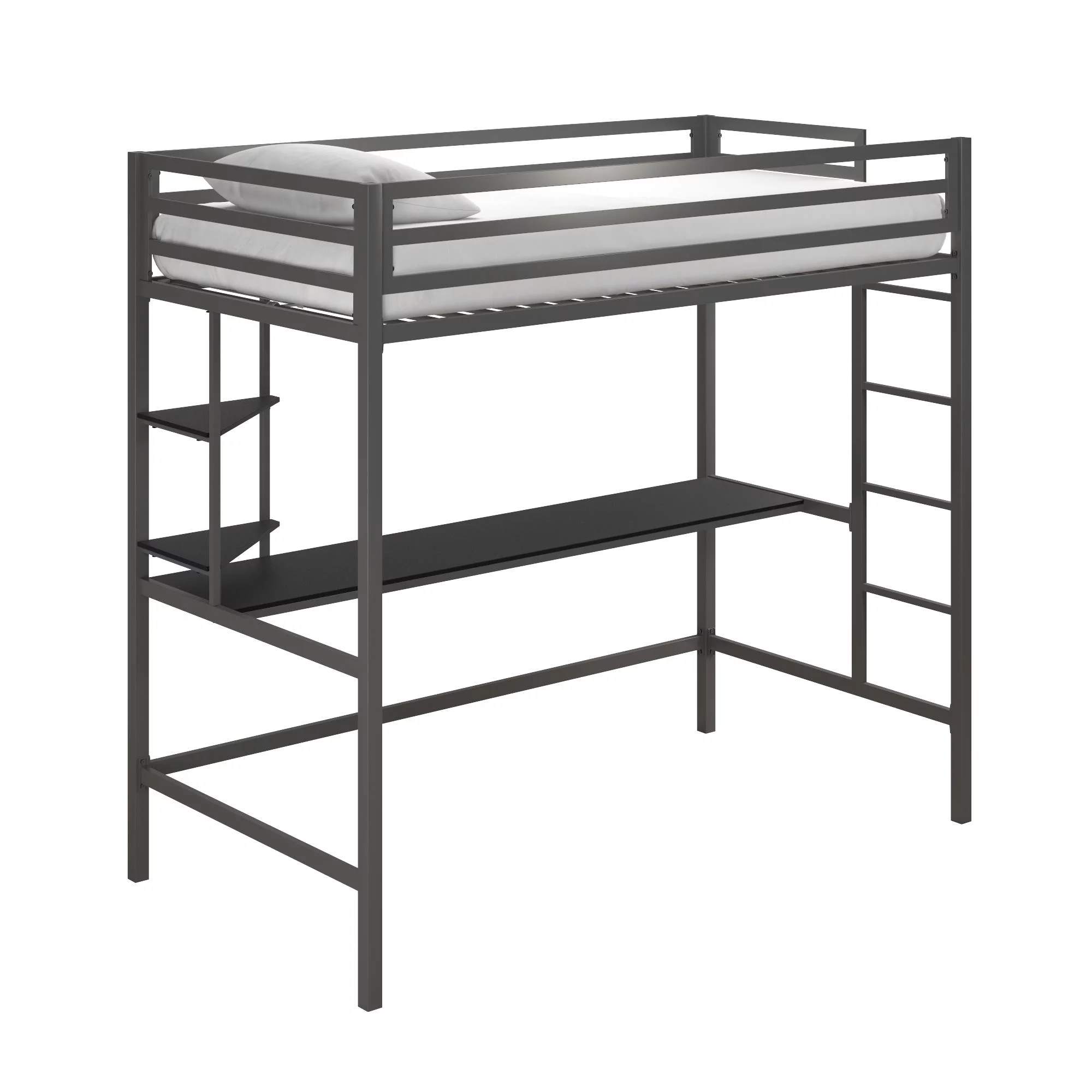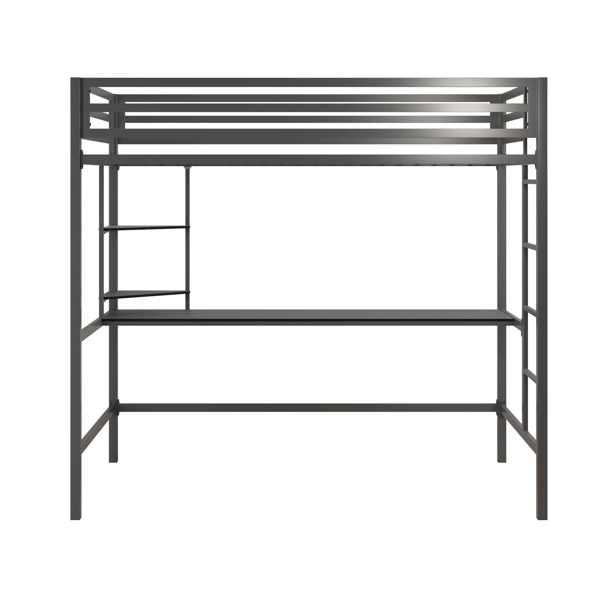 Novogratz Maxwell Metal Twin Loft Bed with Desk & Shelves, Gray/ Black