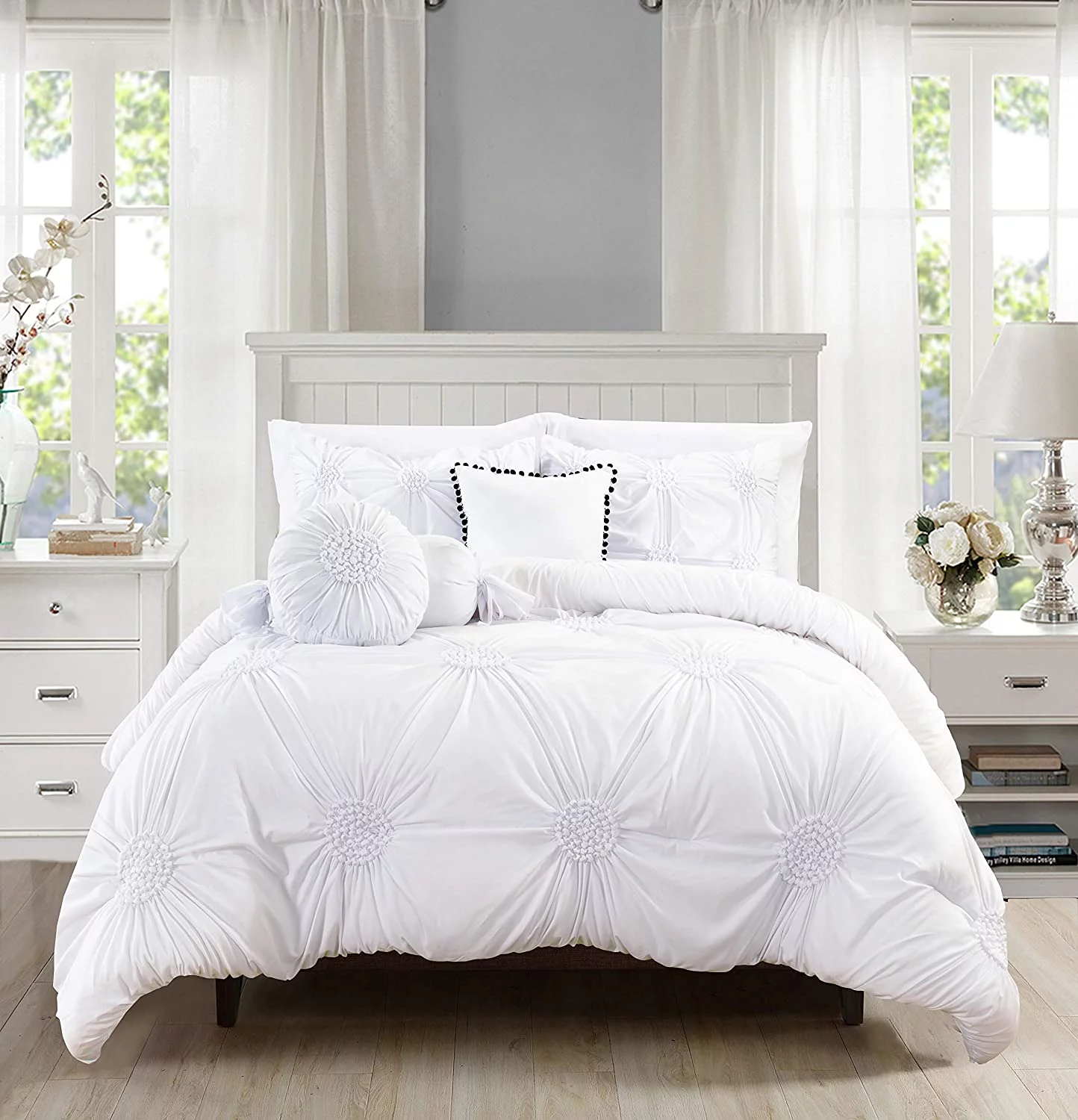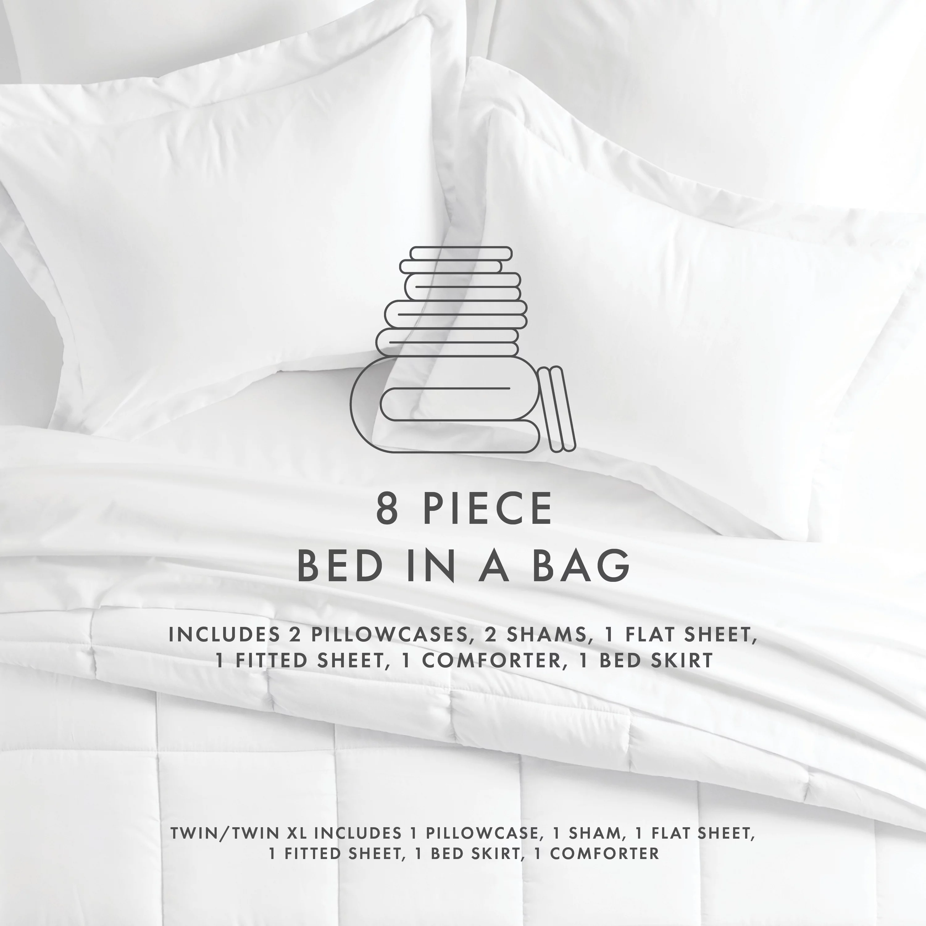 Silky Soft Pintuck Bed-in-a-Bag 8-Piece Comforter Set --HypoAllergenic - Full/Queen, White