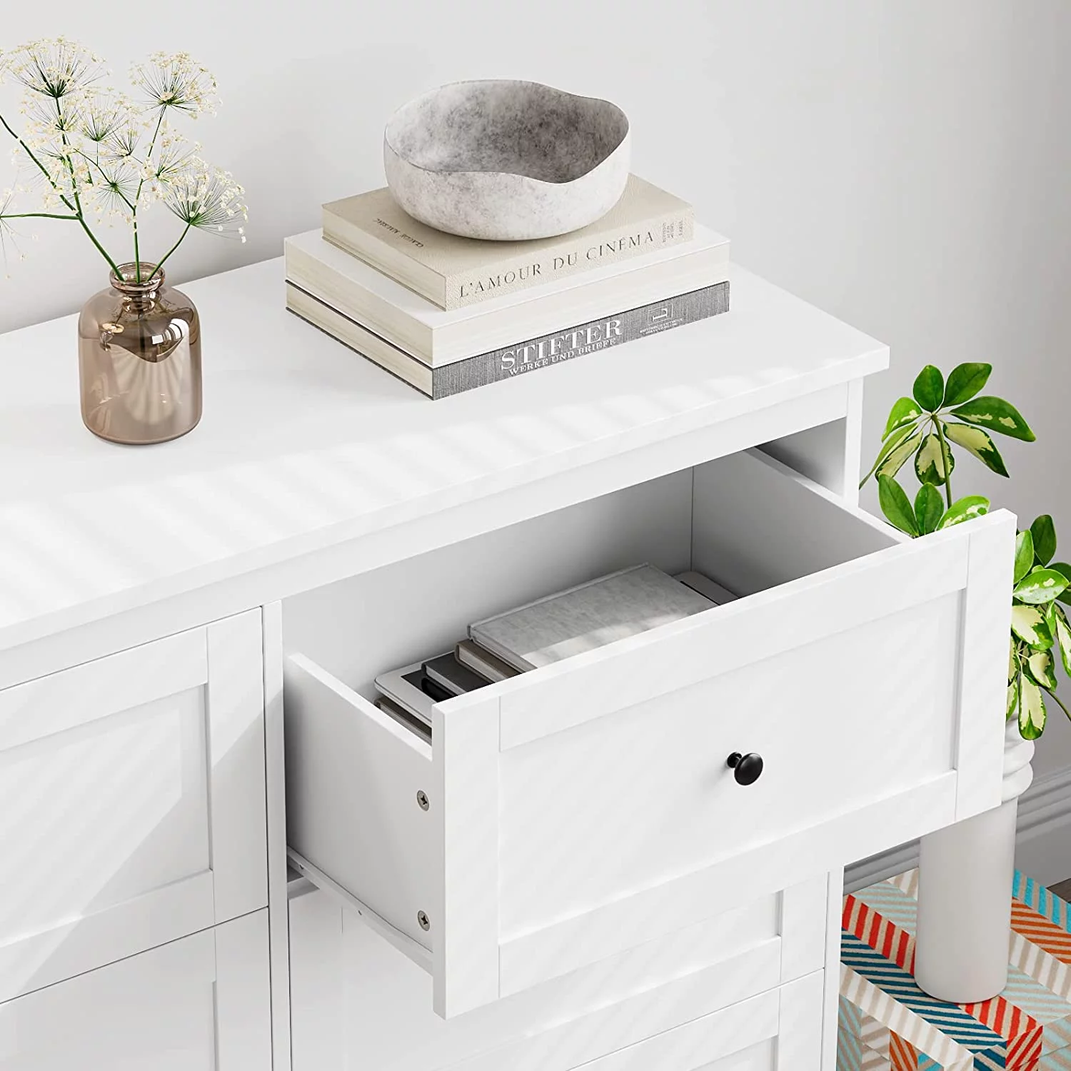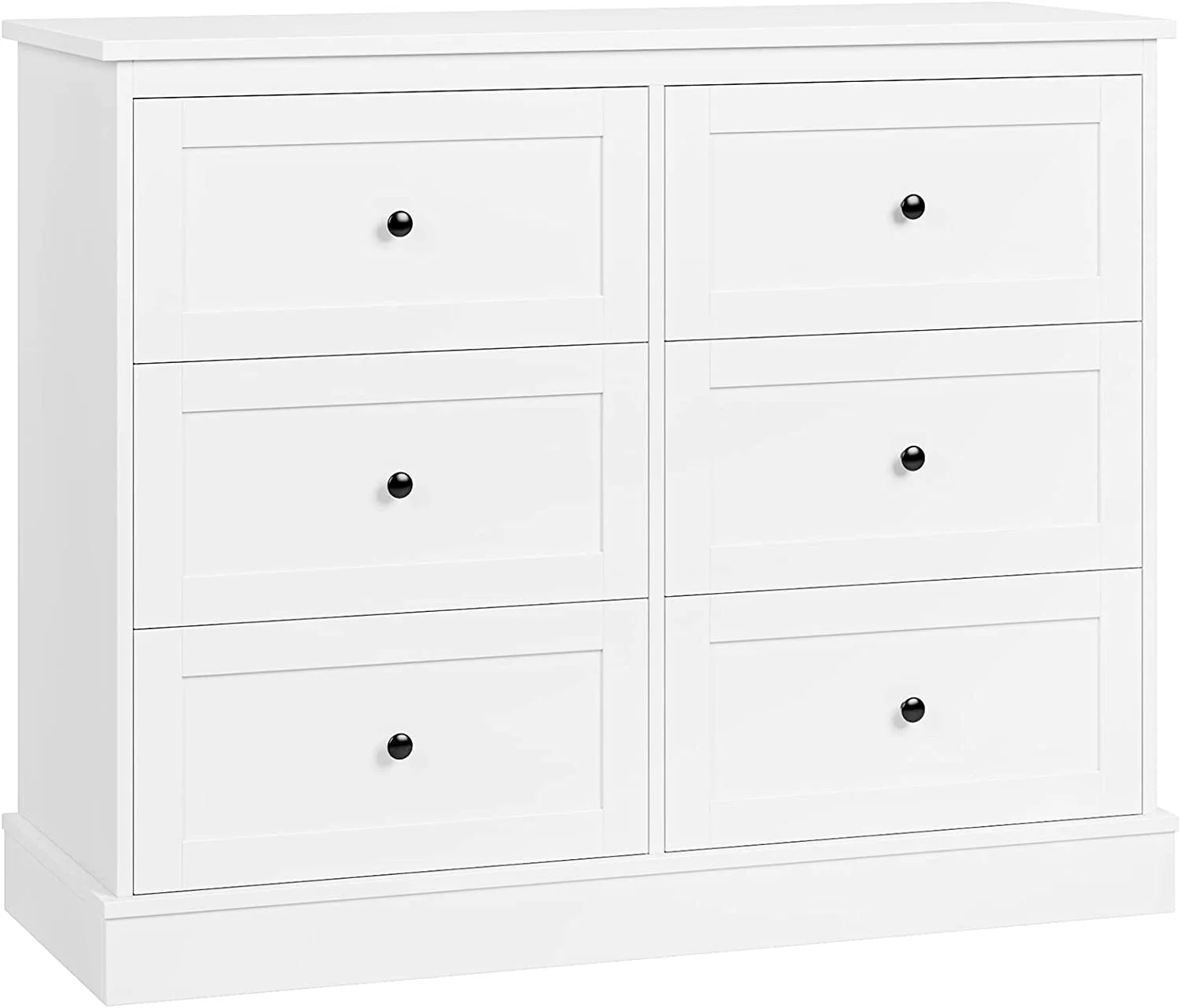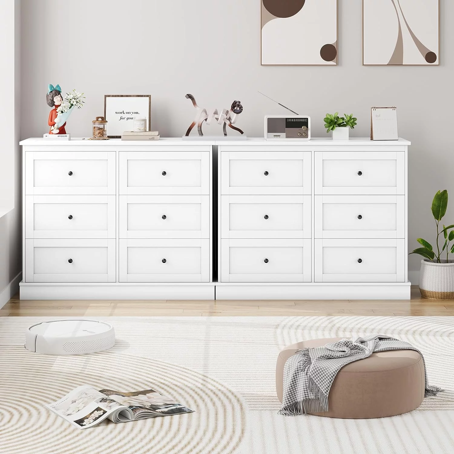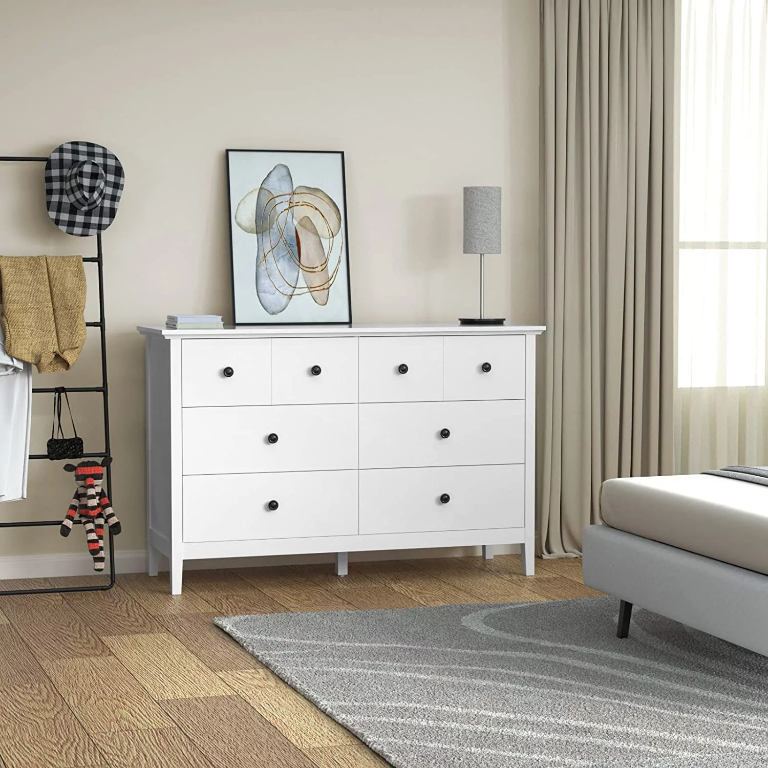 for Bedroom Modern White Dresser with Deep Drawers 6 Drawer Double Dresser with Black Knobs and Solid Wood Legs