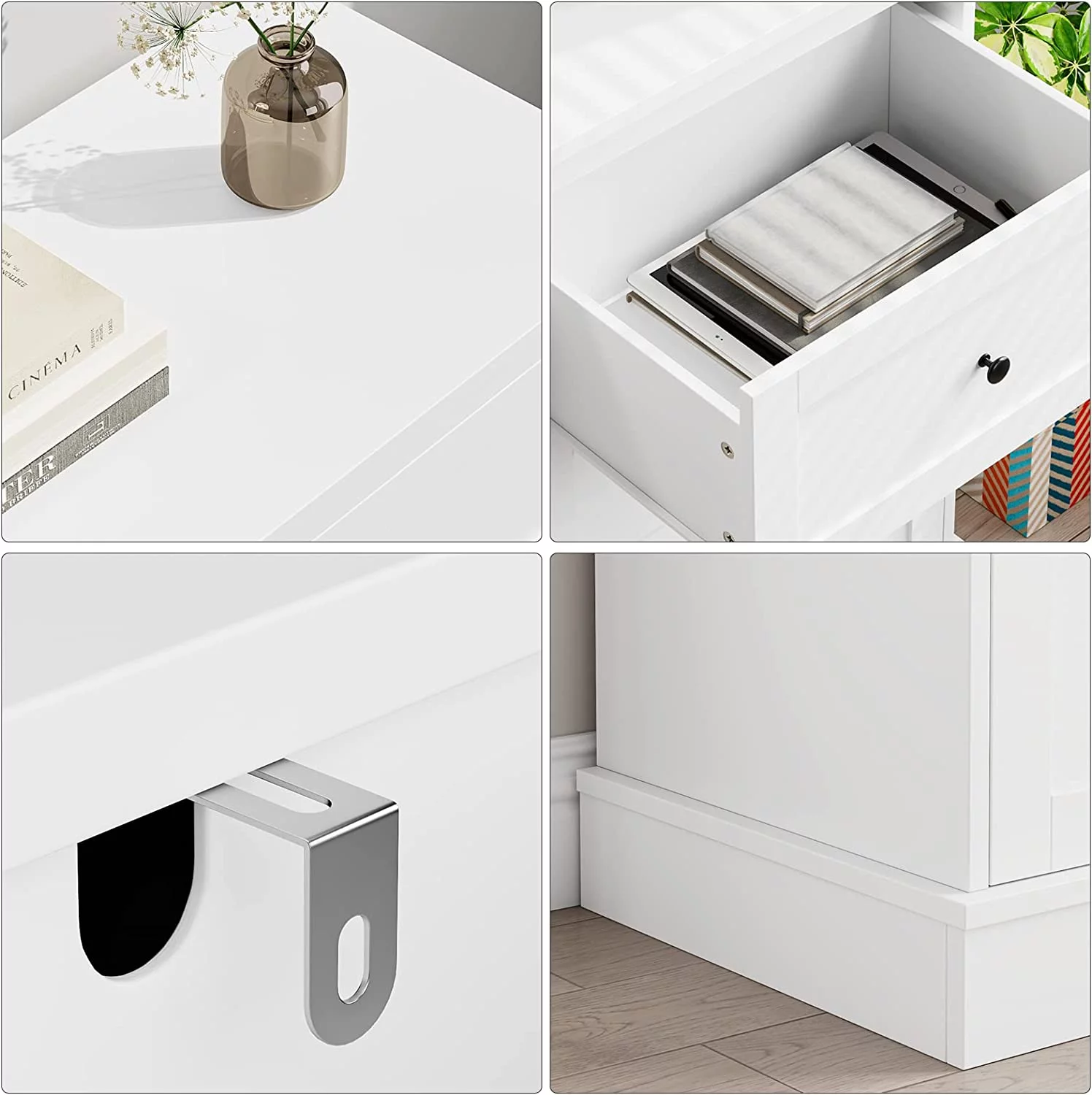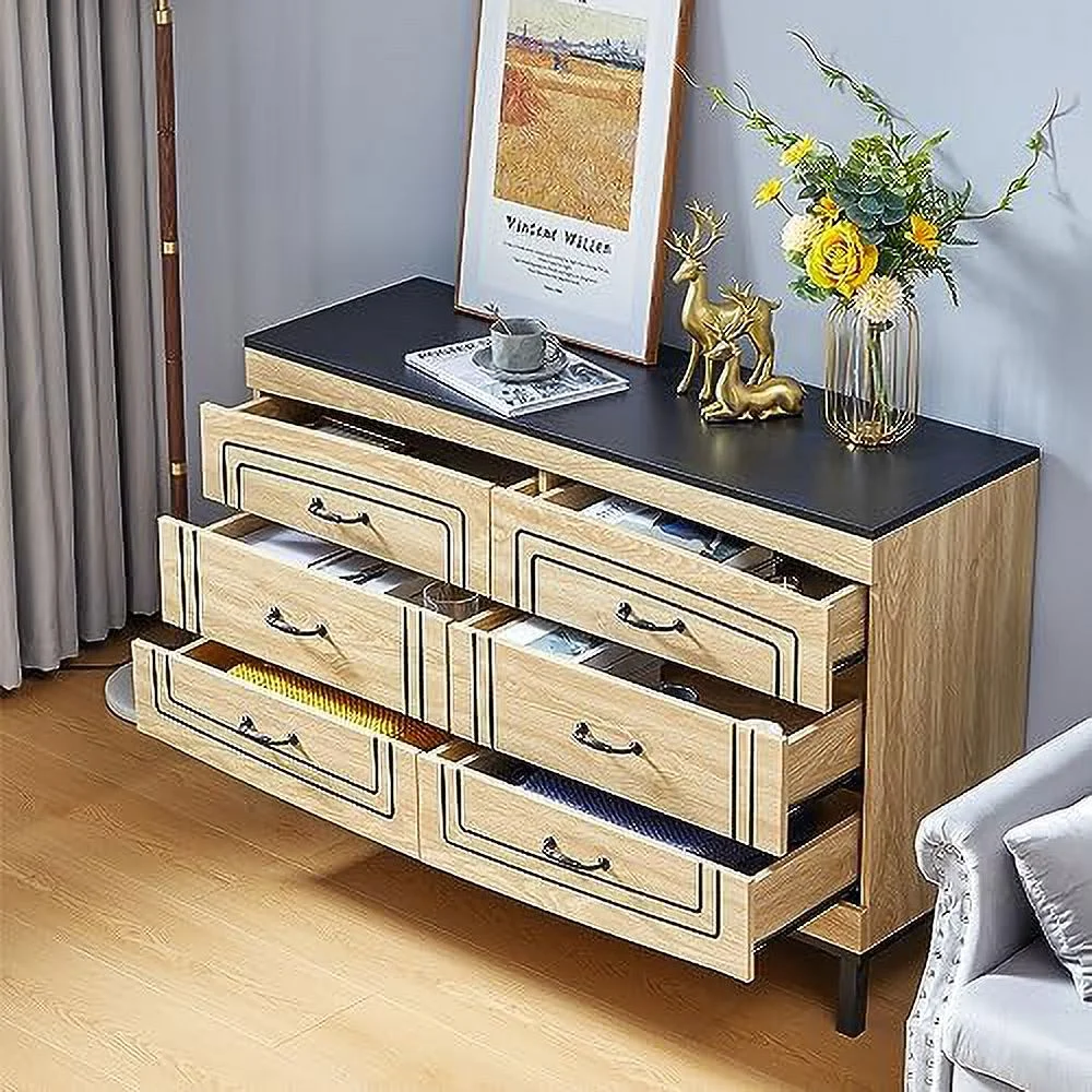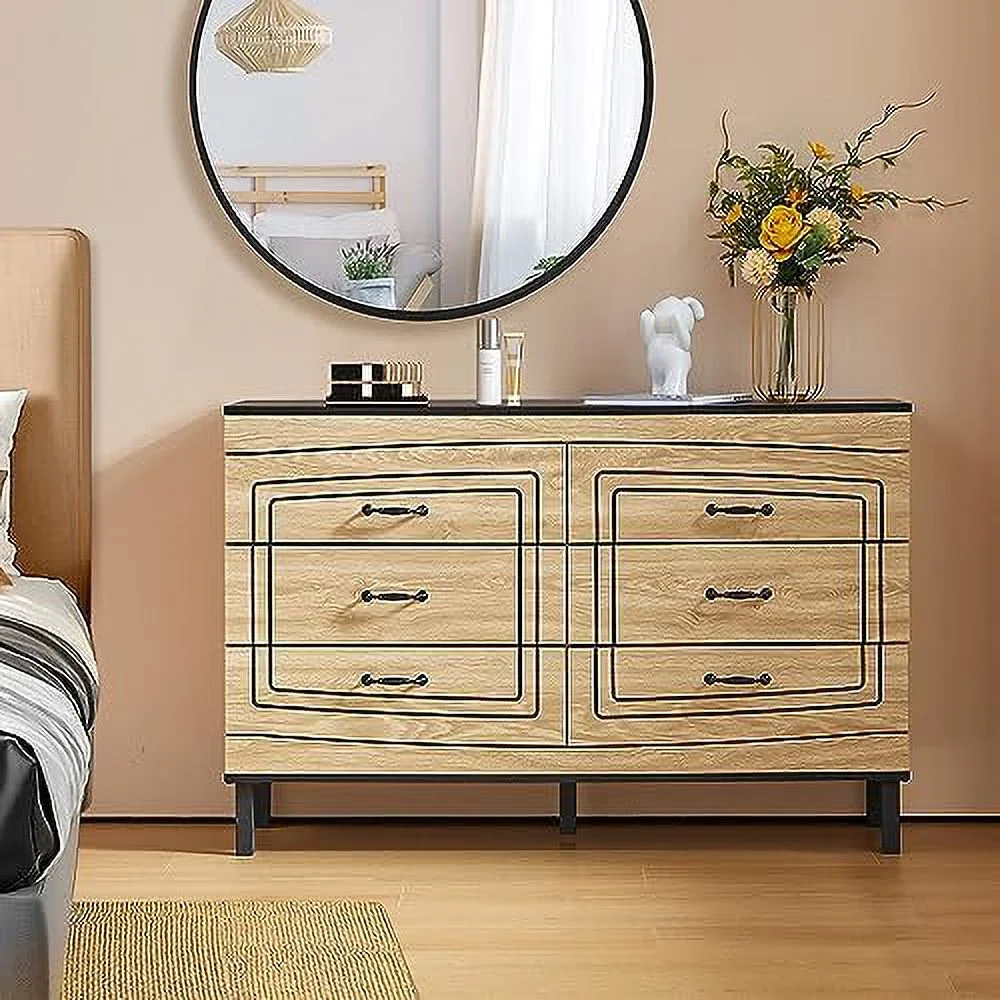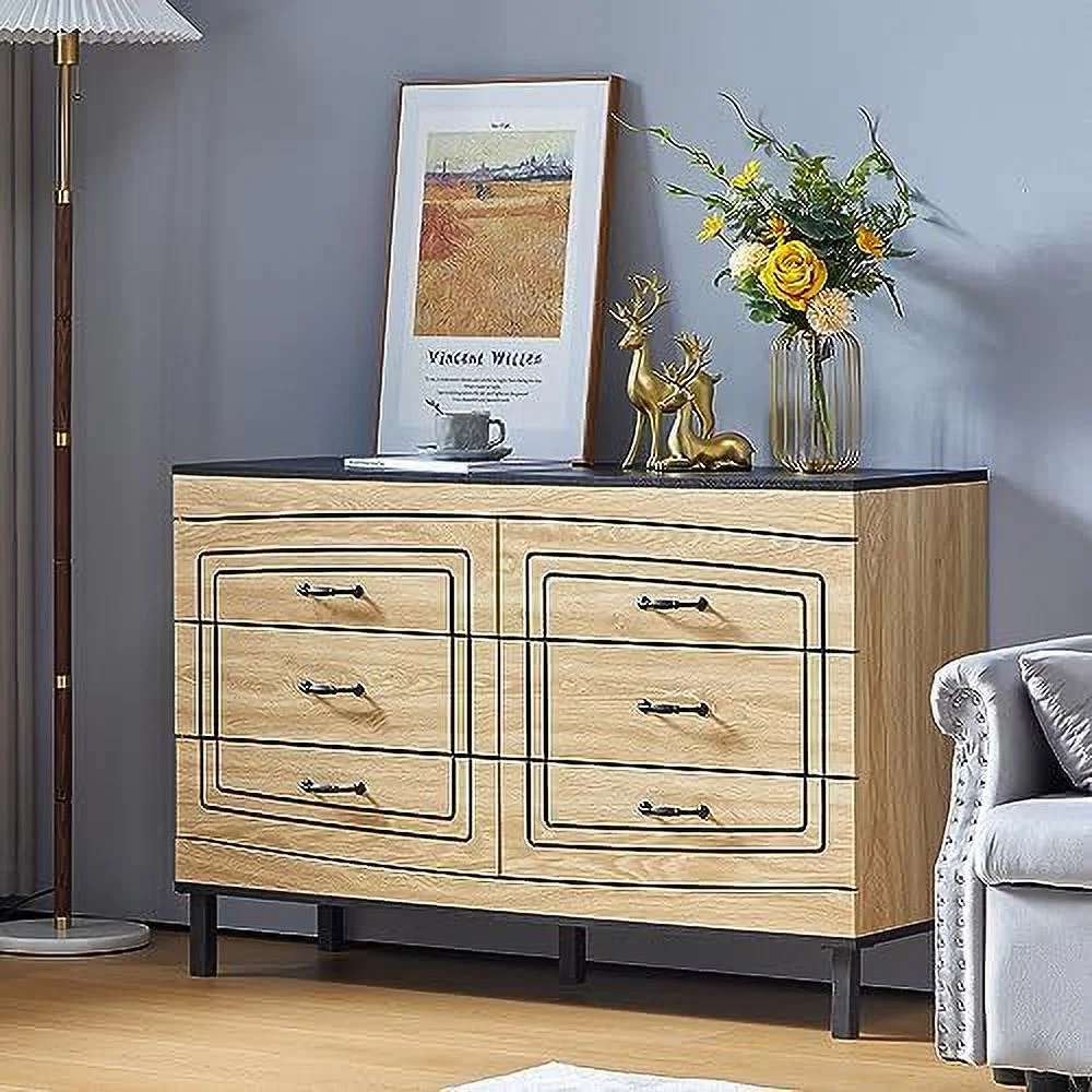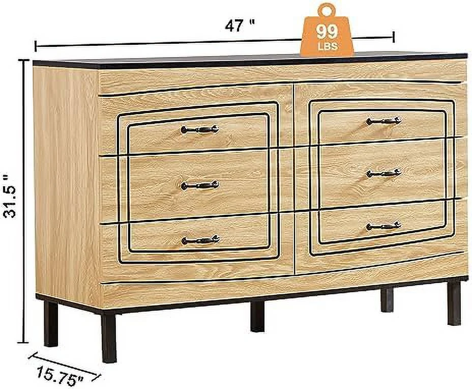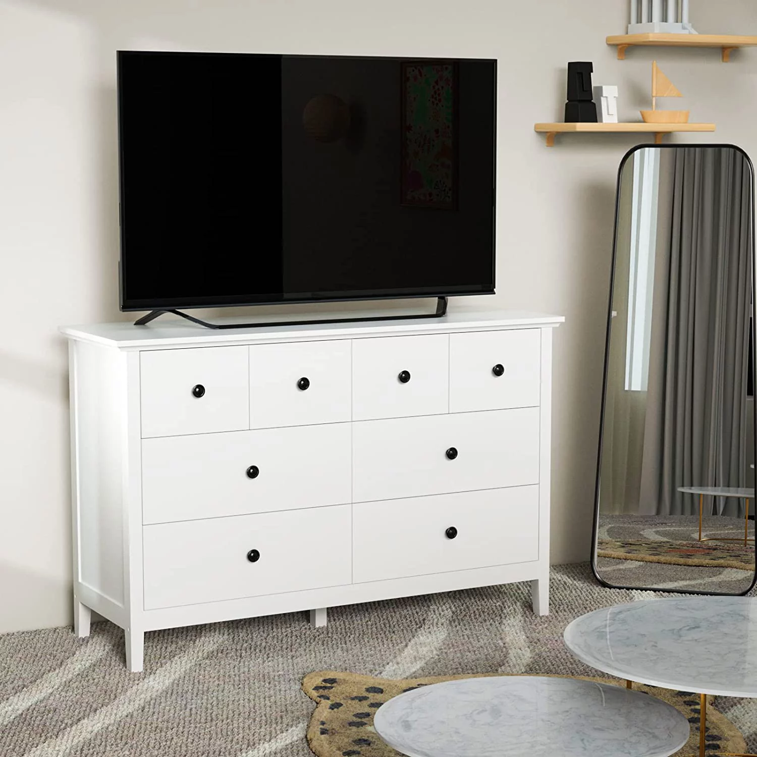 for Bedroom Modern White Dresser with Deep Drawers 6 Drawer Double Dresser with Black Knobs and Solid Wood Legs
