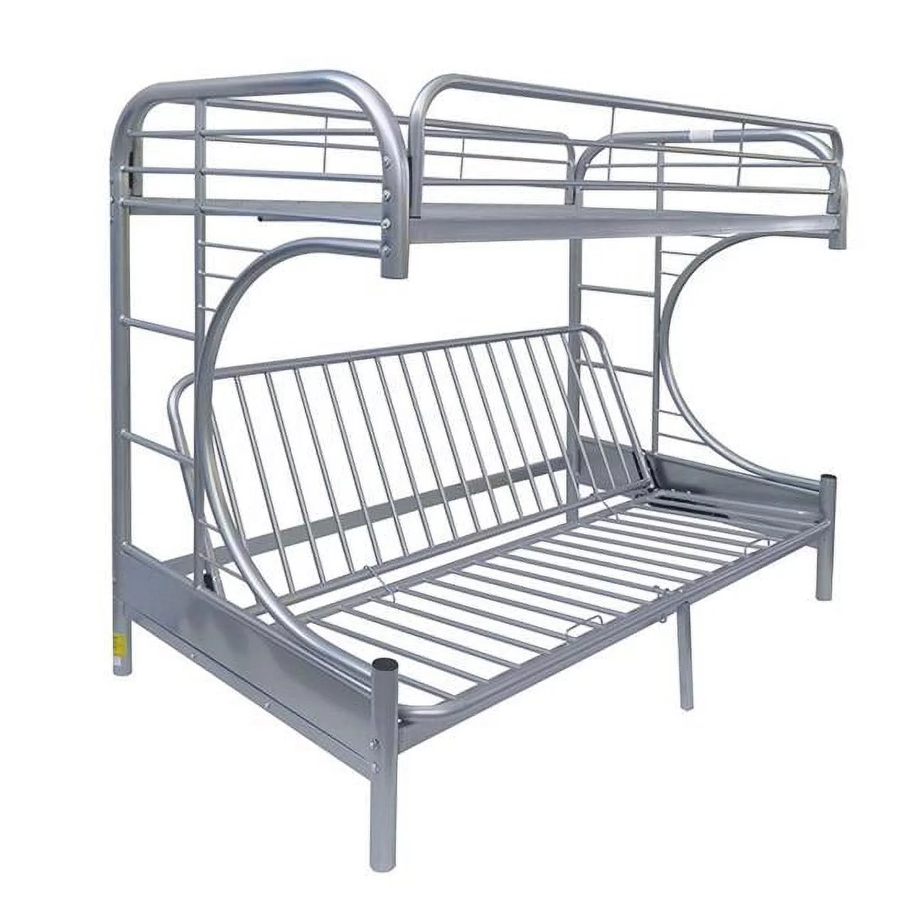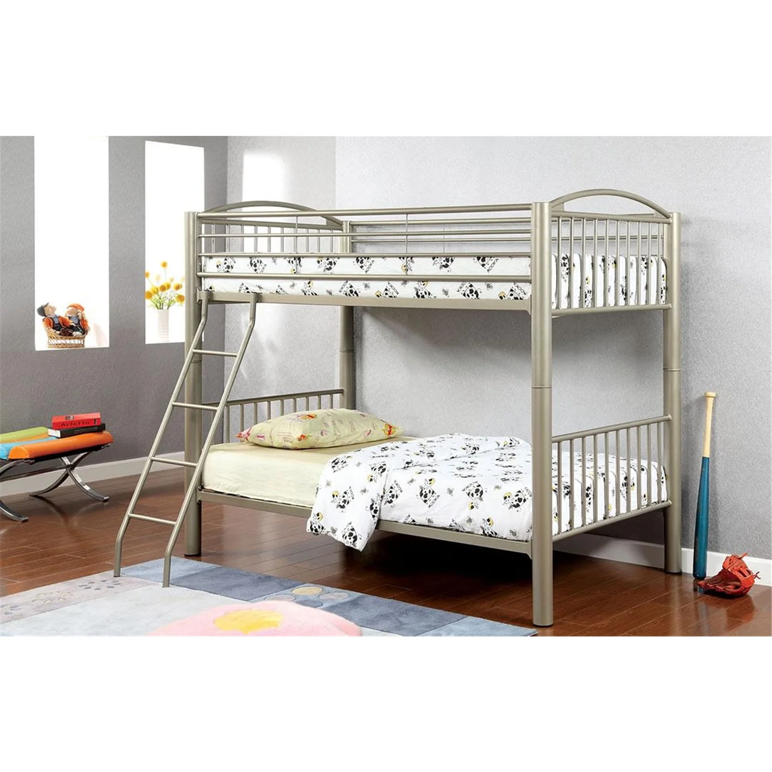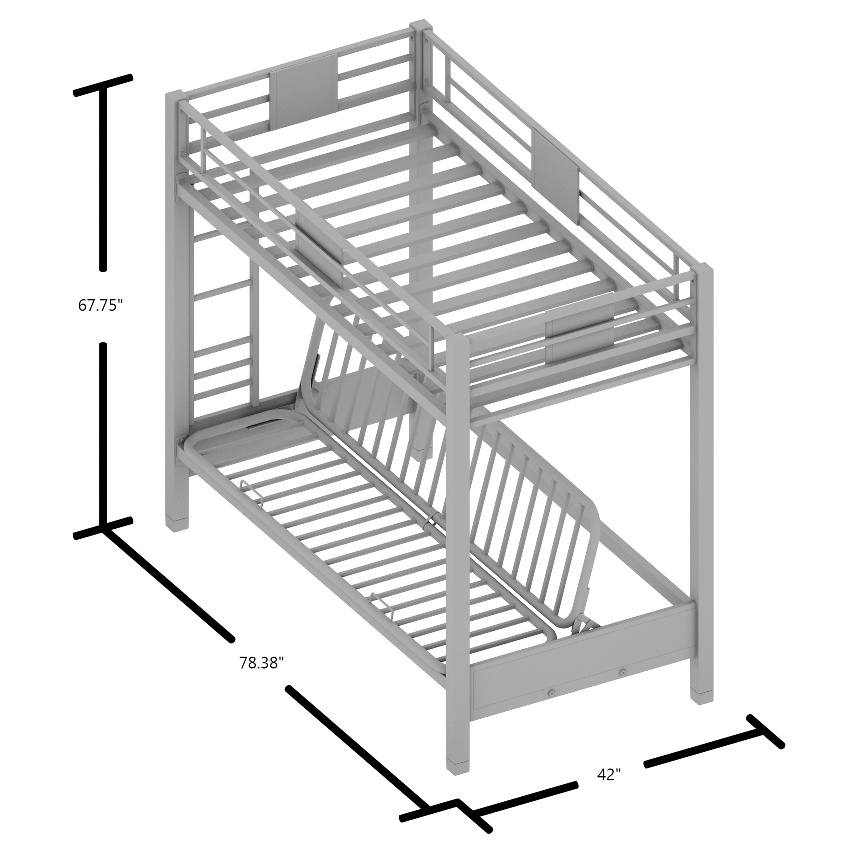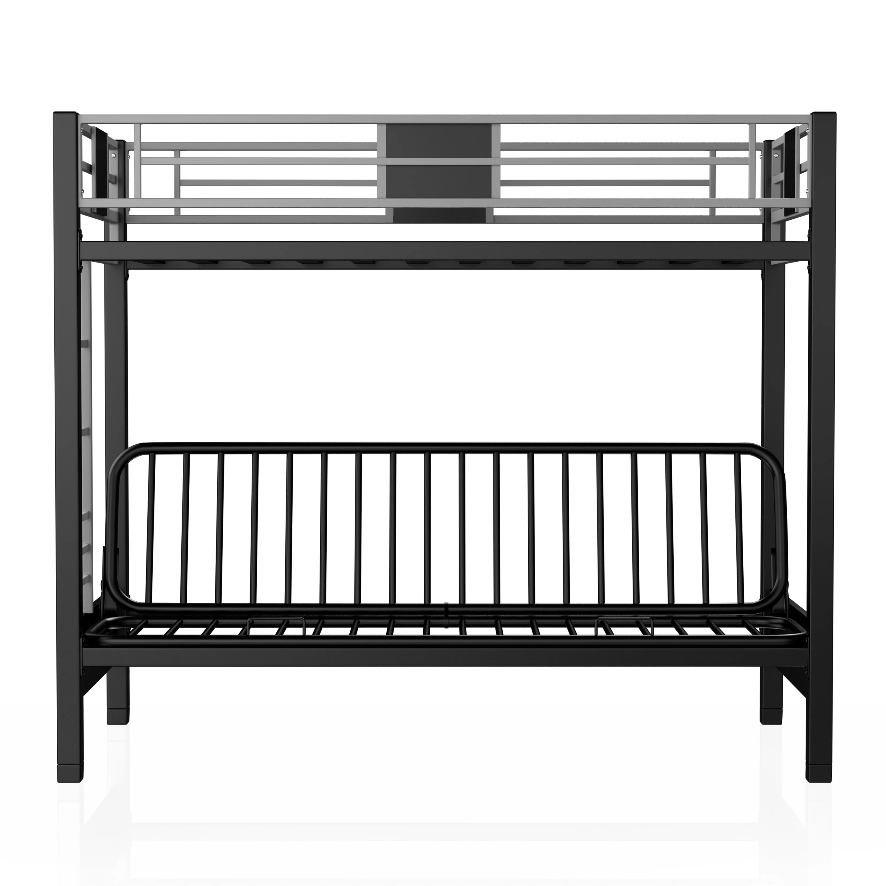 Furniture of America Shad Metal Bunk Bed, Twin/Sofa, Silver and Gun Metal