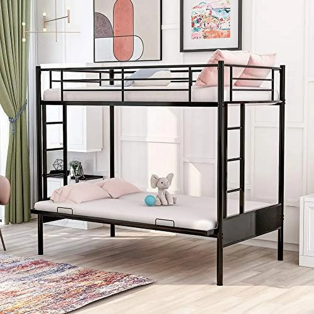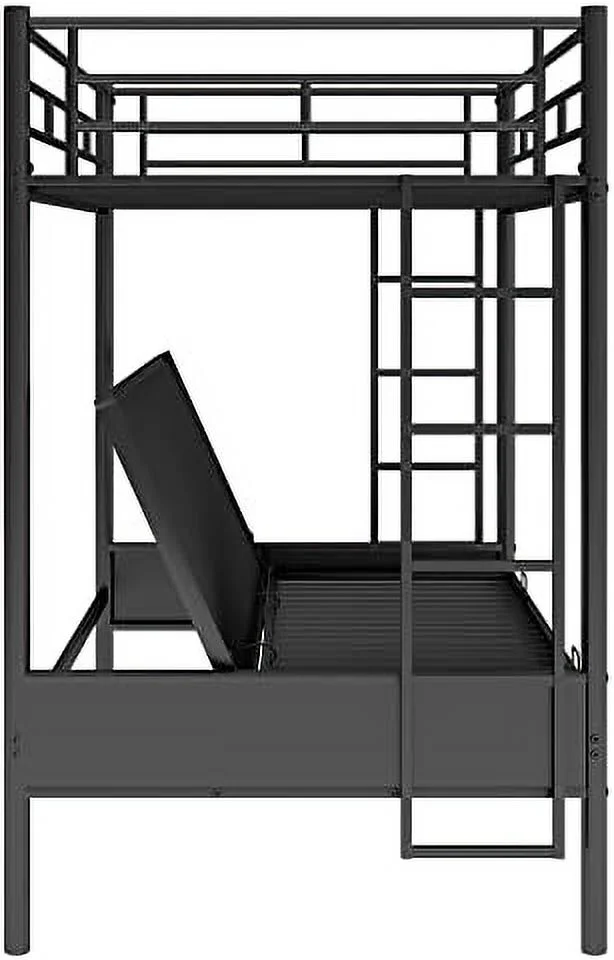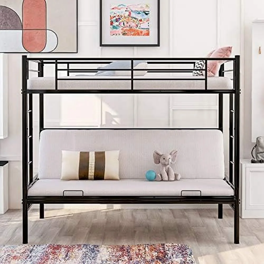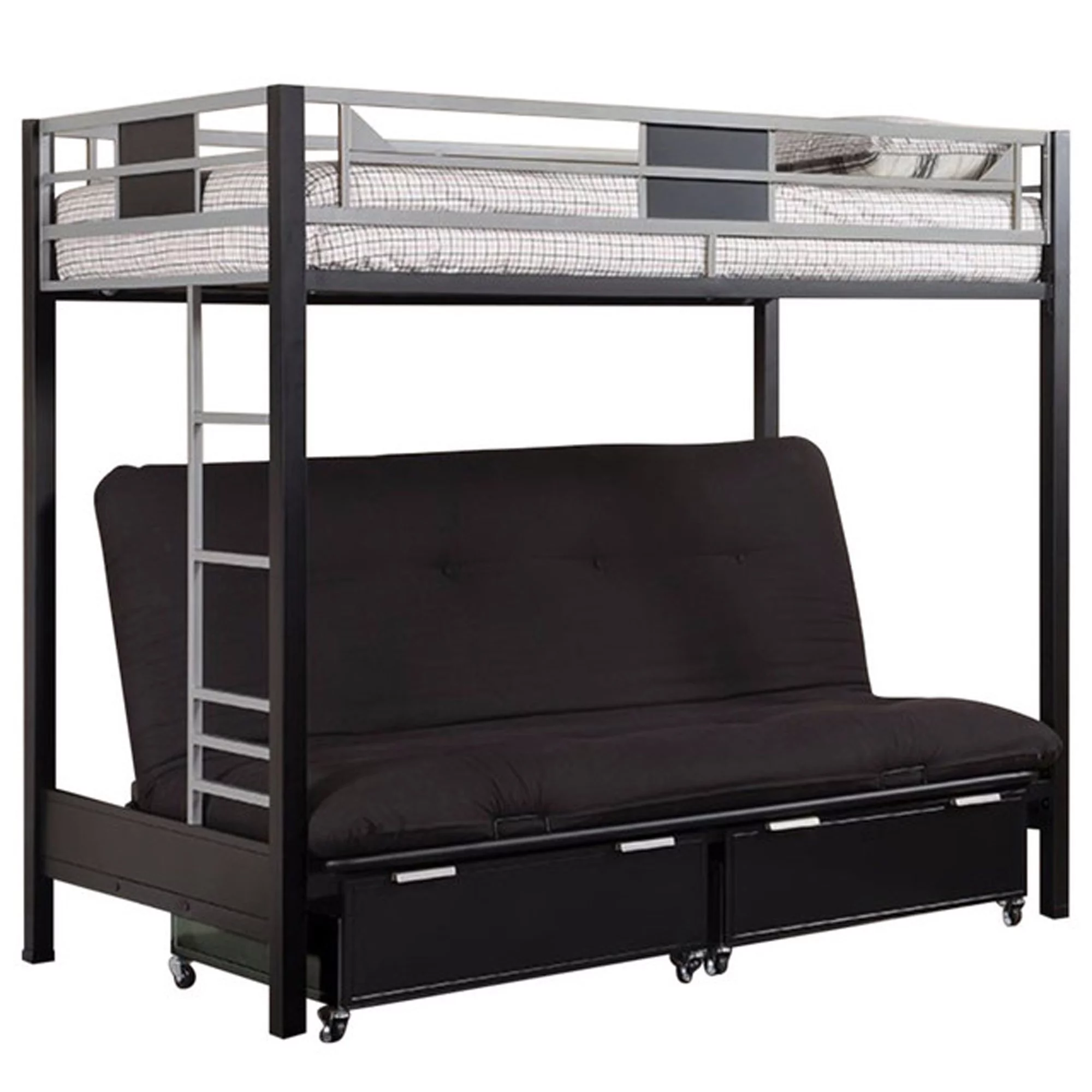 Furniture of America Shad Metal Bunk Bed, Twin/Sofa, Silver and Gun Metal