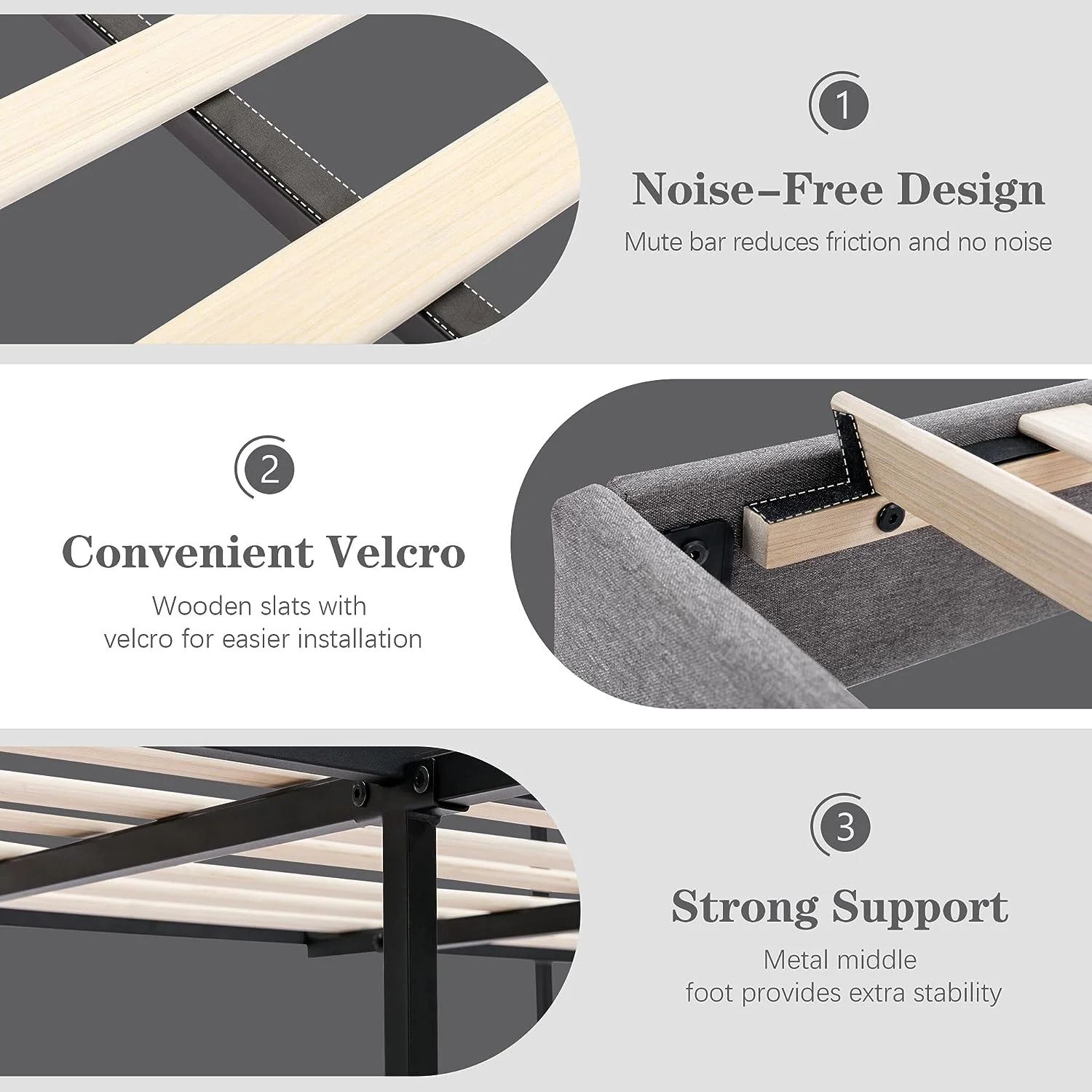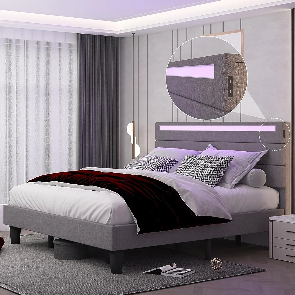 Kallabe King Size LED Light, Upholstered Platform Bed Frame with Headboard,Gray