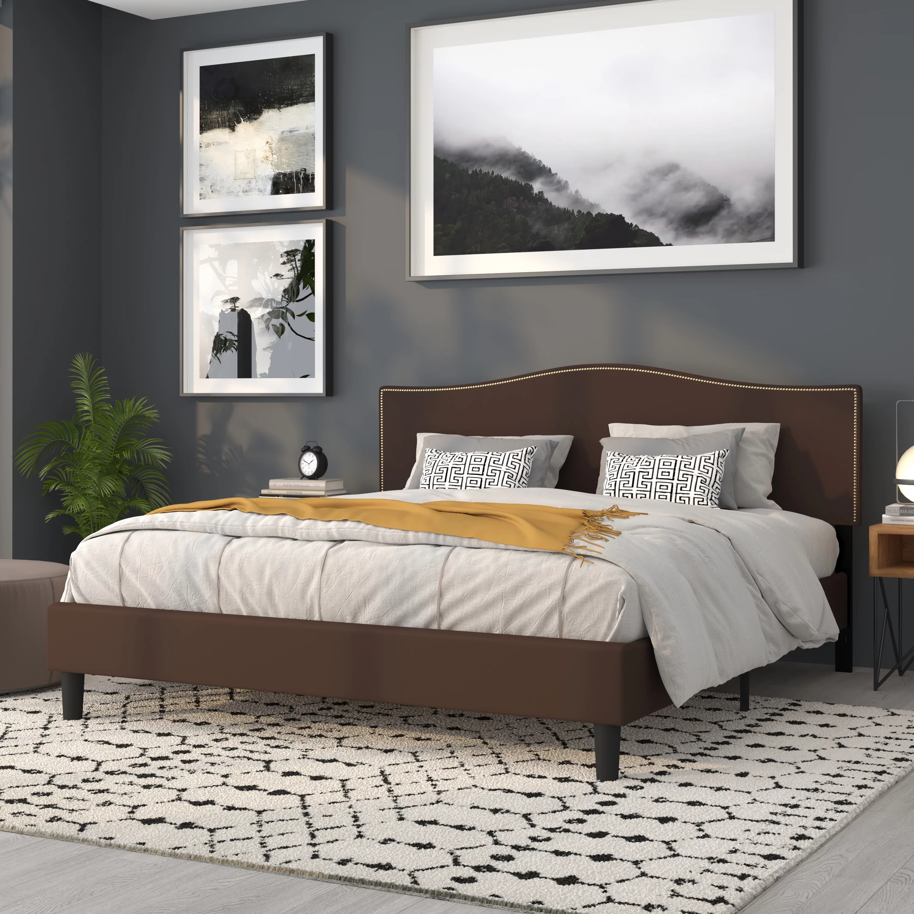 BizChair Upholstered King Size Arched Headboard with Accent Nail Trim in Dark Brown Fabric