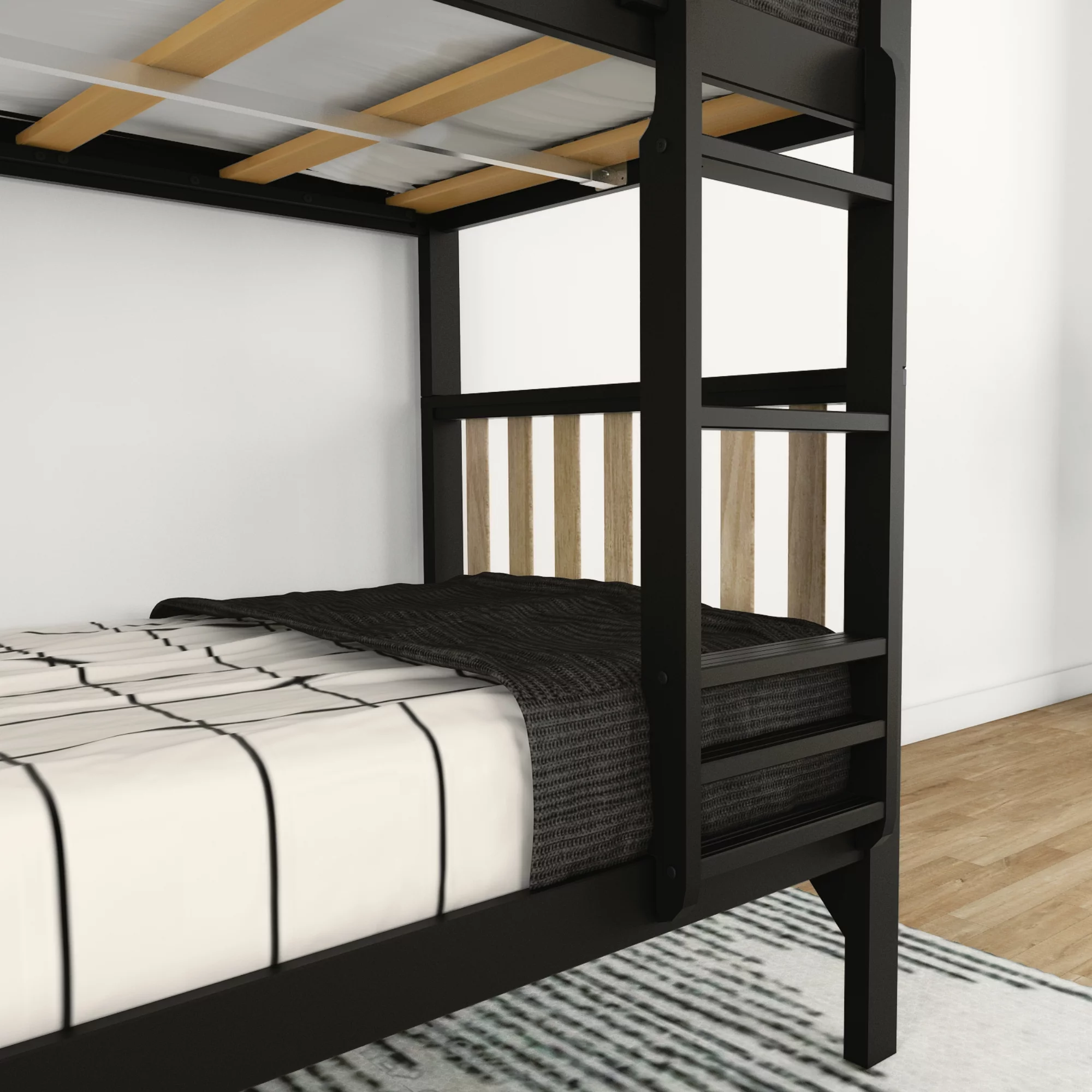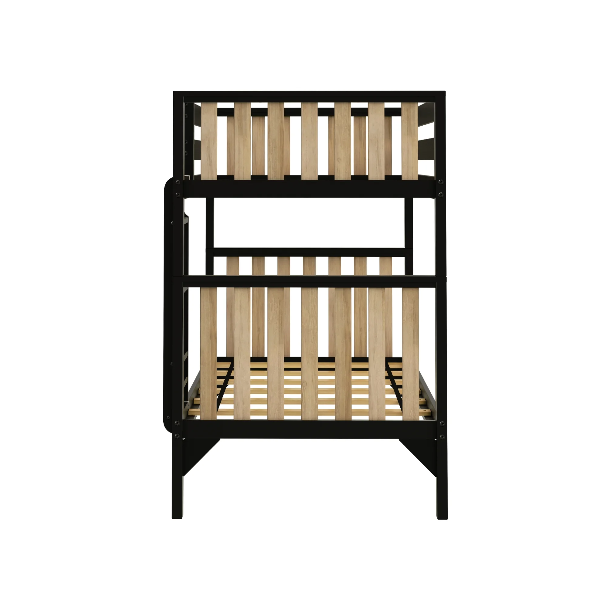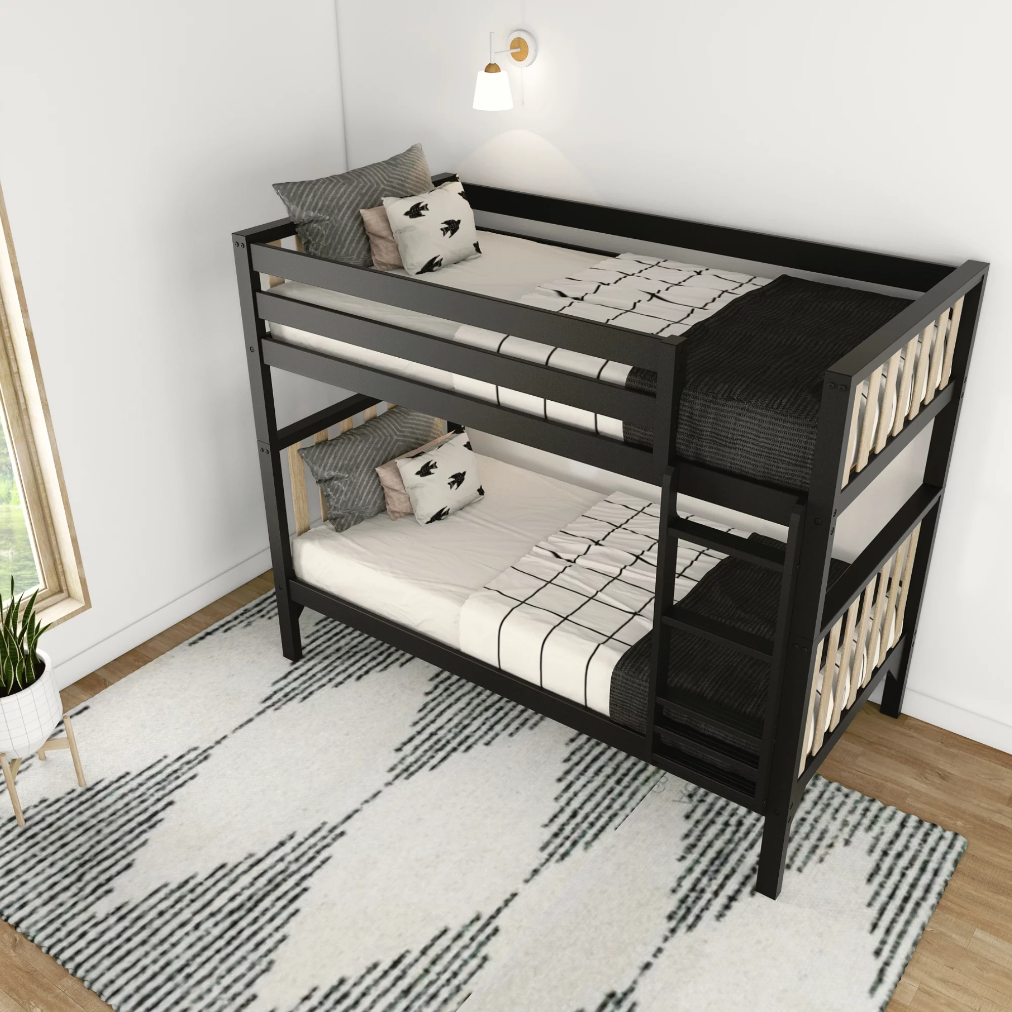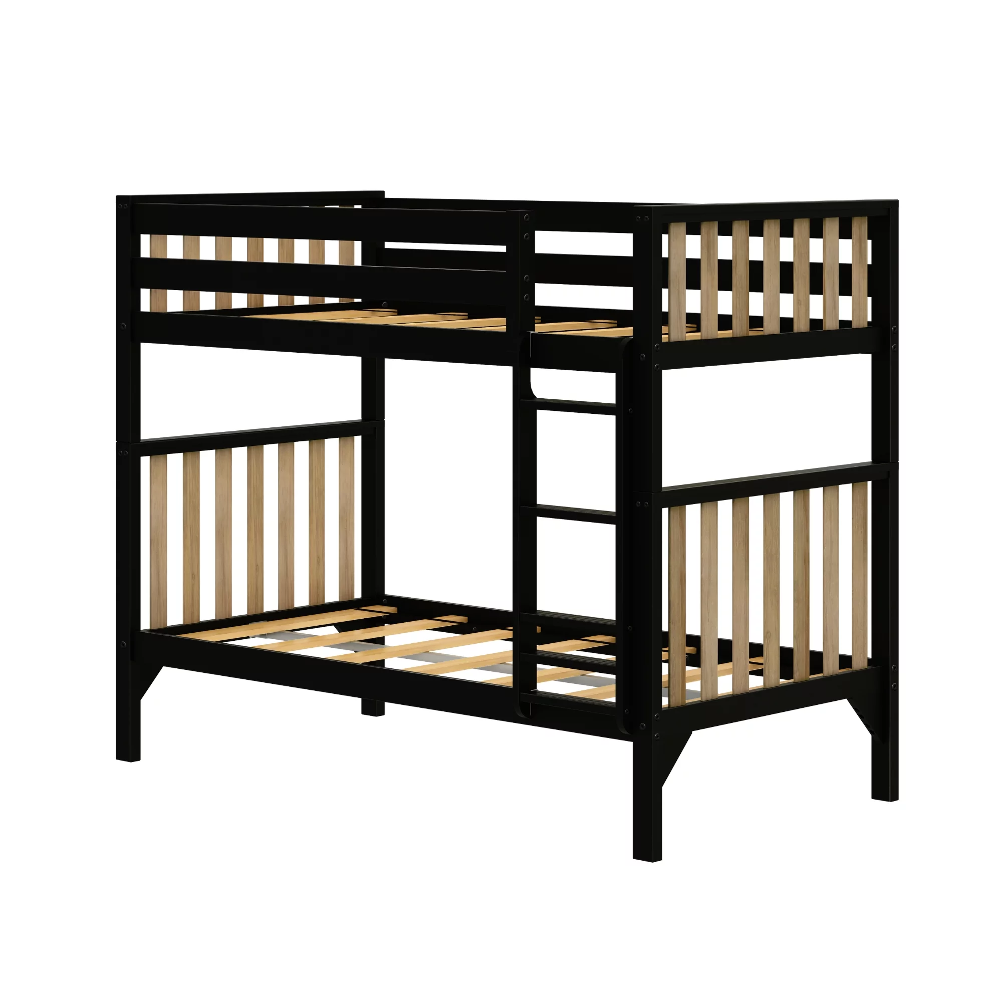 Max & Lily Bunk Bed, Scandinavian Wooden Twin Over Twin Bunk Beds for Kids, Black/Blonde