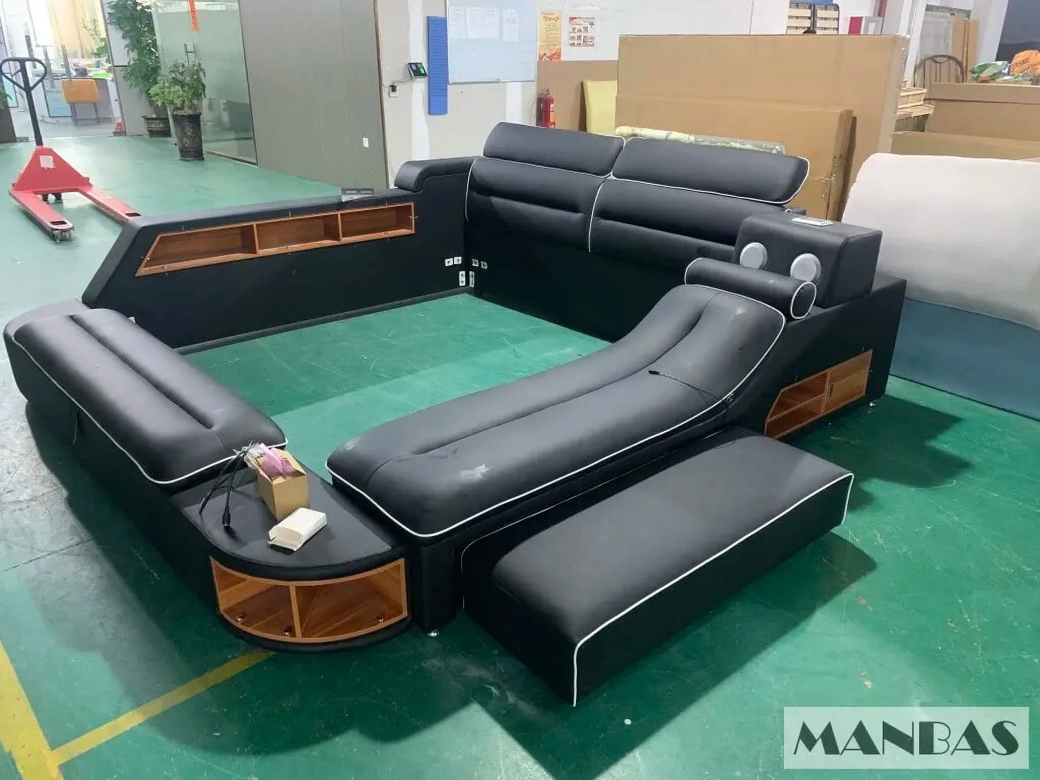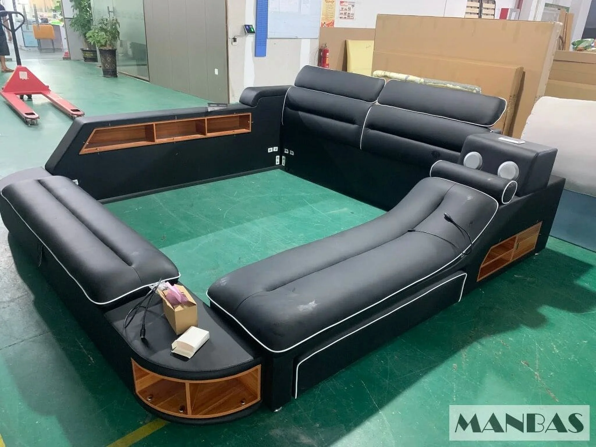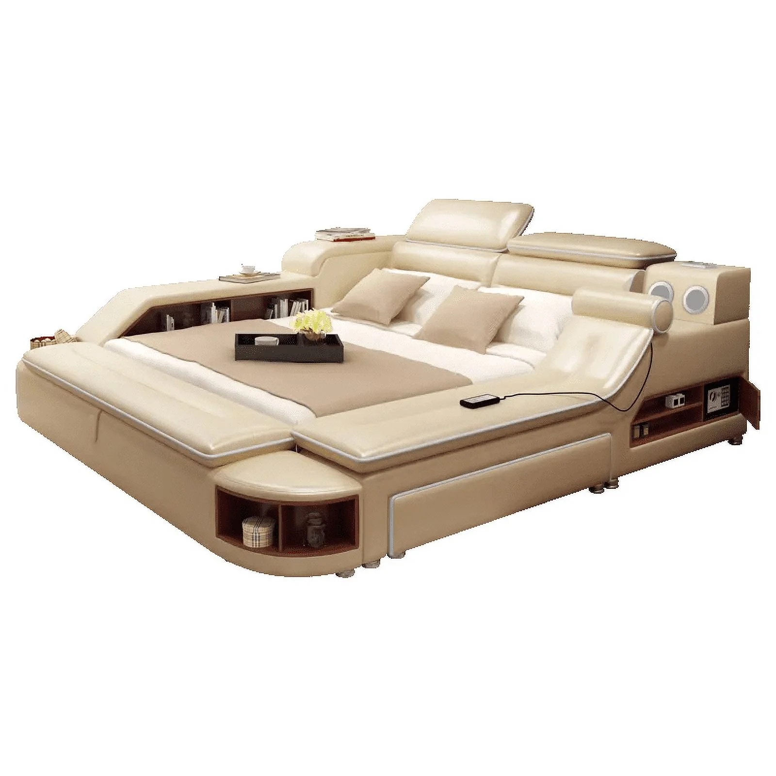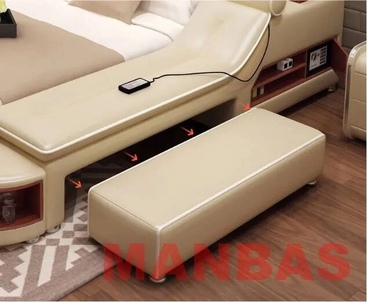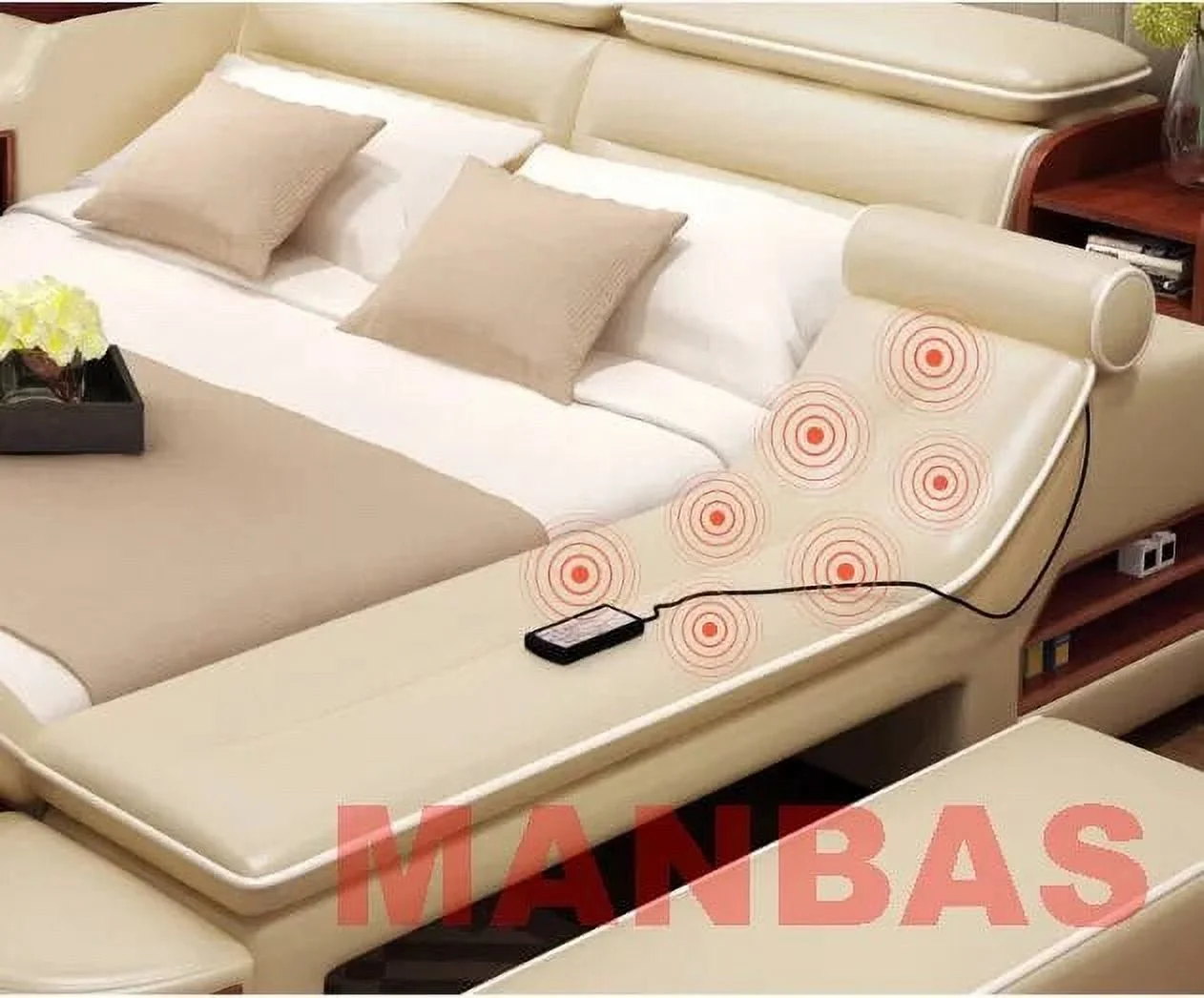 MINGDIBAO Massage Bed - Tech Smart Bed with Multifunctional Bed Frame, Genuine Leather, USB, Bluetooth Speaker and Safe Bedroom