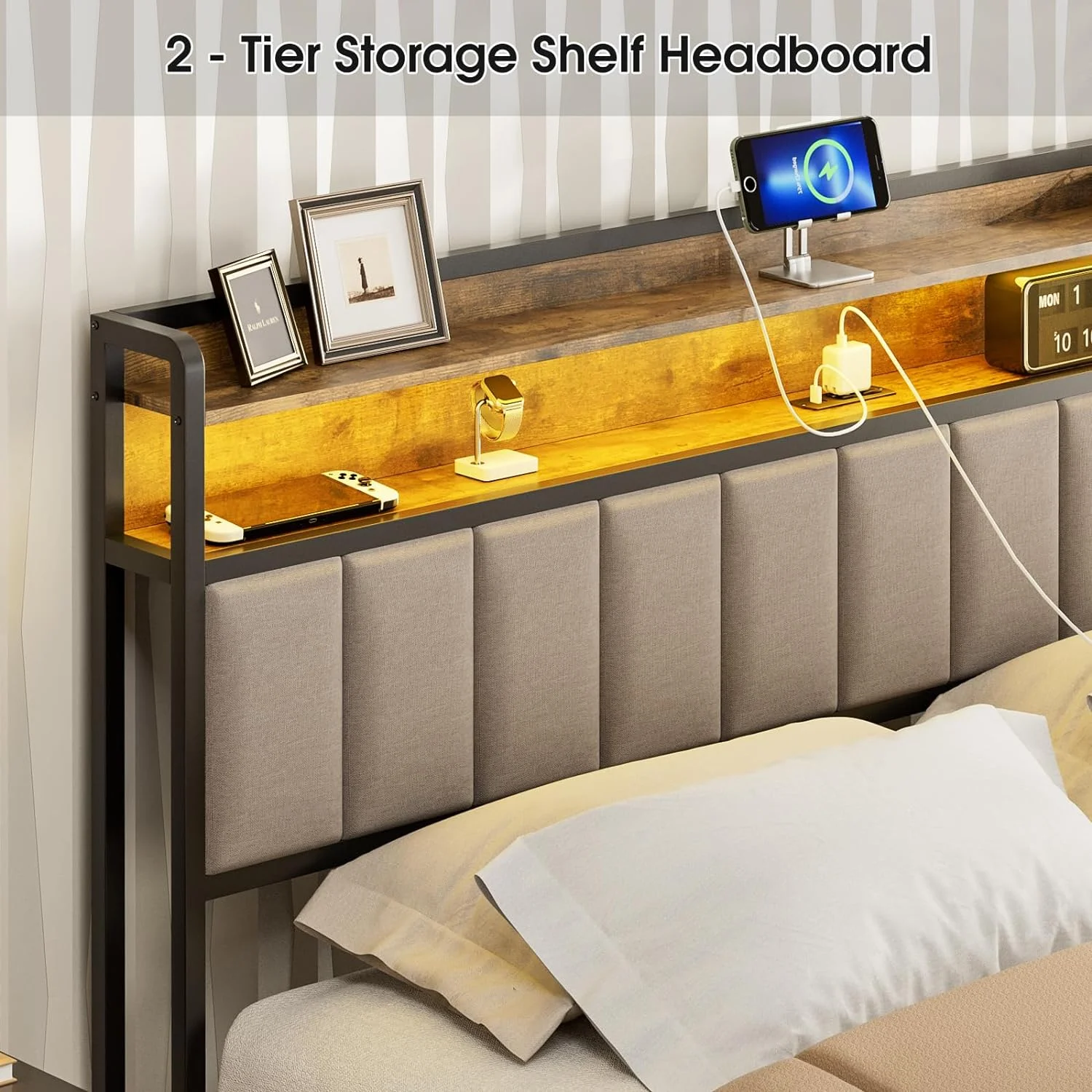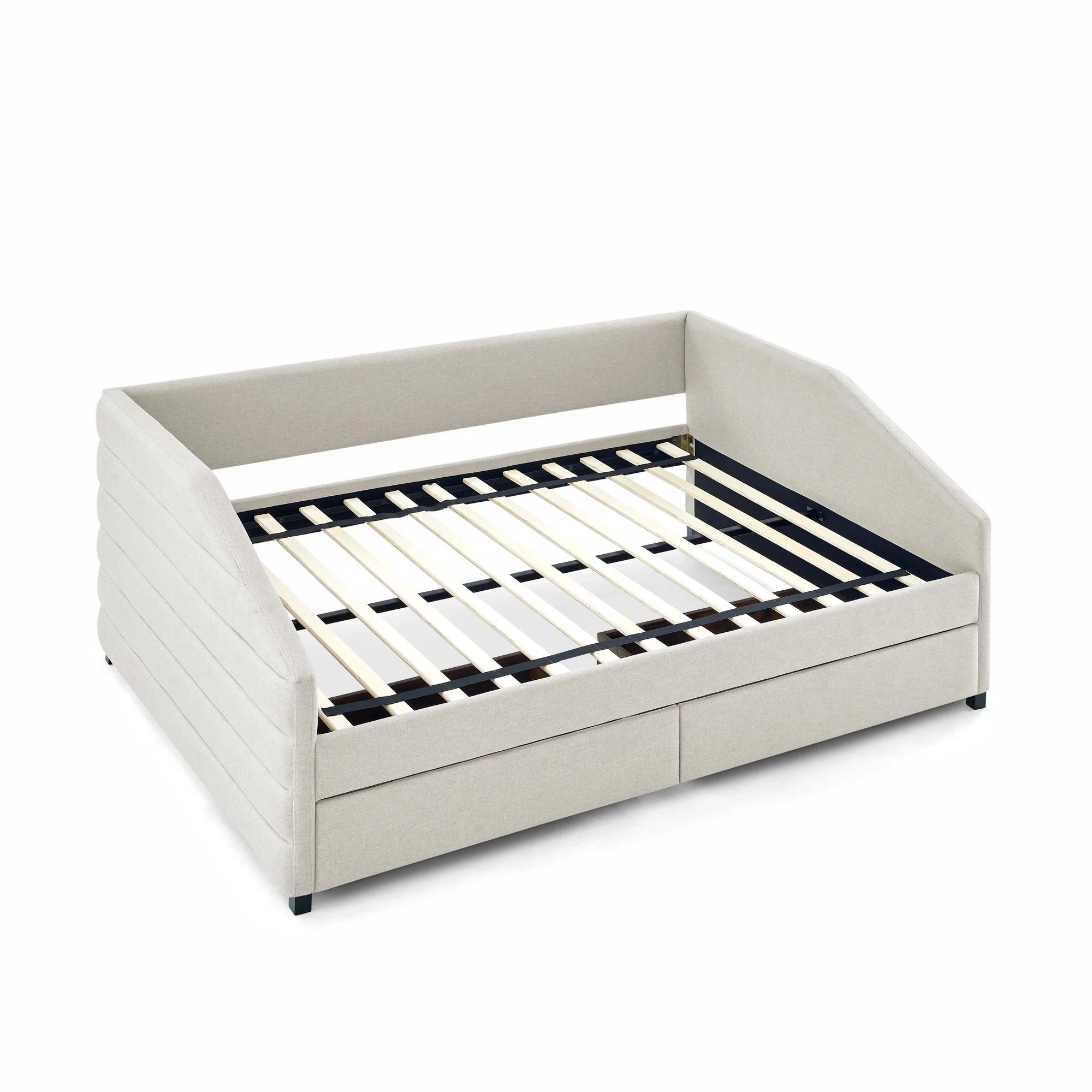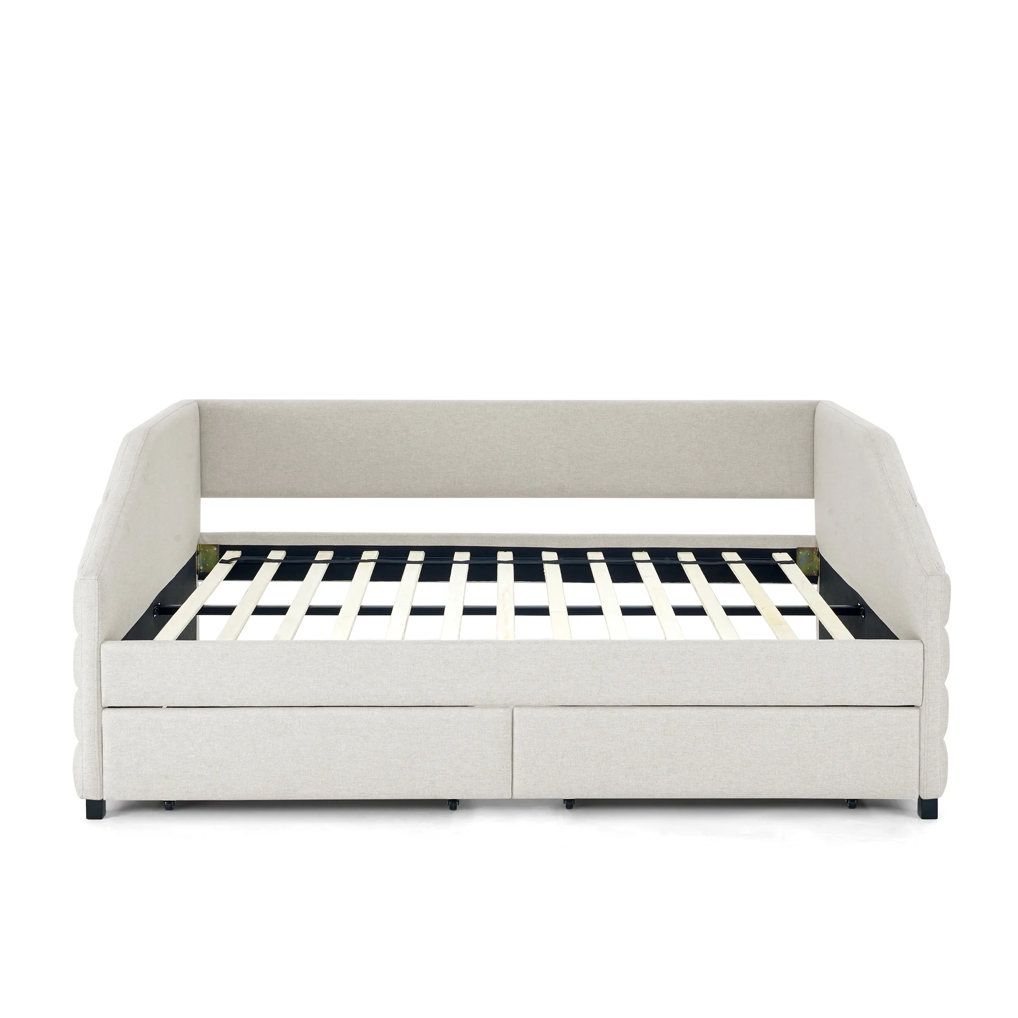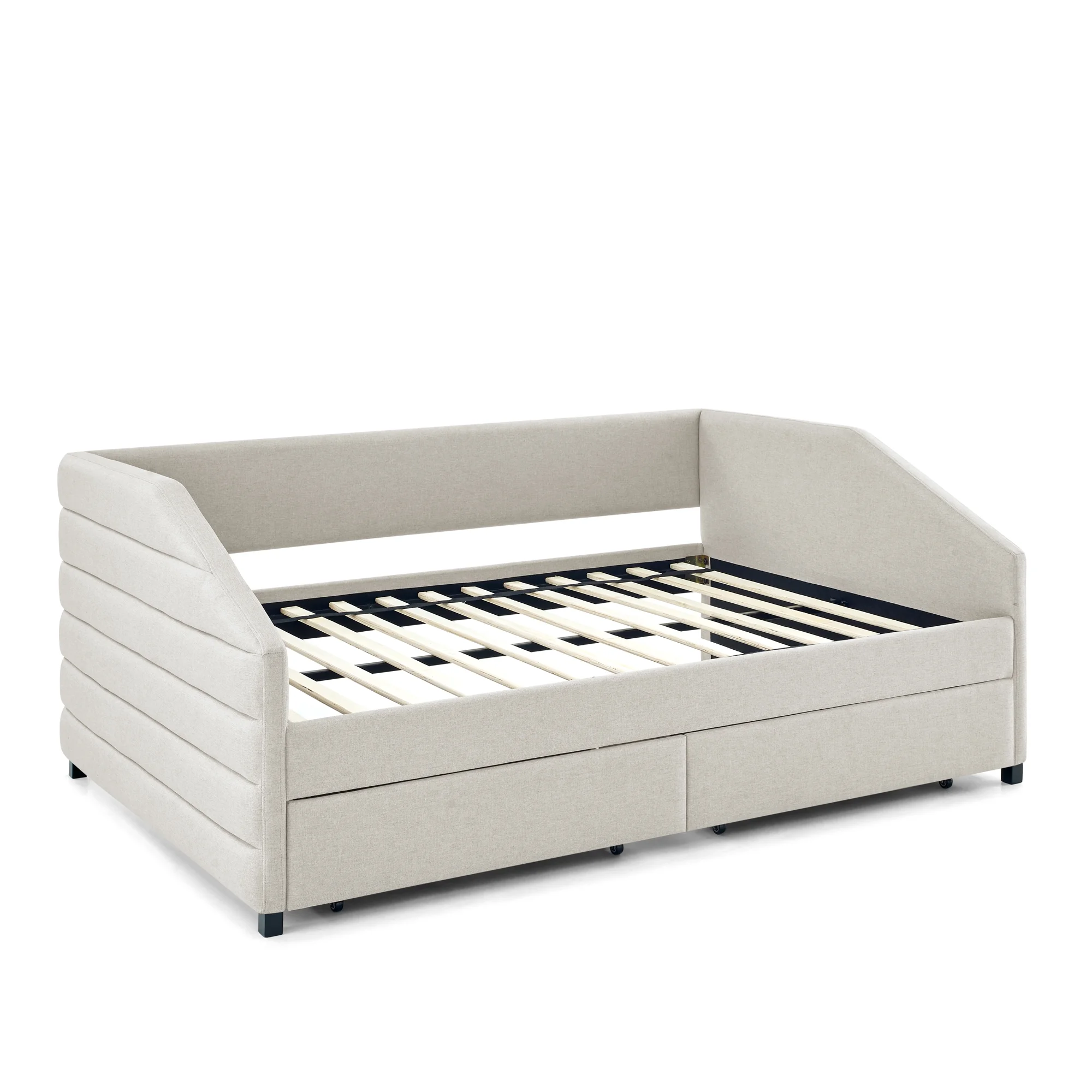 CoSoTower Full Size Daybed with Two Drawers Trundle Upholstered Tufted Sofa Bed, Linen Fabric, Beige (82.5"X58"X34")