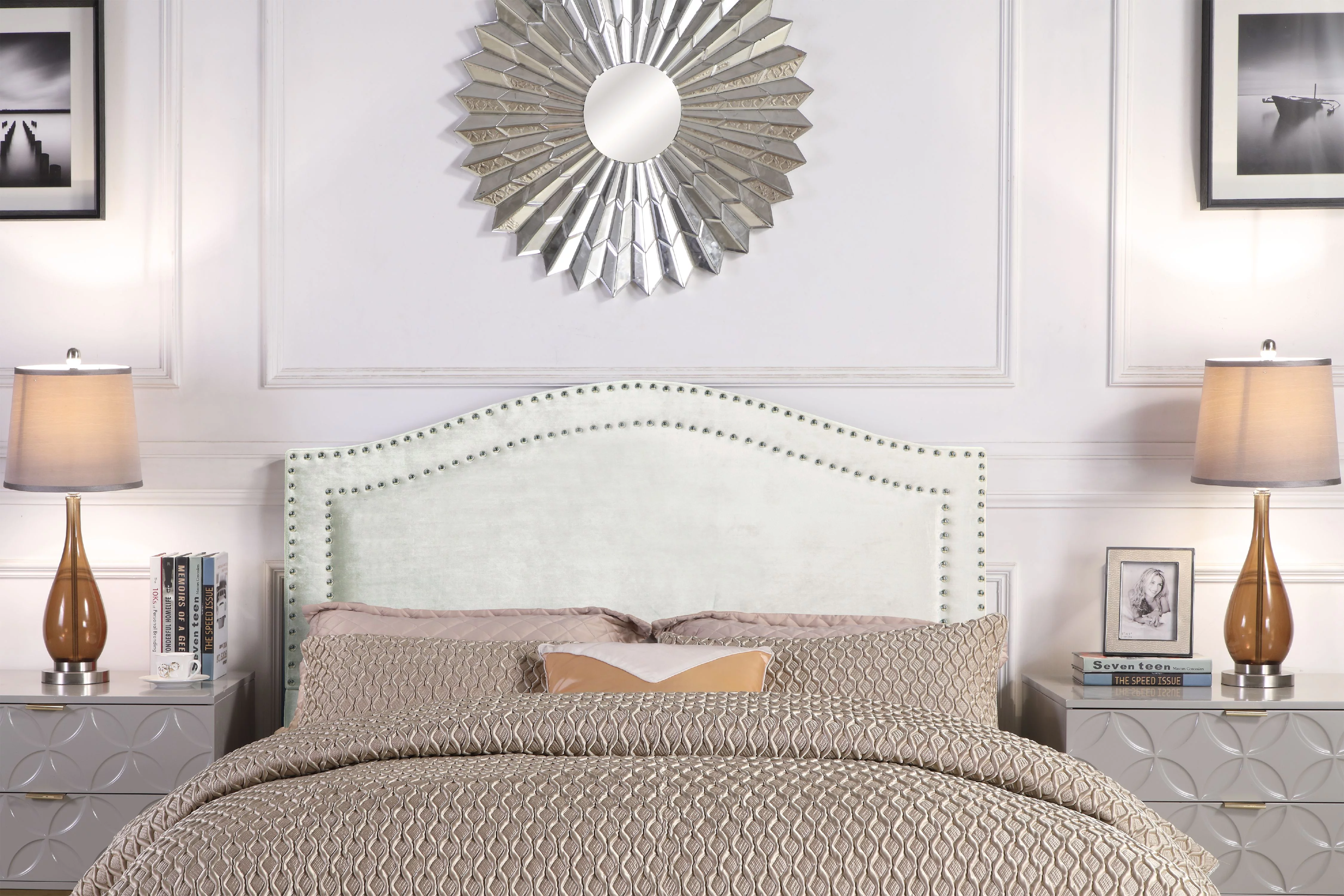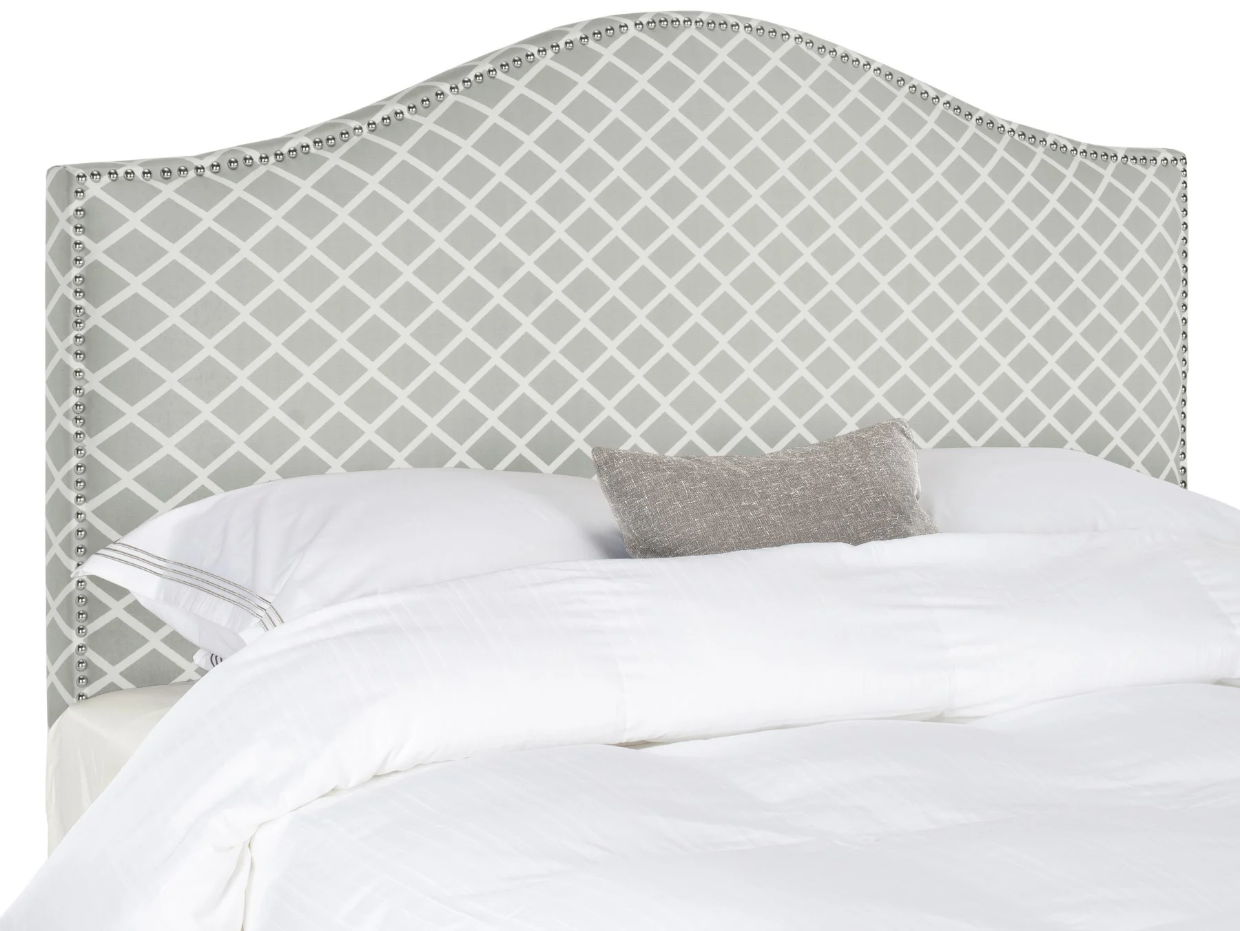SAFAVIEH Connie Classic Upholstered Headboard with Nail Heads, King, Grey/White Trellis