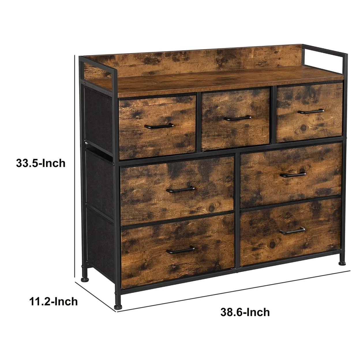 Grace 39 Inch Wood Dresser Chest, 7 Removable Drawers, Fabric Sides, Brown- Saltoro Sherpi