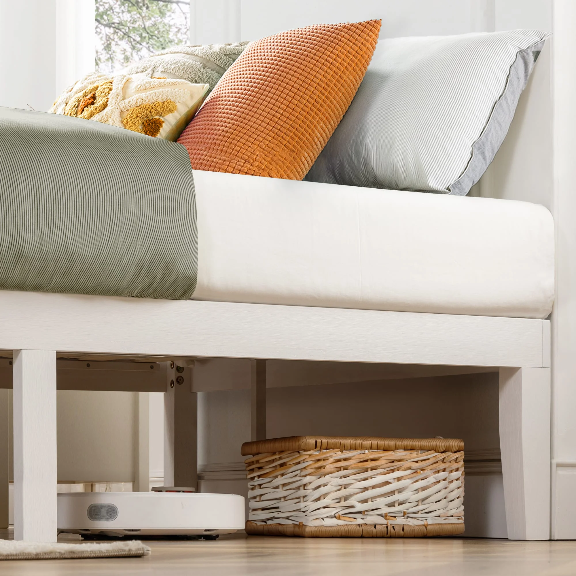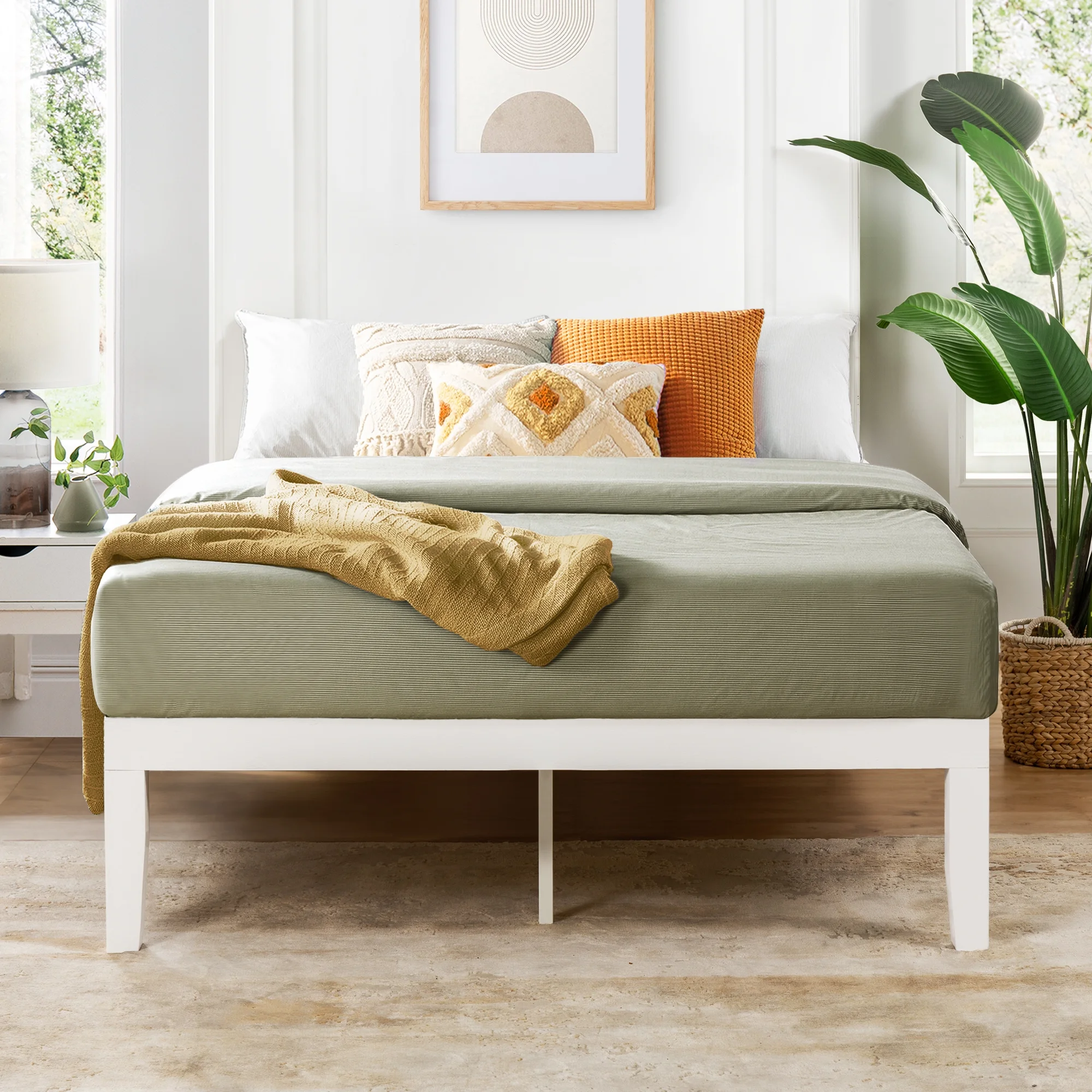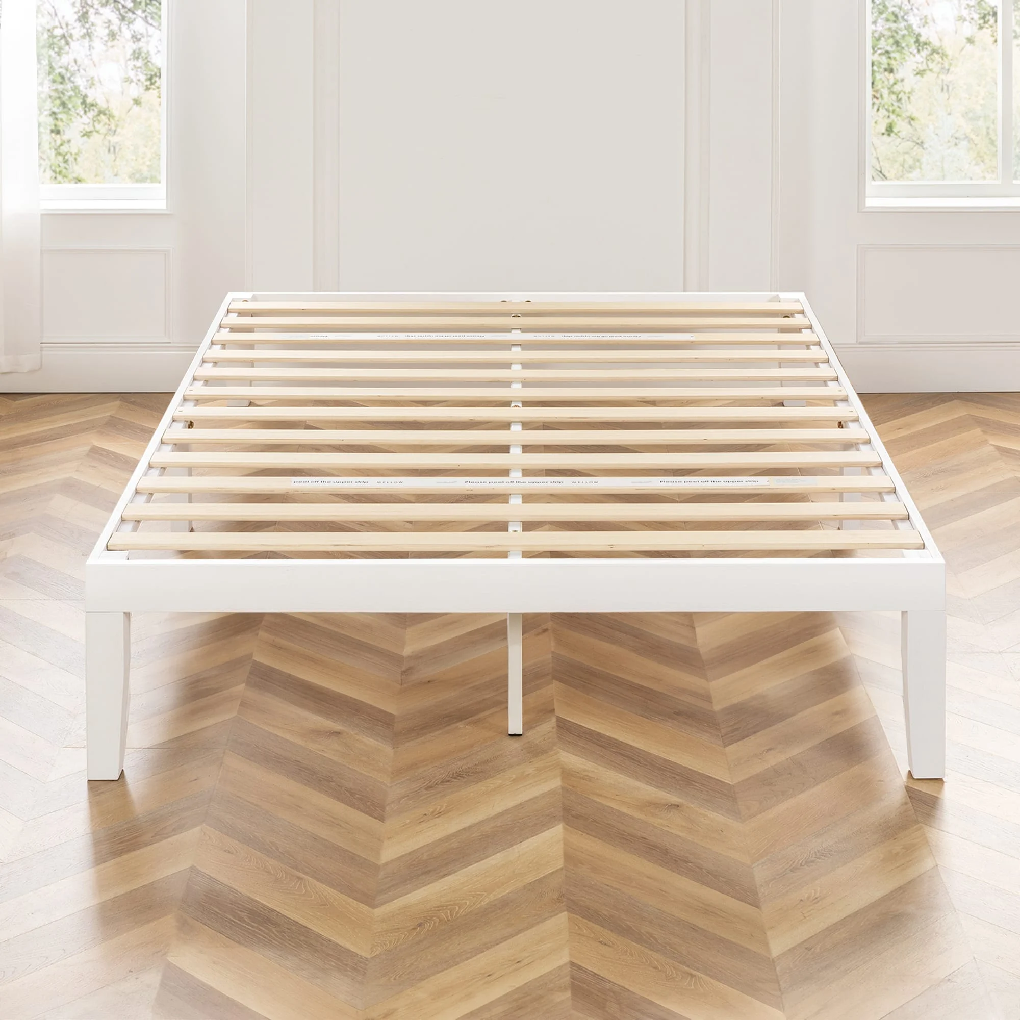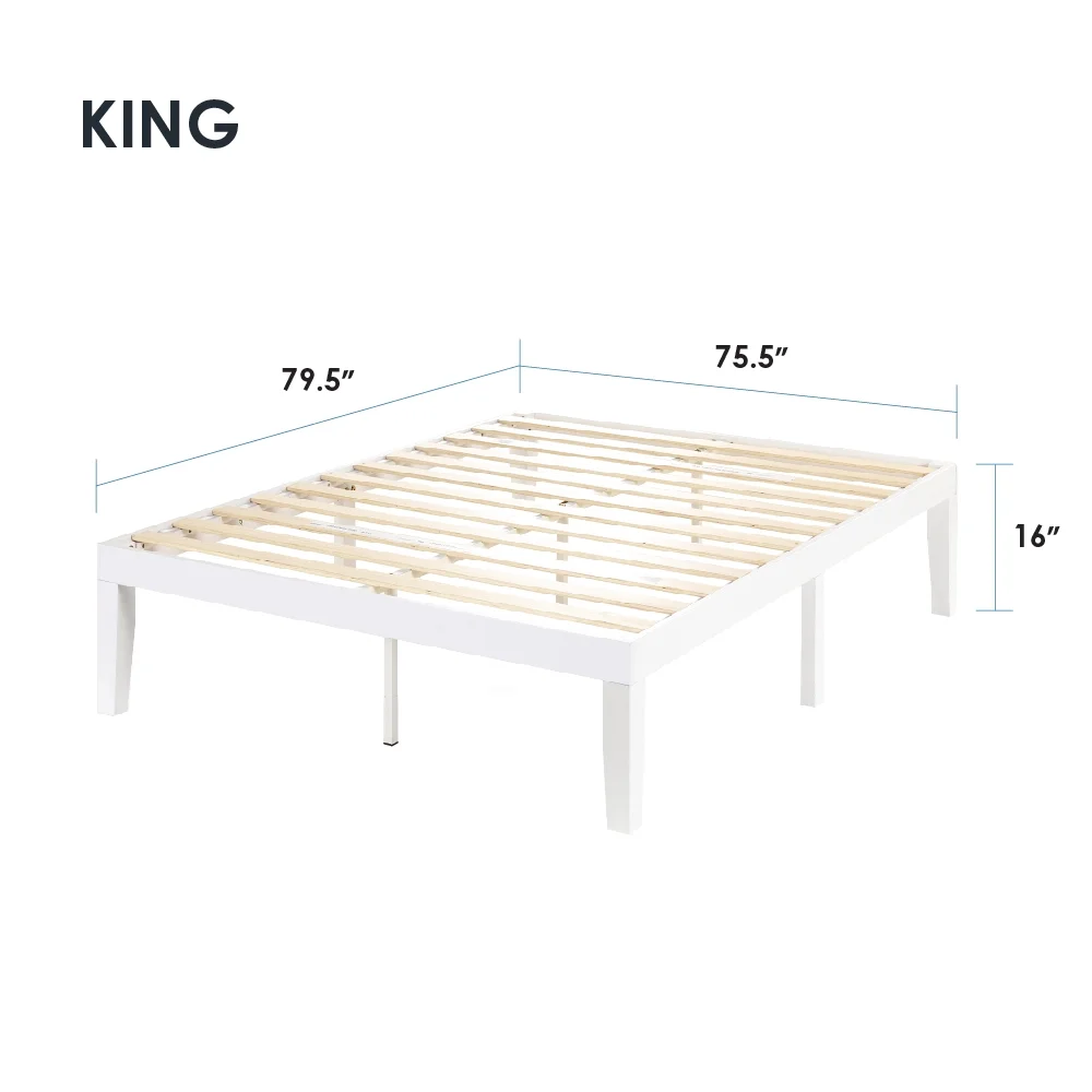 Mellow Naturalista Classic 16" Solid Wood Platform Bed with Wooden Slats, White, King