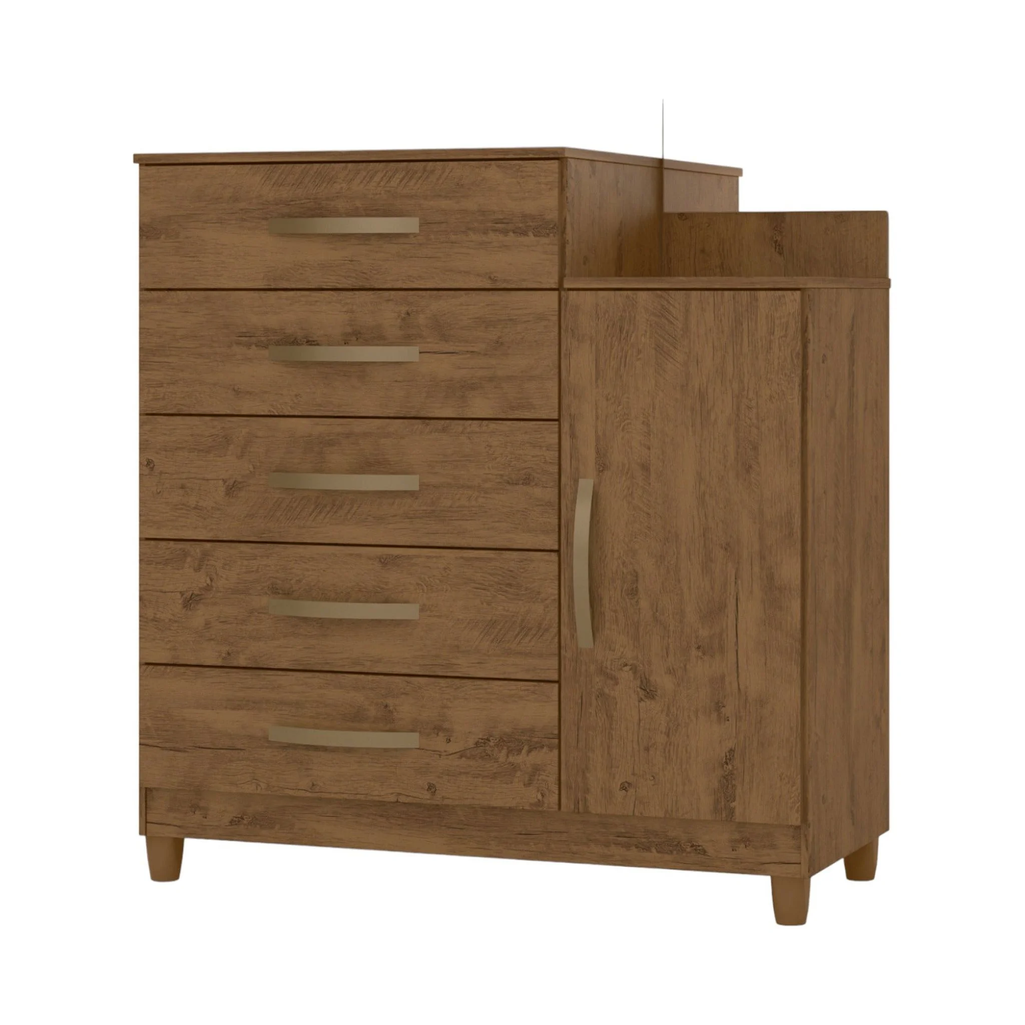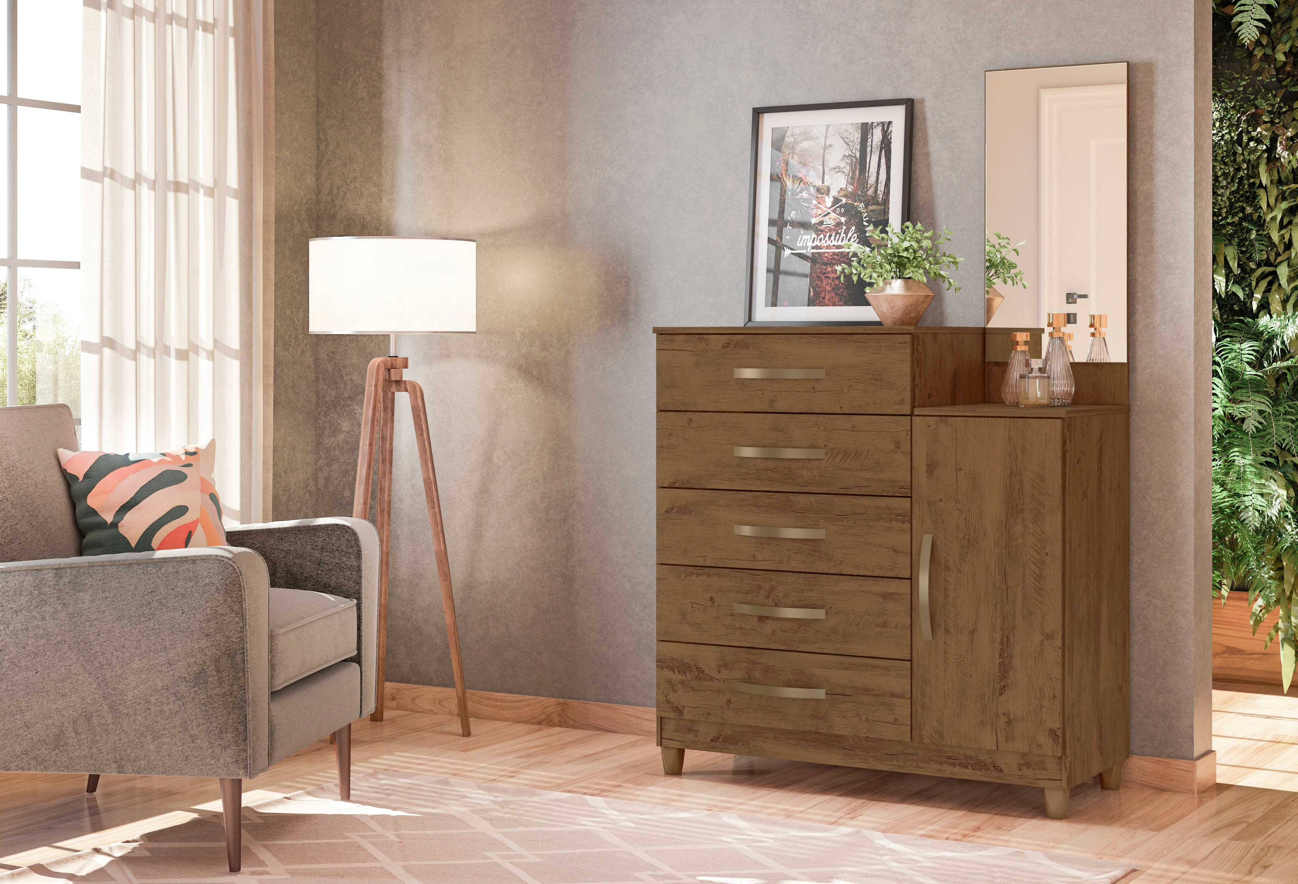 BenJara Functionally Stylized Rubber Wood & Okuome Veneer Dresser, Brown