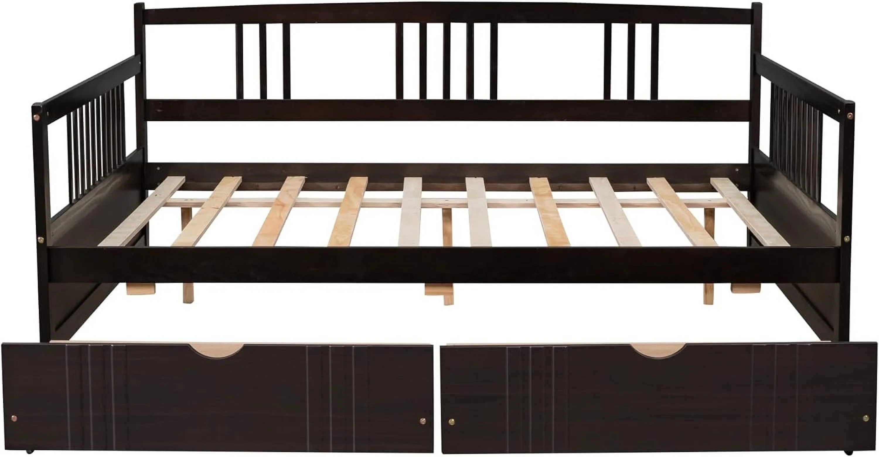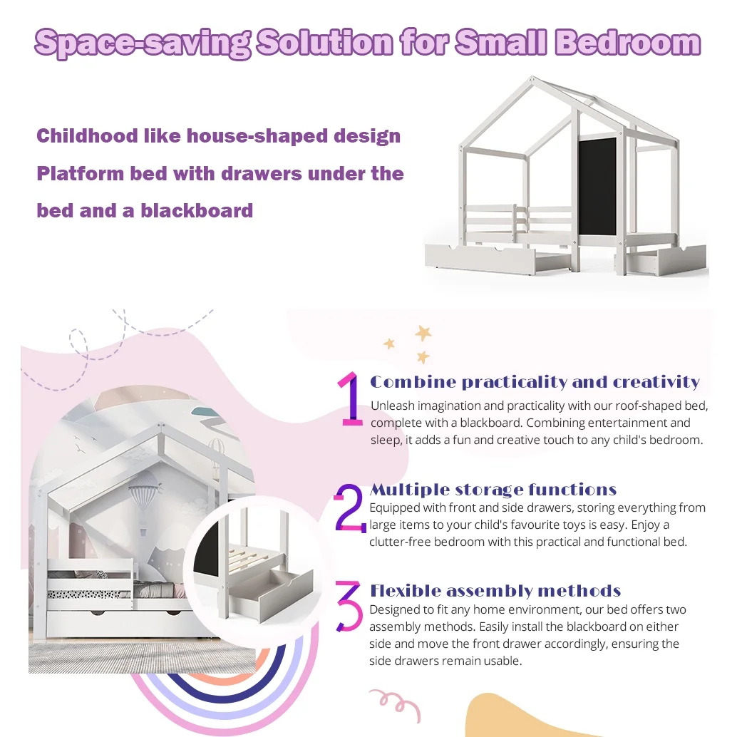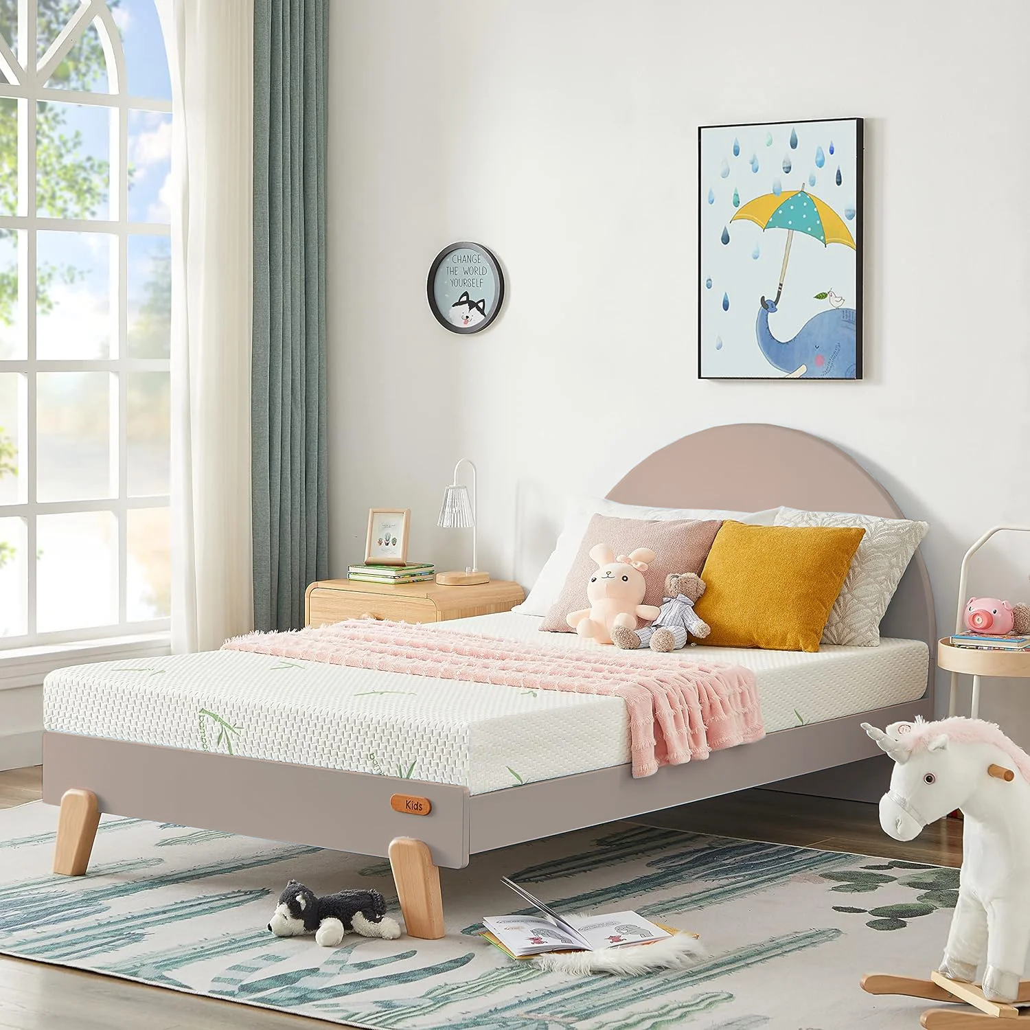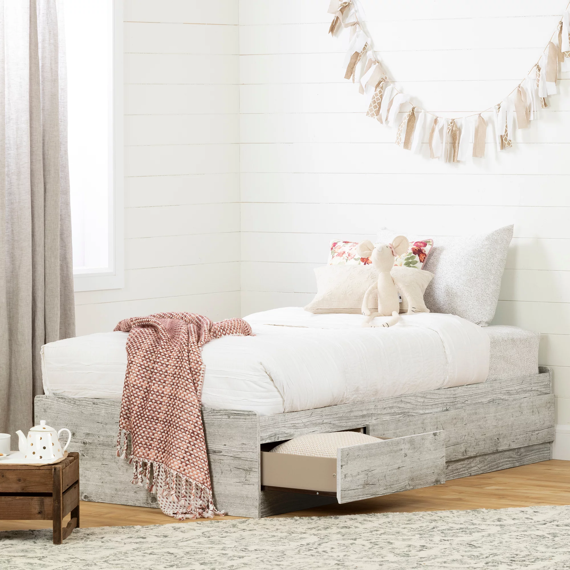 Euroco Linen Twin Size Upholstered Platform Bed with 2 Storage Drawers for Kids, Gray