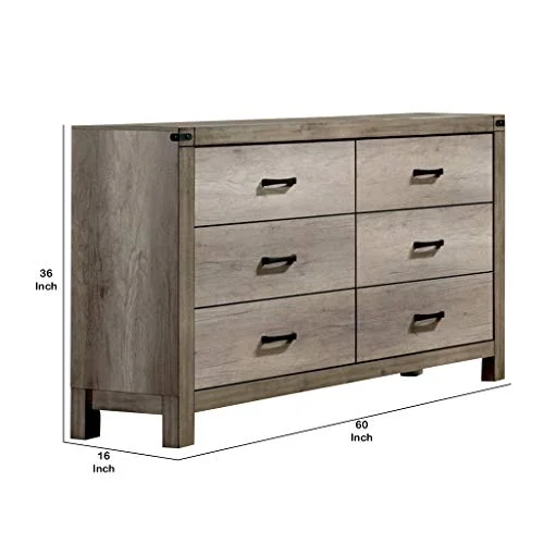 Benjara BM215285 6 Drawer Dresser with Metal Pulls & Block Legs, Light Brown