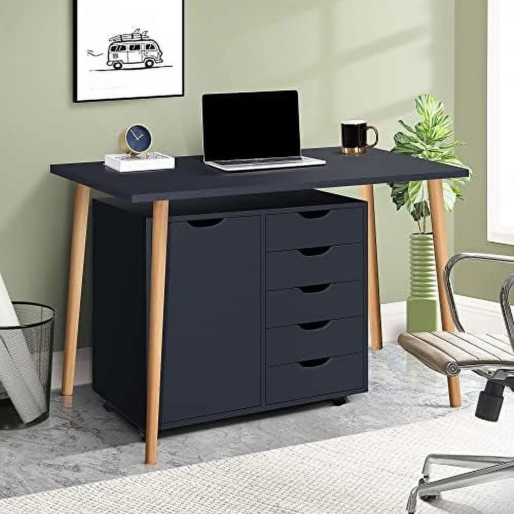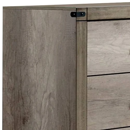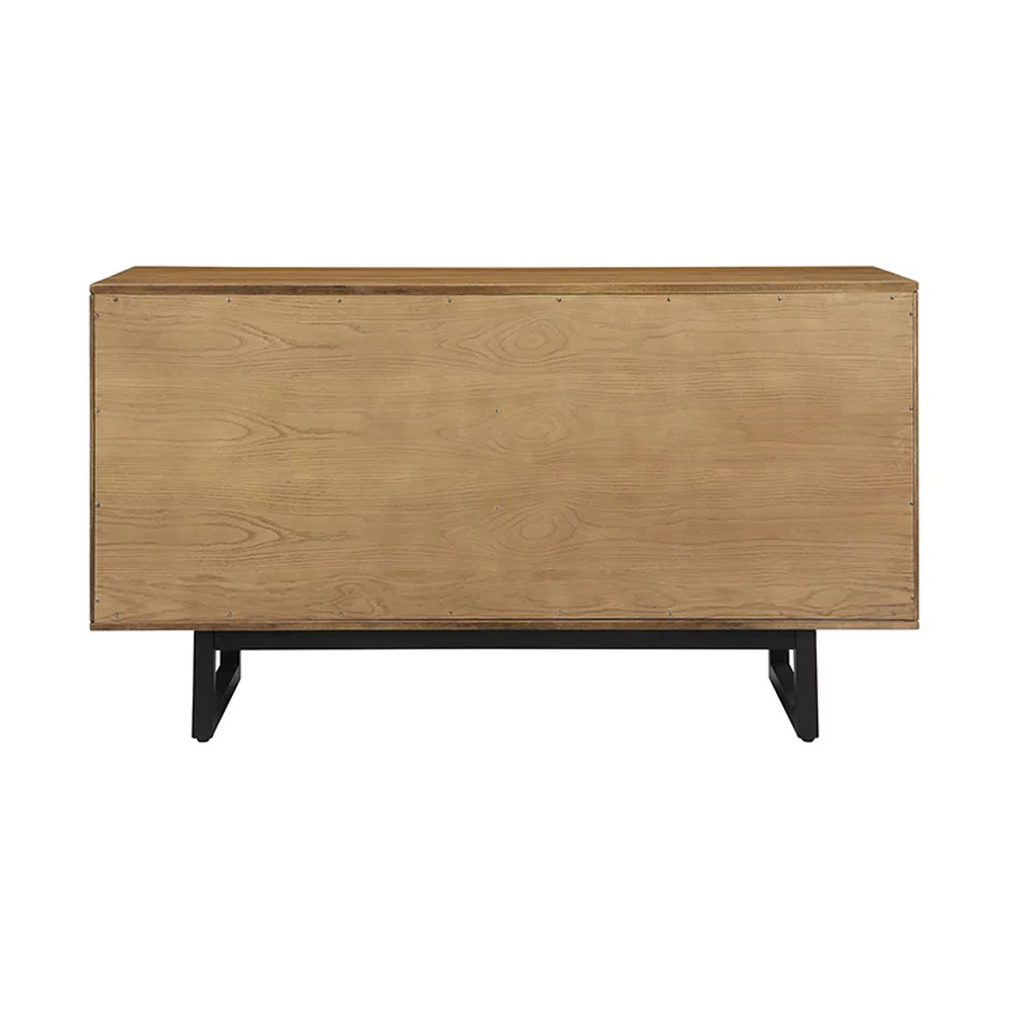 BenJara Ryan 59 Inch Dresser with 4 Drawers, Brown Oak Wood, Black Metal Frame