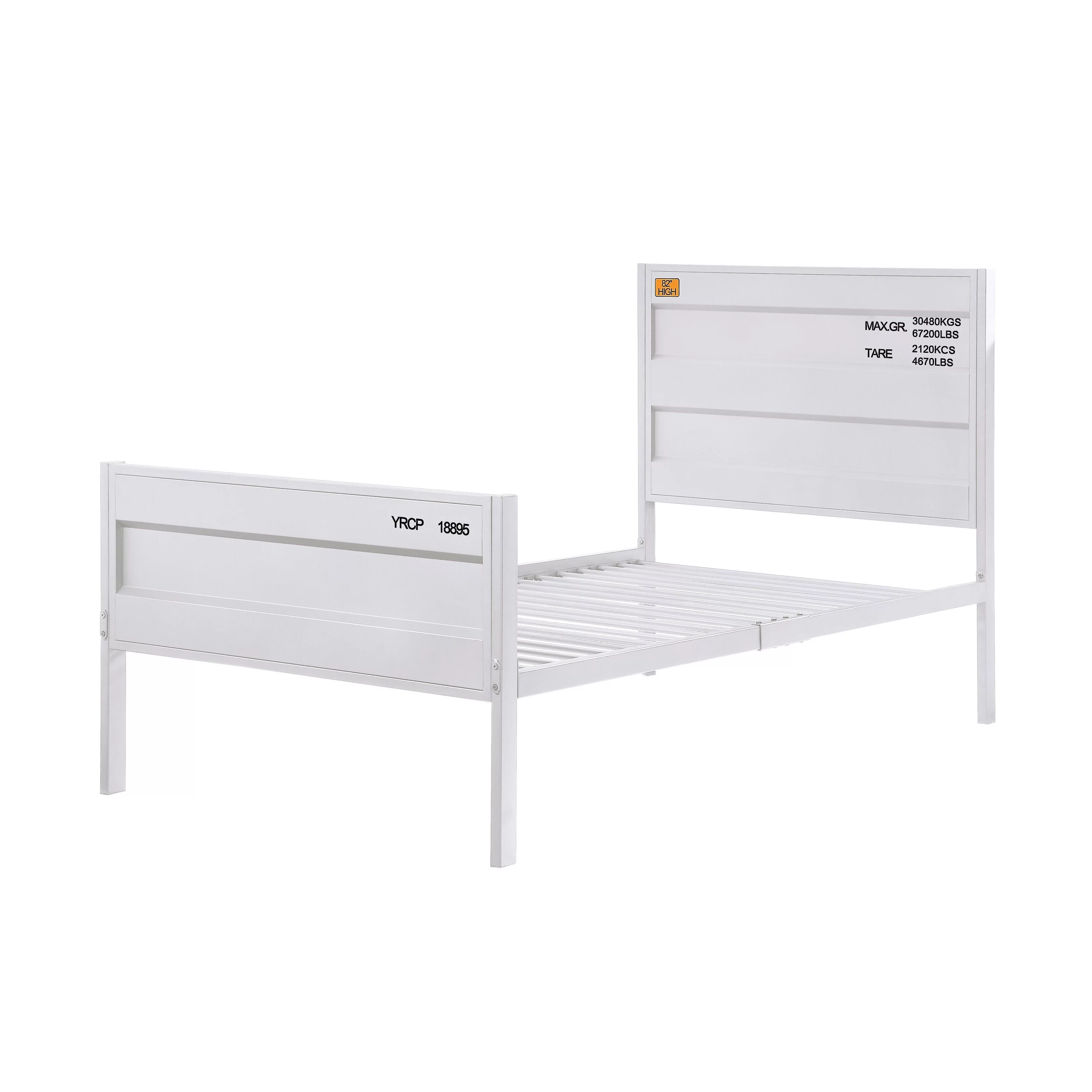 White Industrial Styl Cargo Twin Bed Features a Recessed Panel Design in an with Low Profile Footboard, White