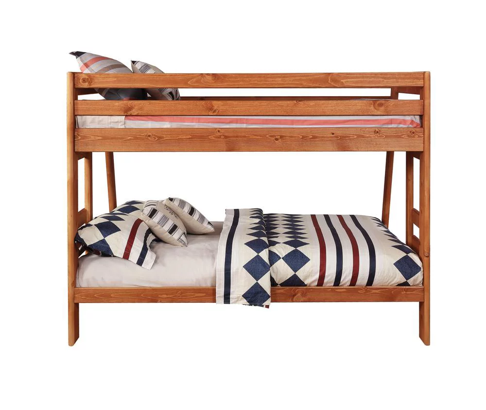 Wrangle Hill Twin over Full Bunk Bed with Built-in Ladder Amber Wash