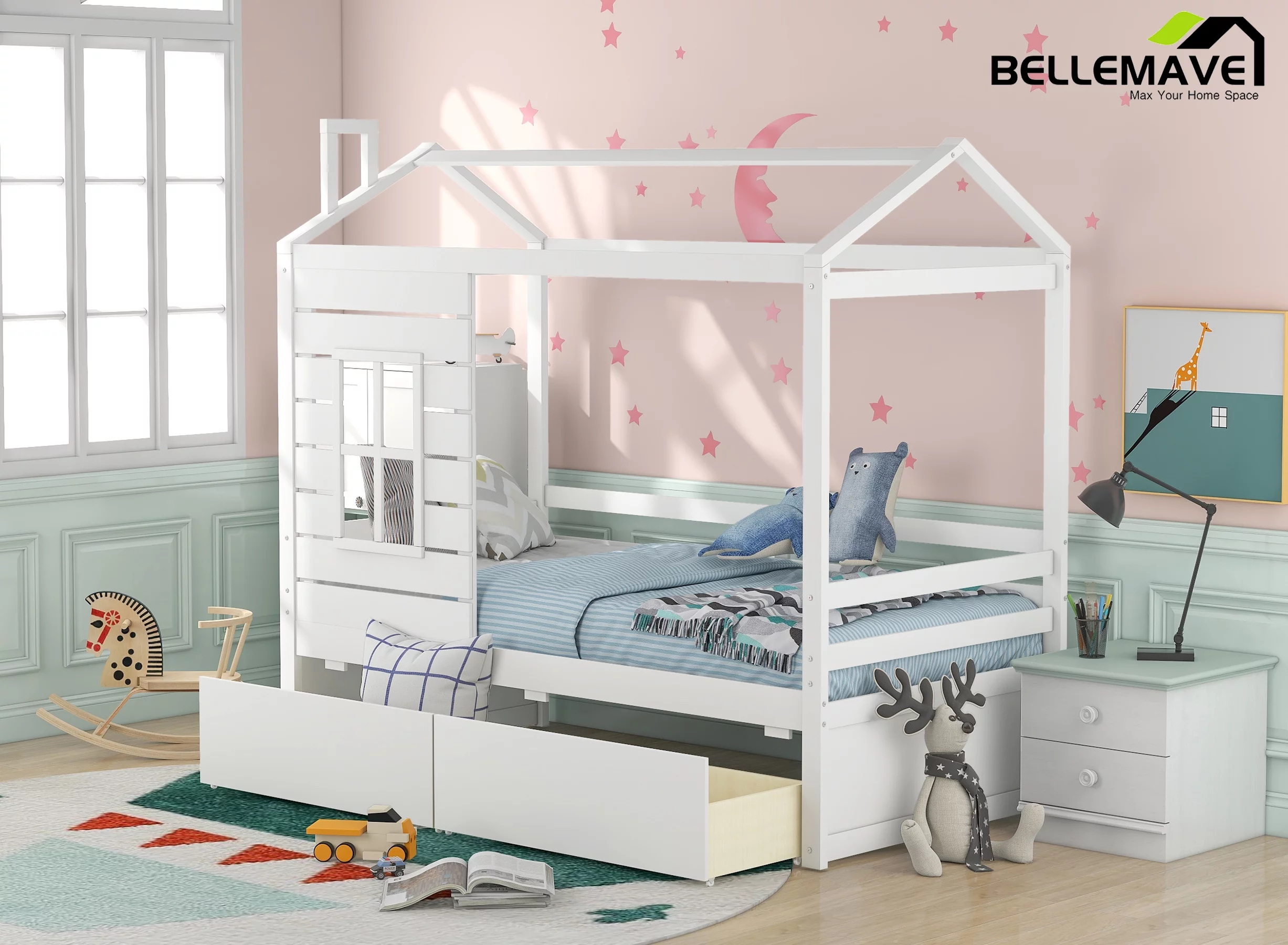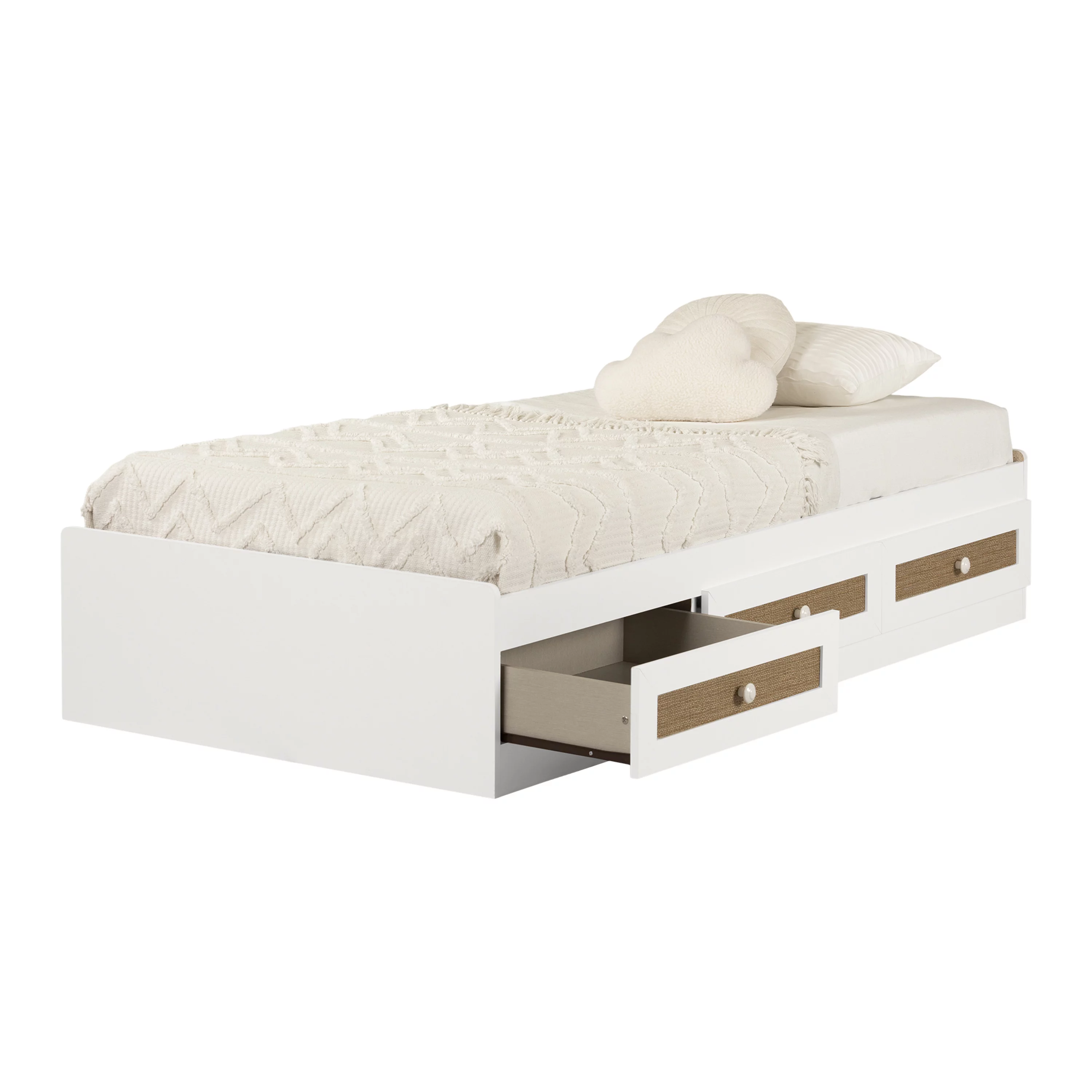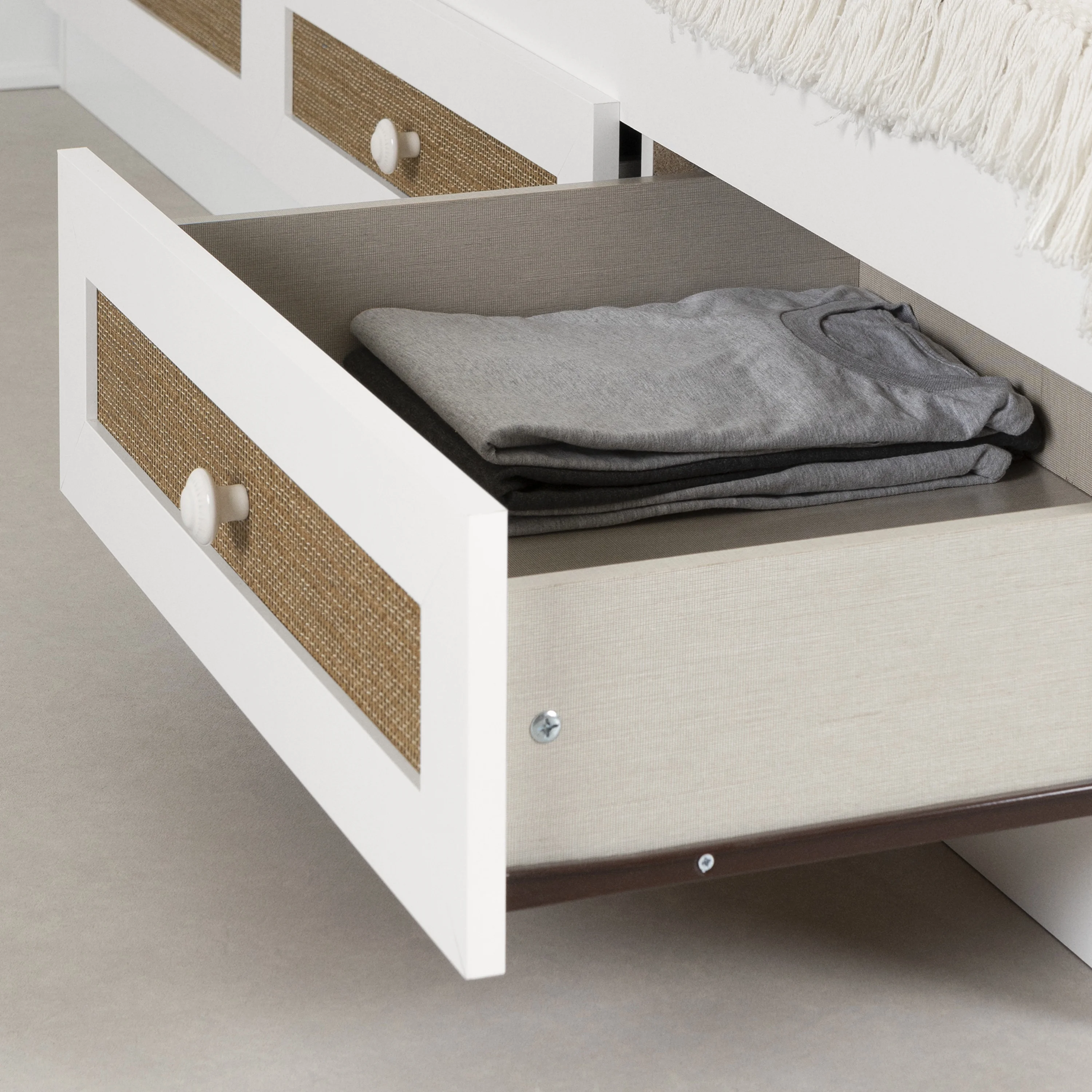 South Shore Bloom, Bohemian Harmony Twin Mates Bed with 3 Drawers, White and Faux Printed Rattan