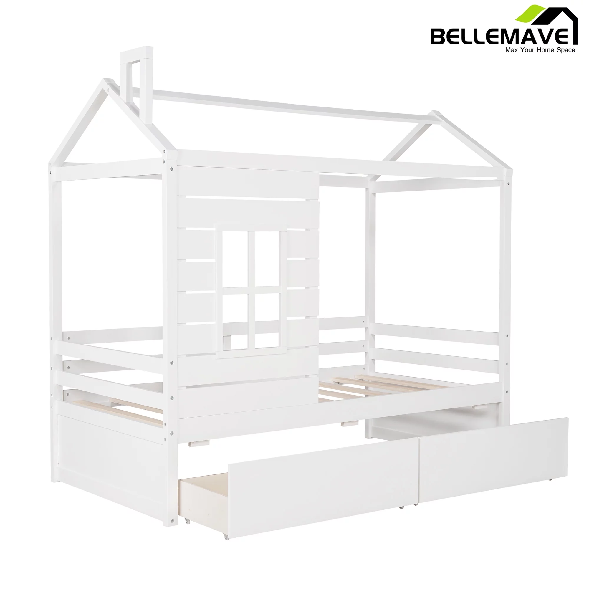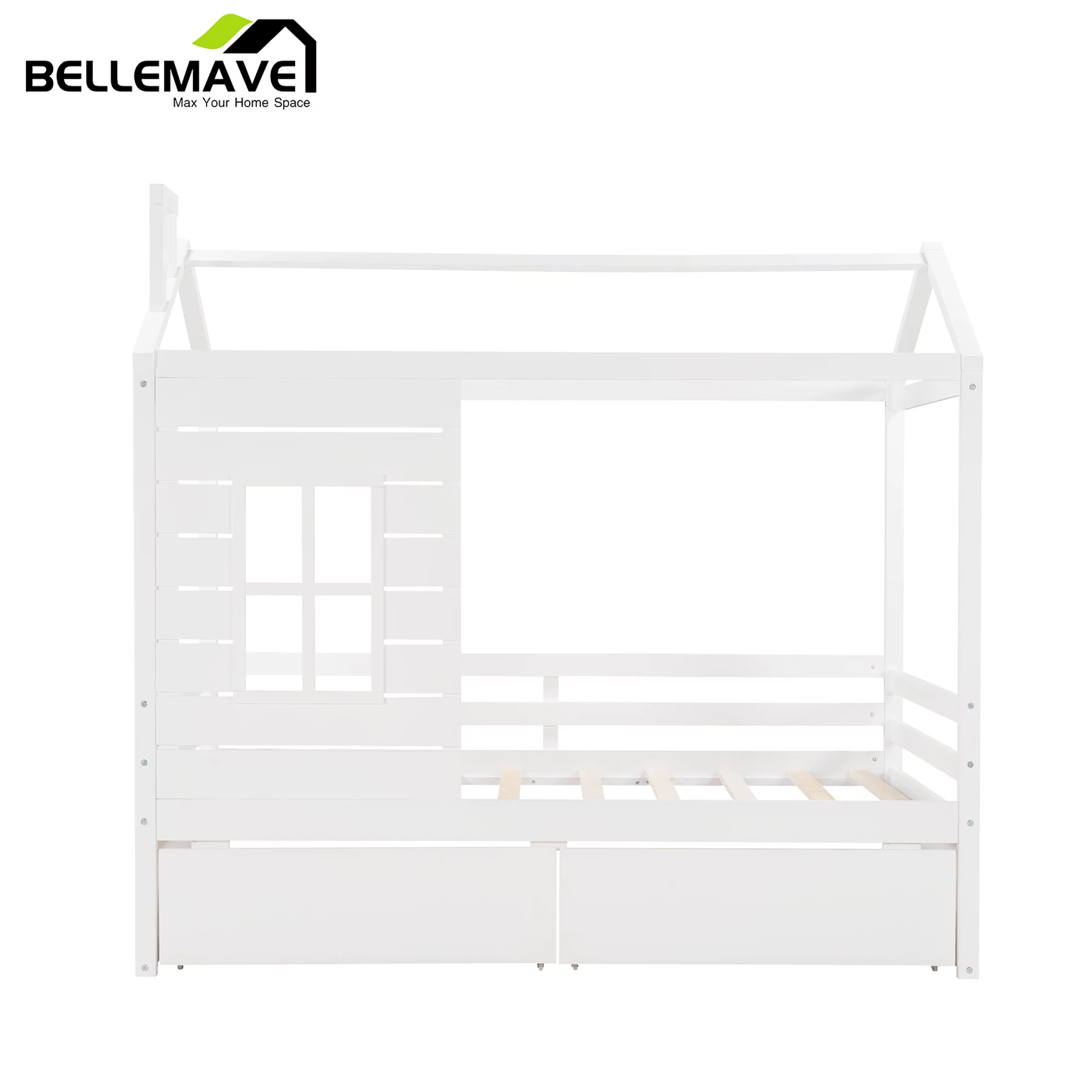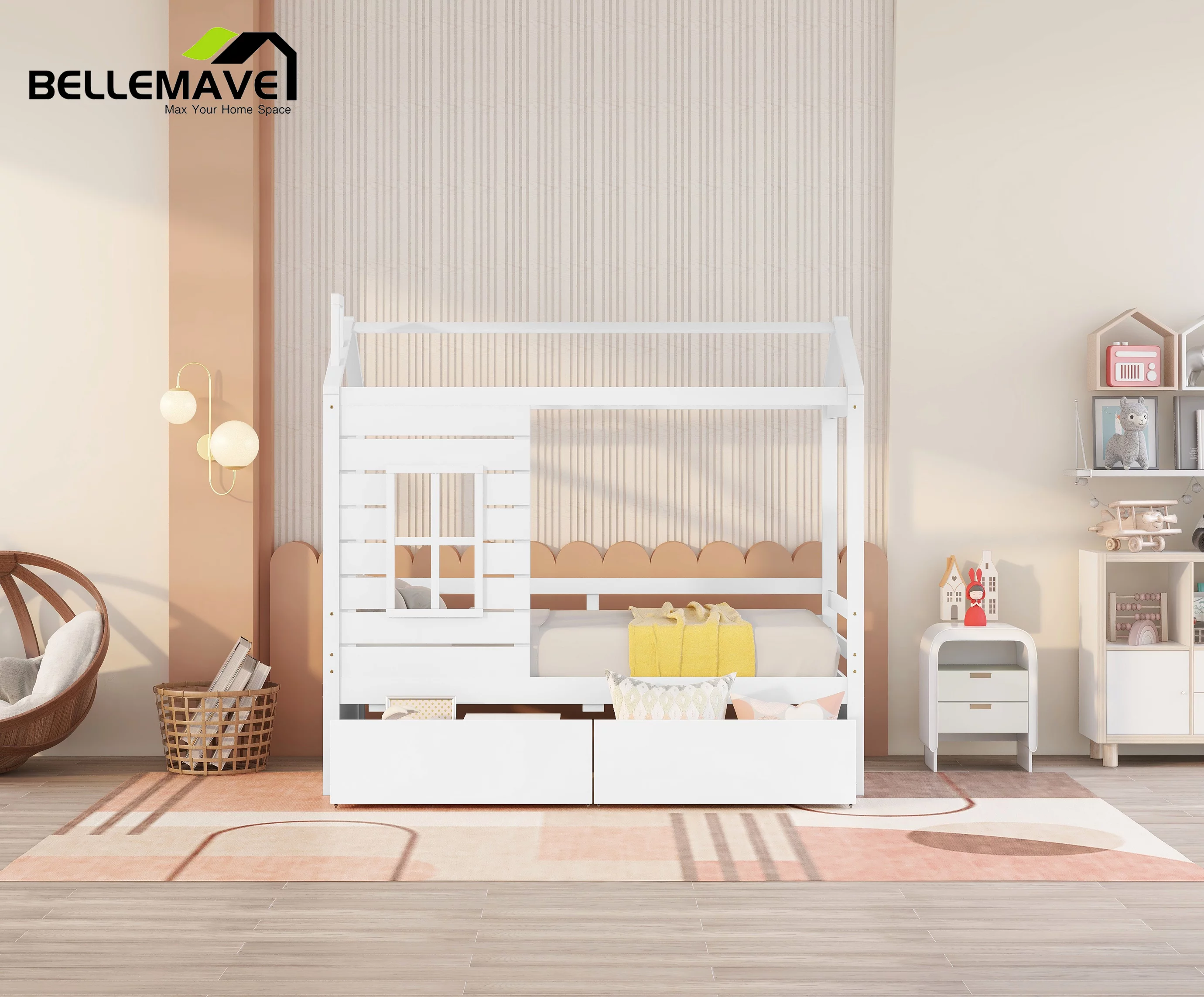 South Shore Bloom, Bohemian Harmony Twin Mates Bed with 3 Drawers, White and Faux Printed Rattan