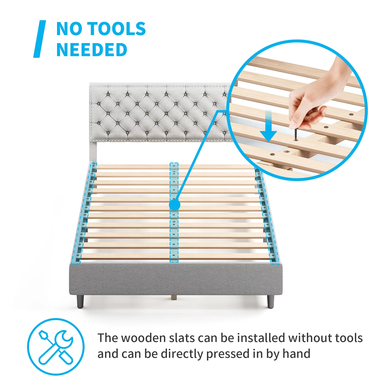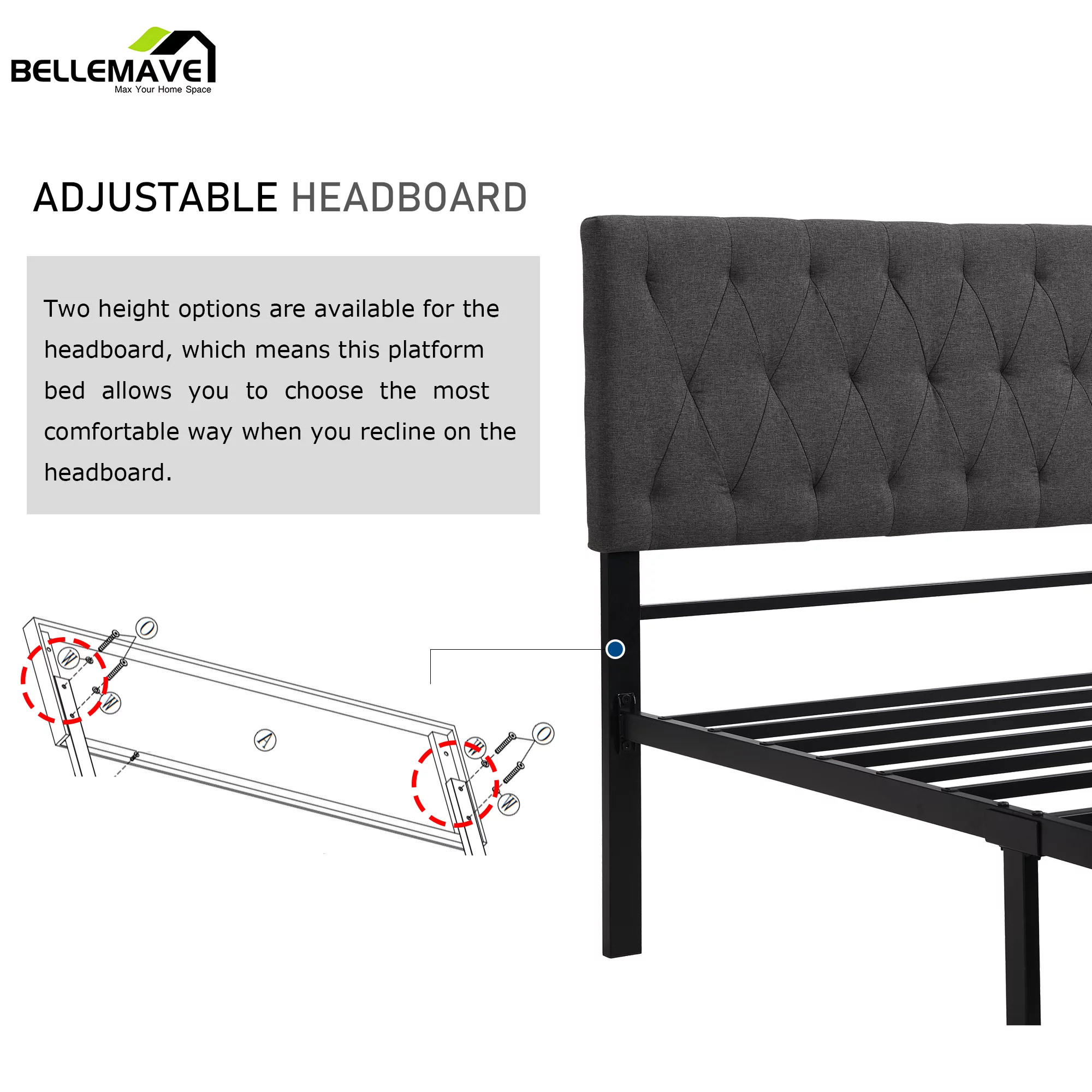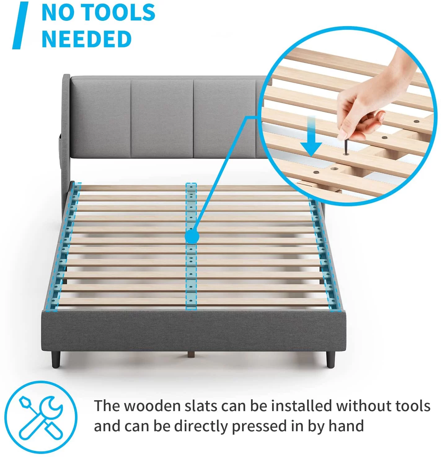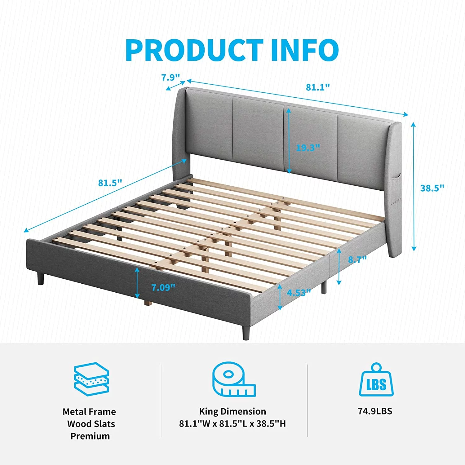 Sleeplanner 14 Inch Platform Metal Bed Frame / Wooden Slat Support King Size