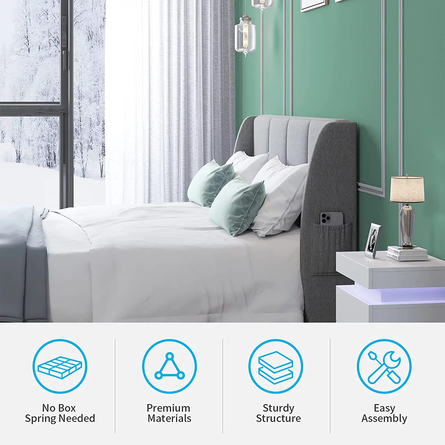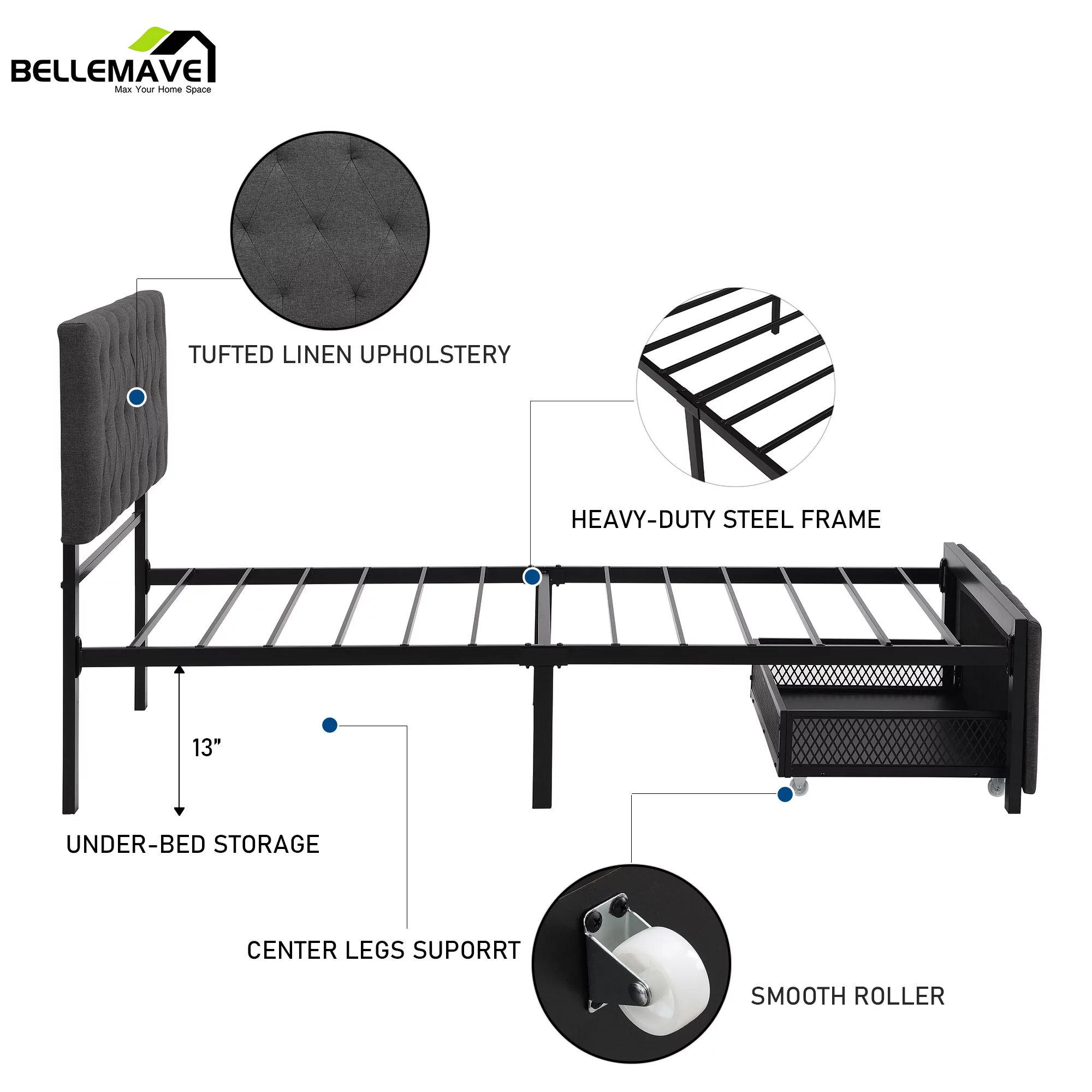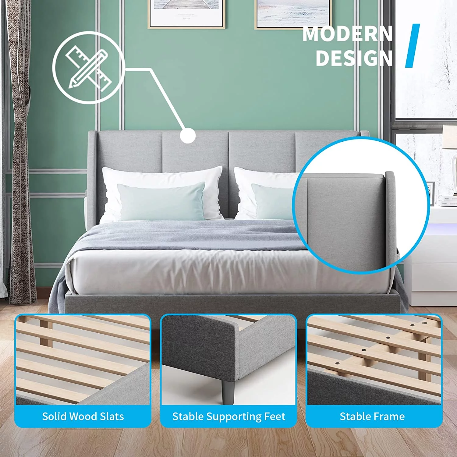 Sleeplanner 14 Inch Platform Metal Bed Frame / Wooden Slat Support King Size