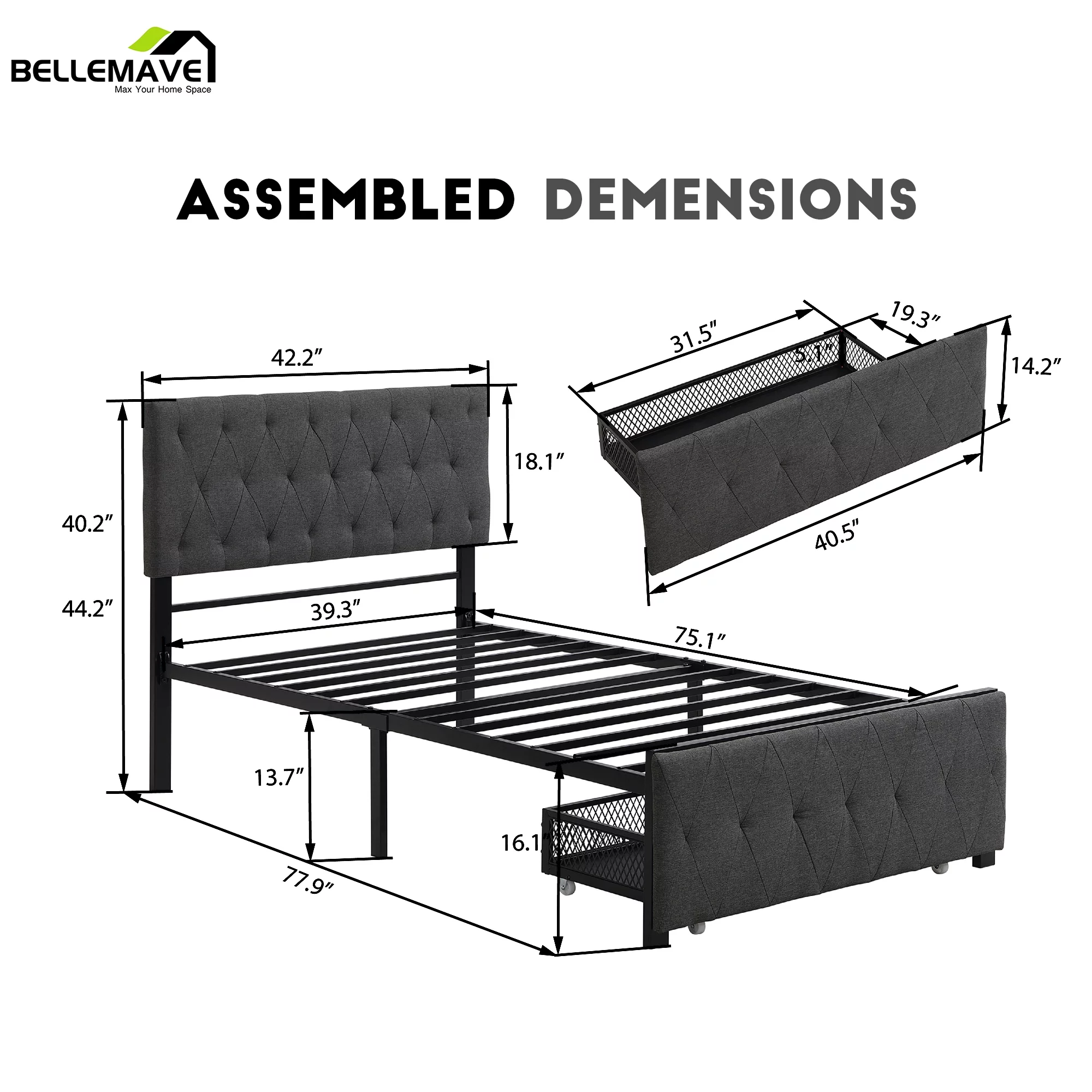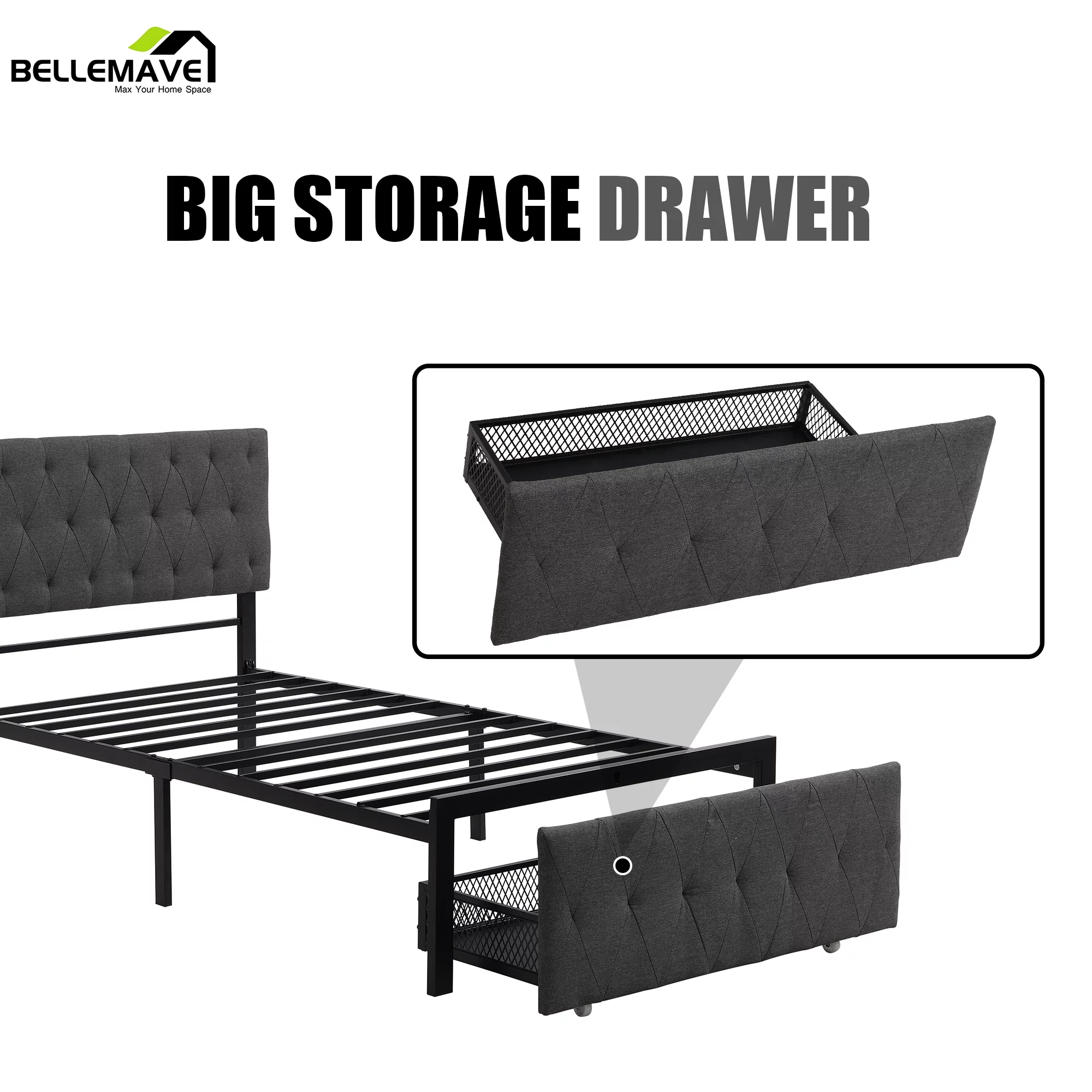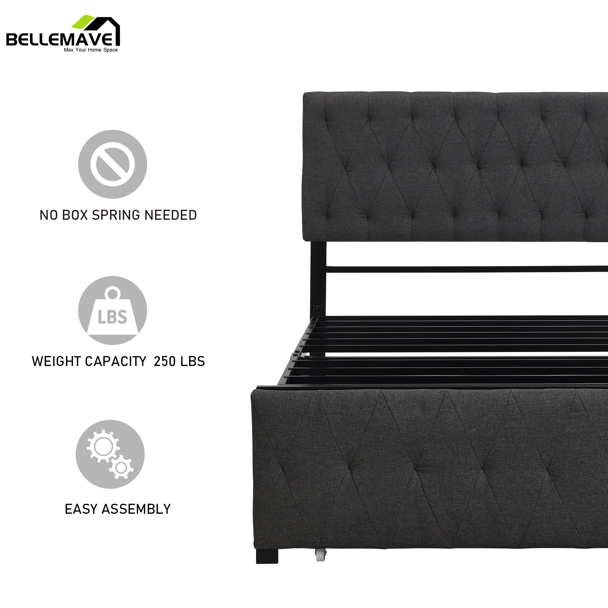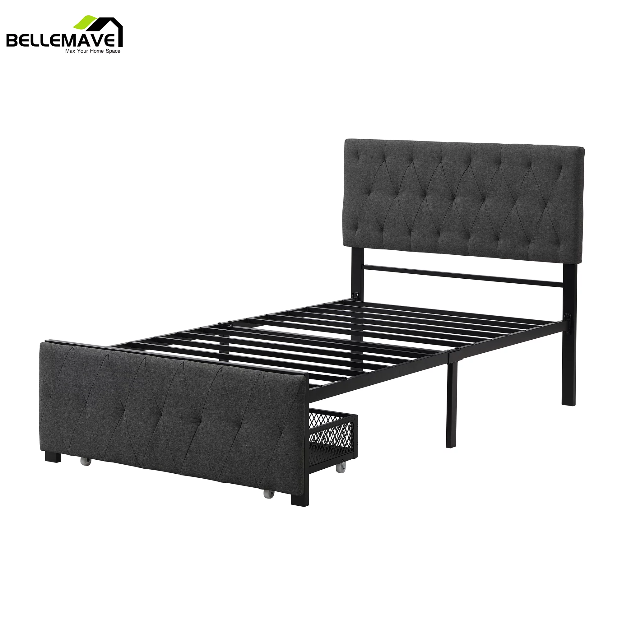 Sleeplanner 14 Inch Platform Metal Bed Frame / Wooden Slat Support King Size