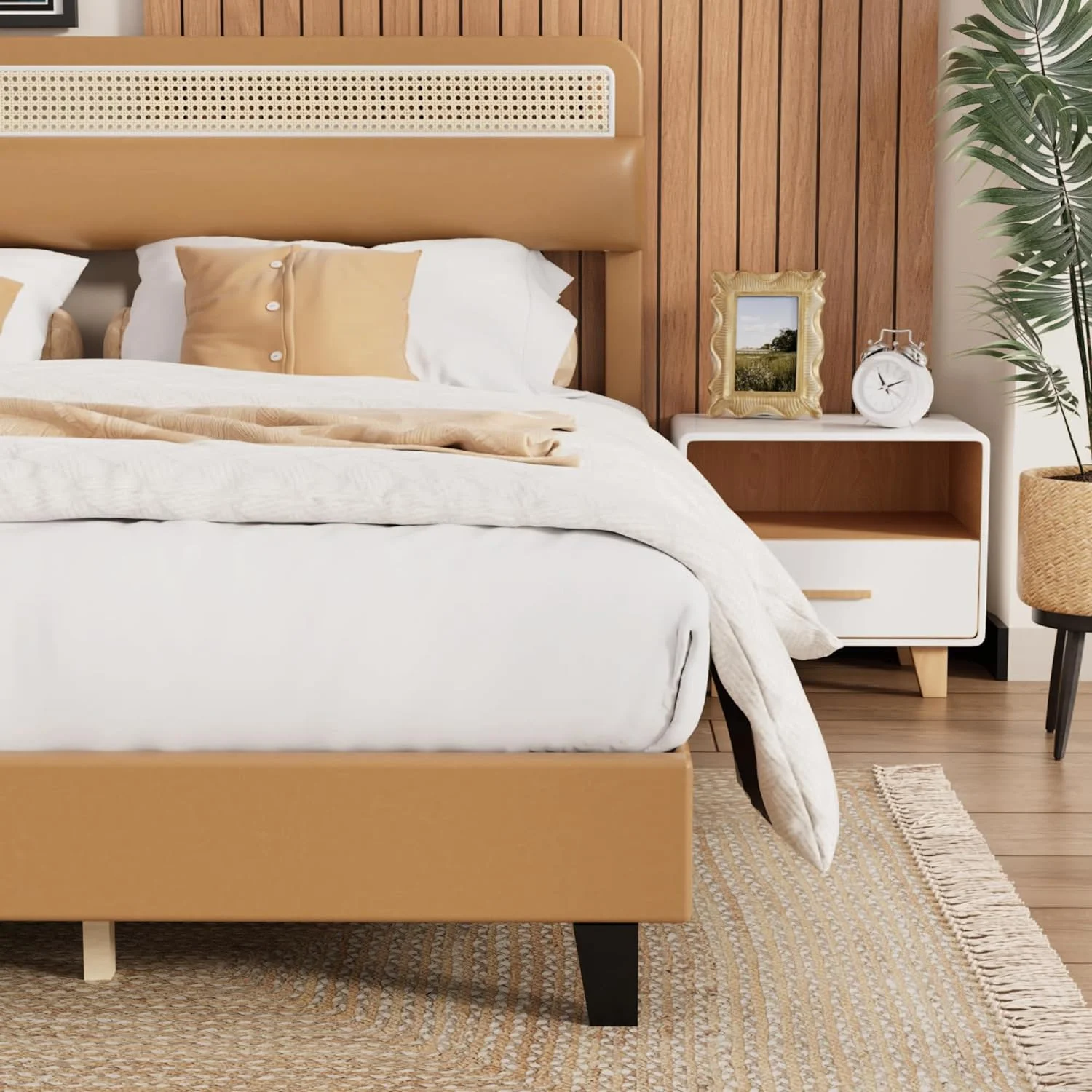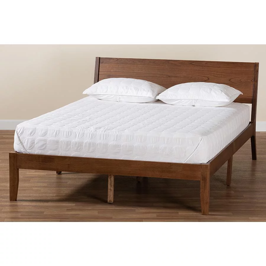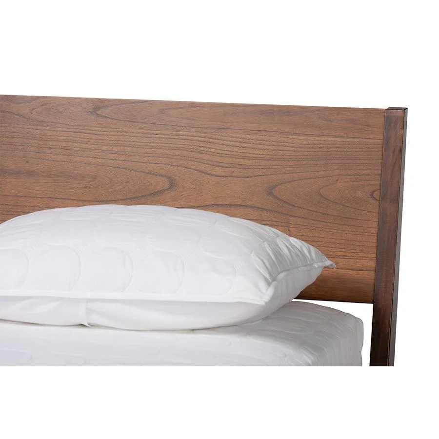 Baxton Studio Eridian Mid-Century Modern Walnut Brown Finished Wood and Natural Rattan Platform Bed King
