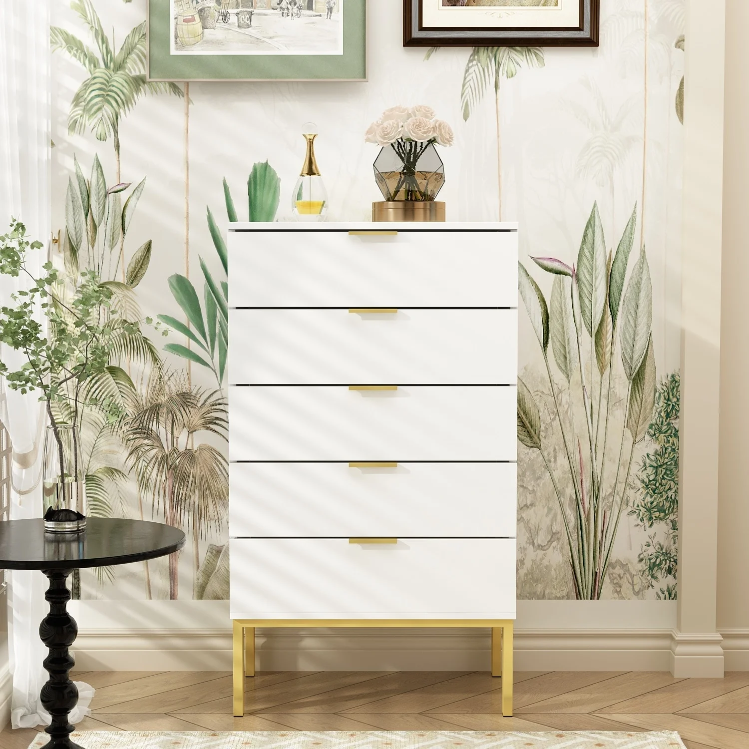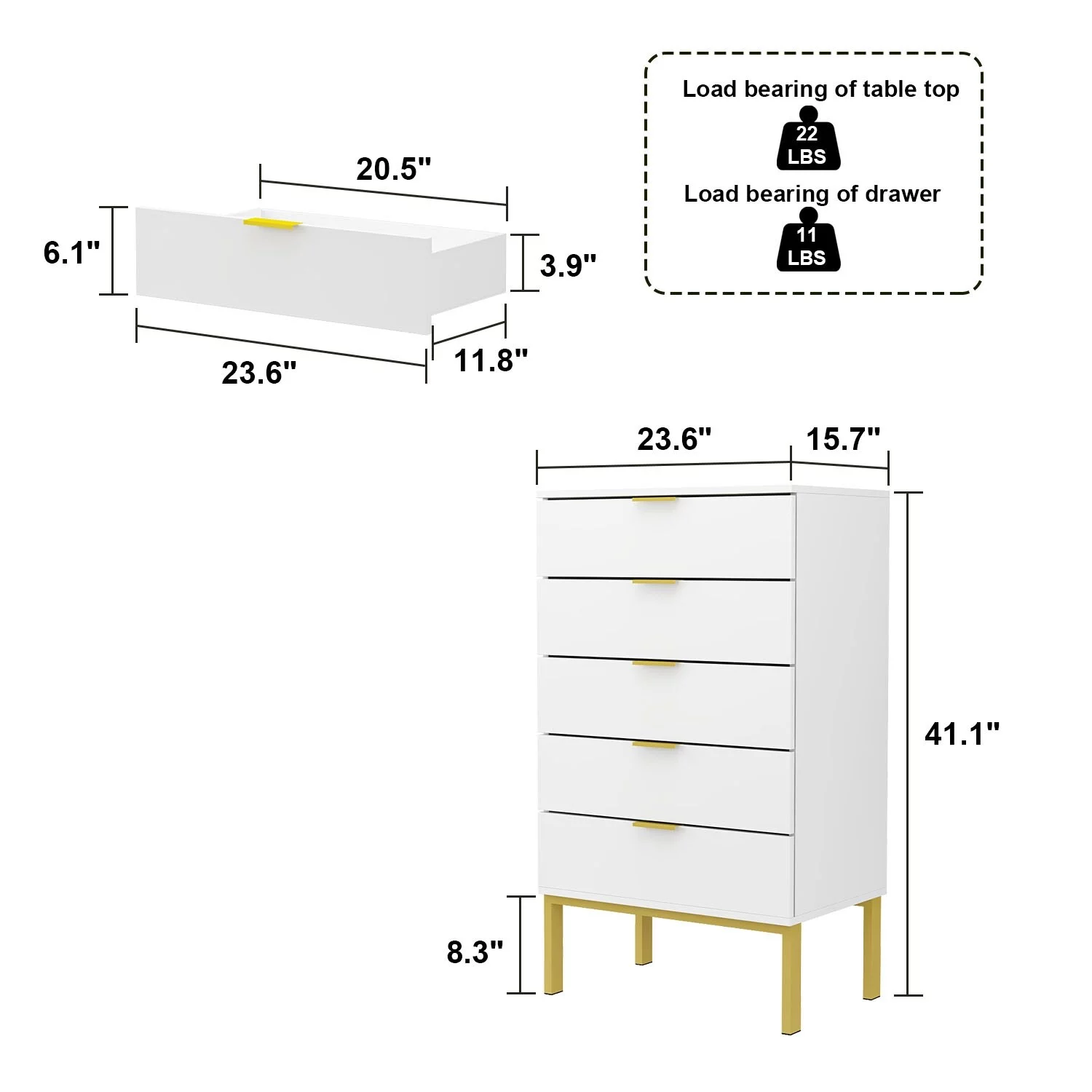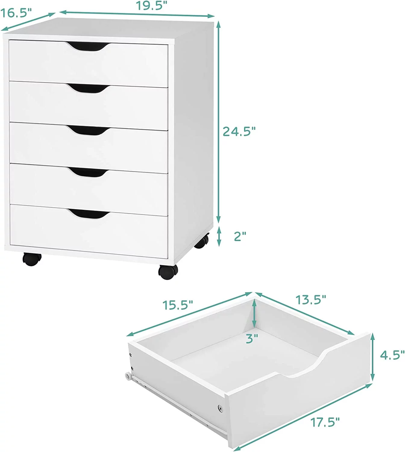 FUFU&GAGA 5Drawer Utility Storage Chest Drawer Organizer Cabinet Table White