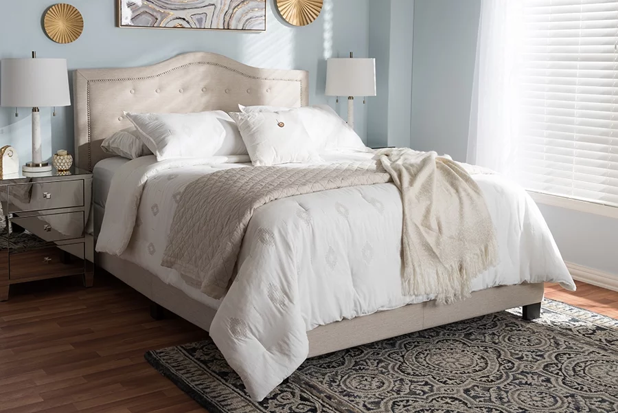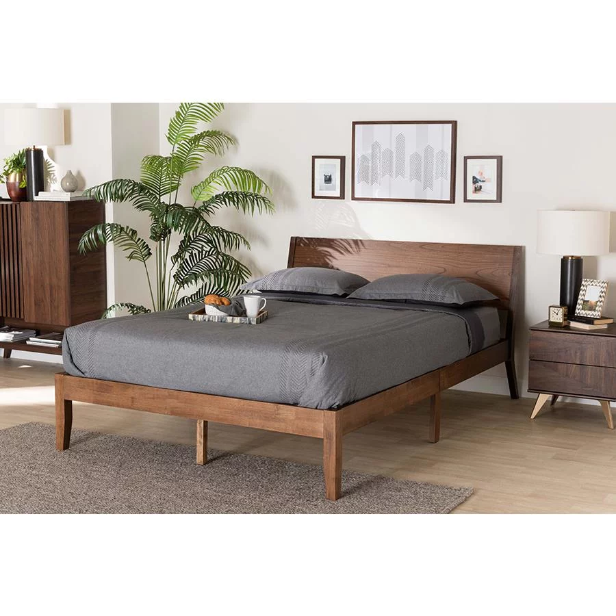 Baxton Studio Ratana Mid-Century Modern Transitional Wood Platform Bed-Grey King