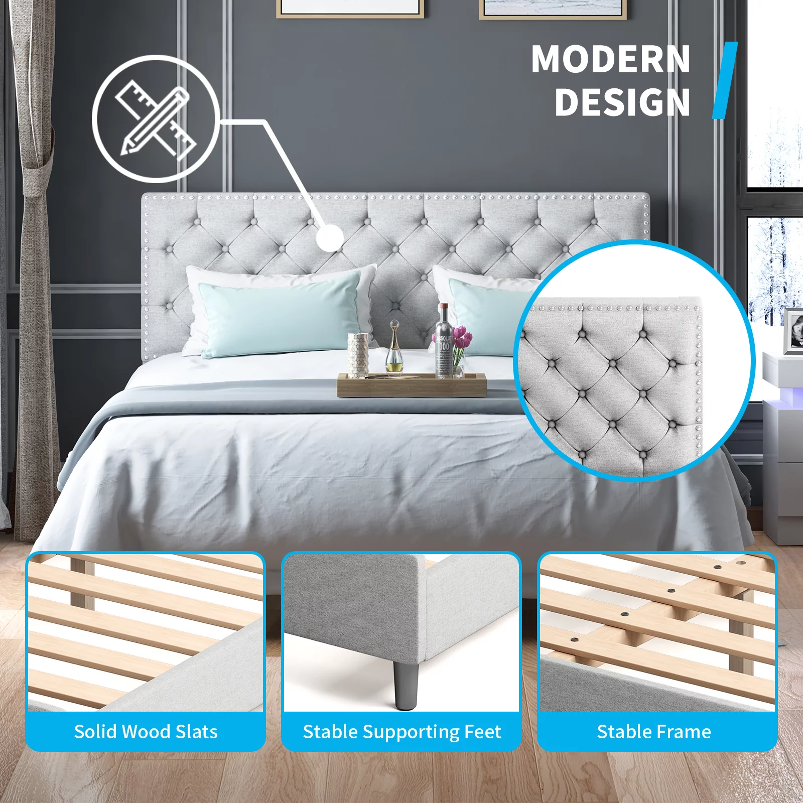 Sleeplanner 14 Inch Platform Steel Bed Frame Wooden Slat Support King Size