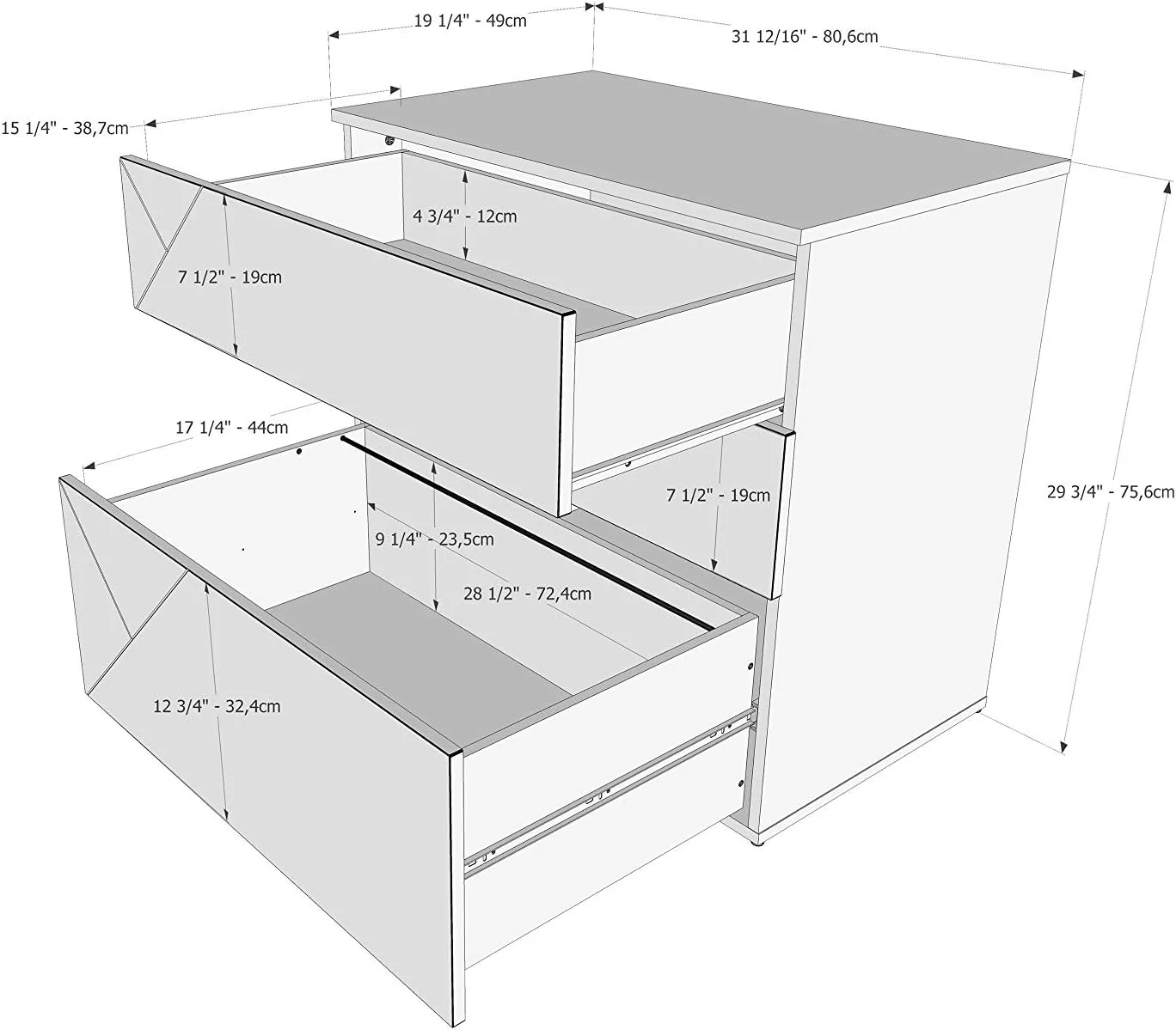 KHBIULIFE 608603 3-Drawer Multi-Purpose Dresser Chest Office and Filling Cabinet
