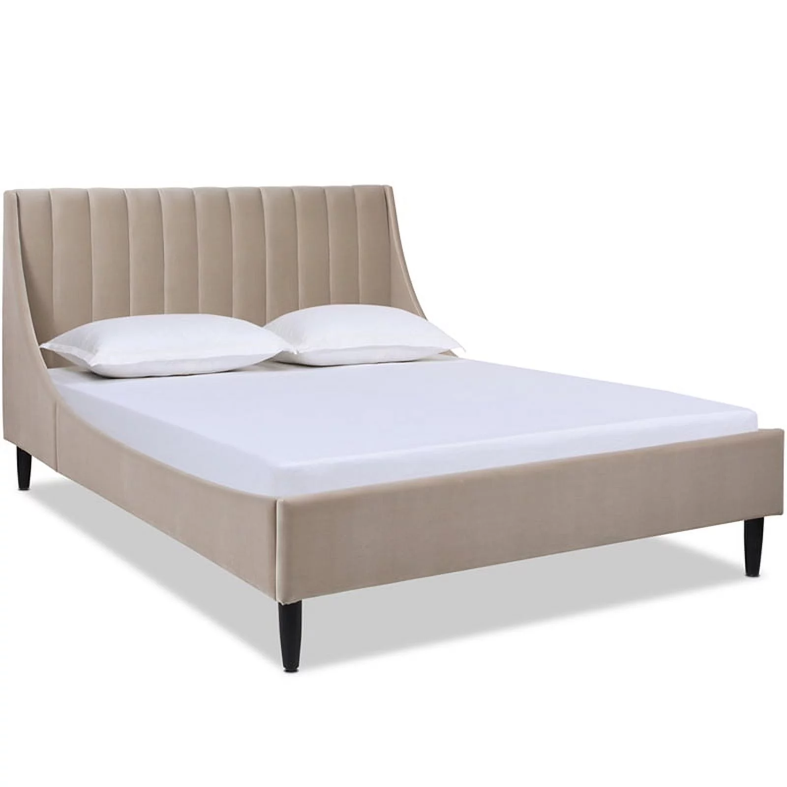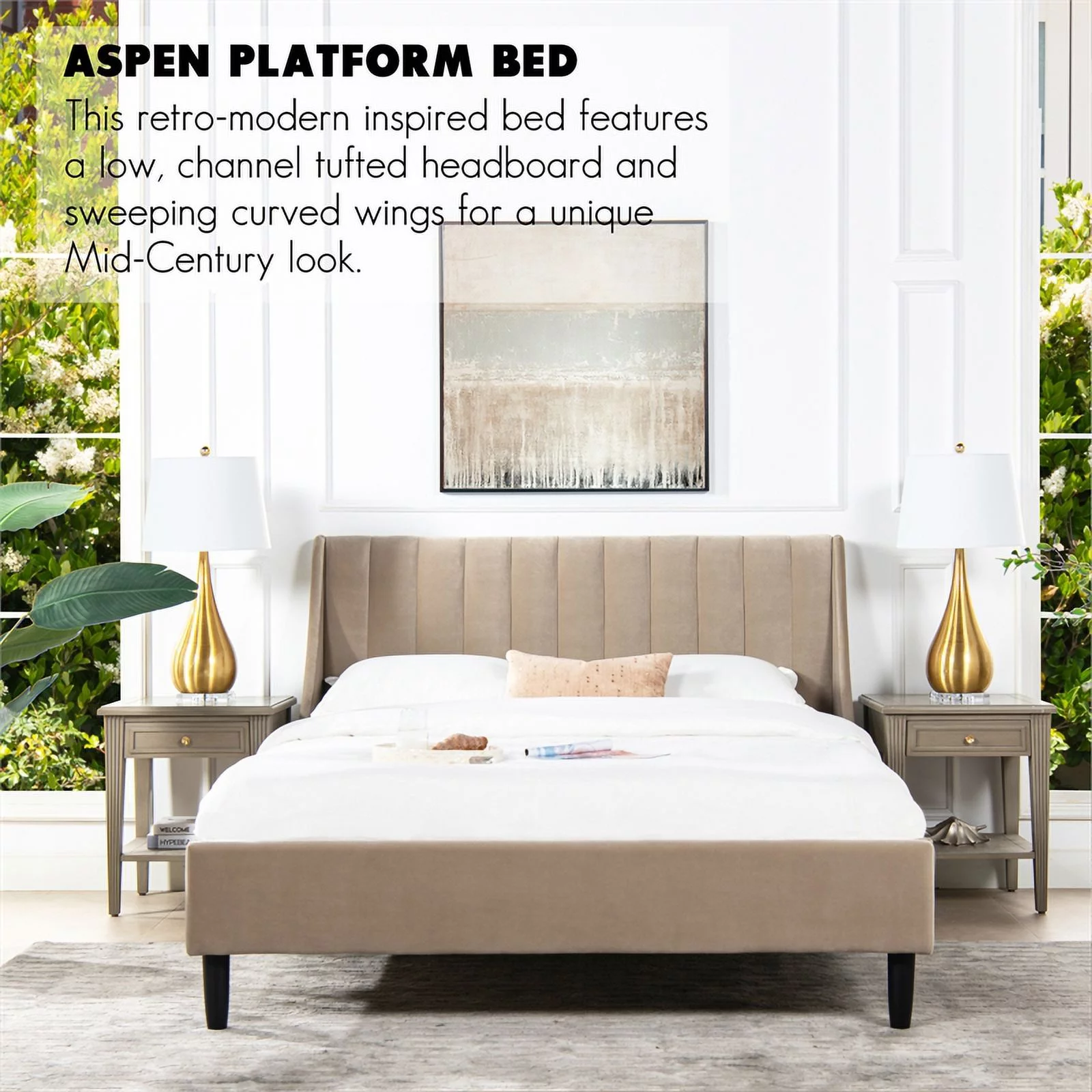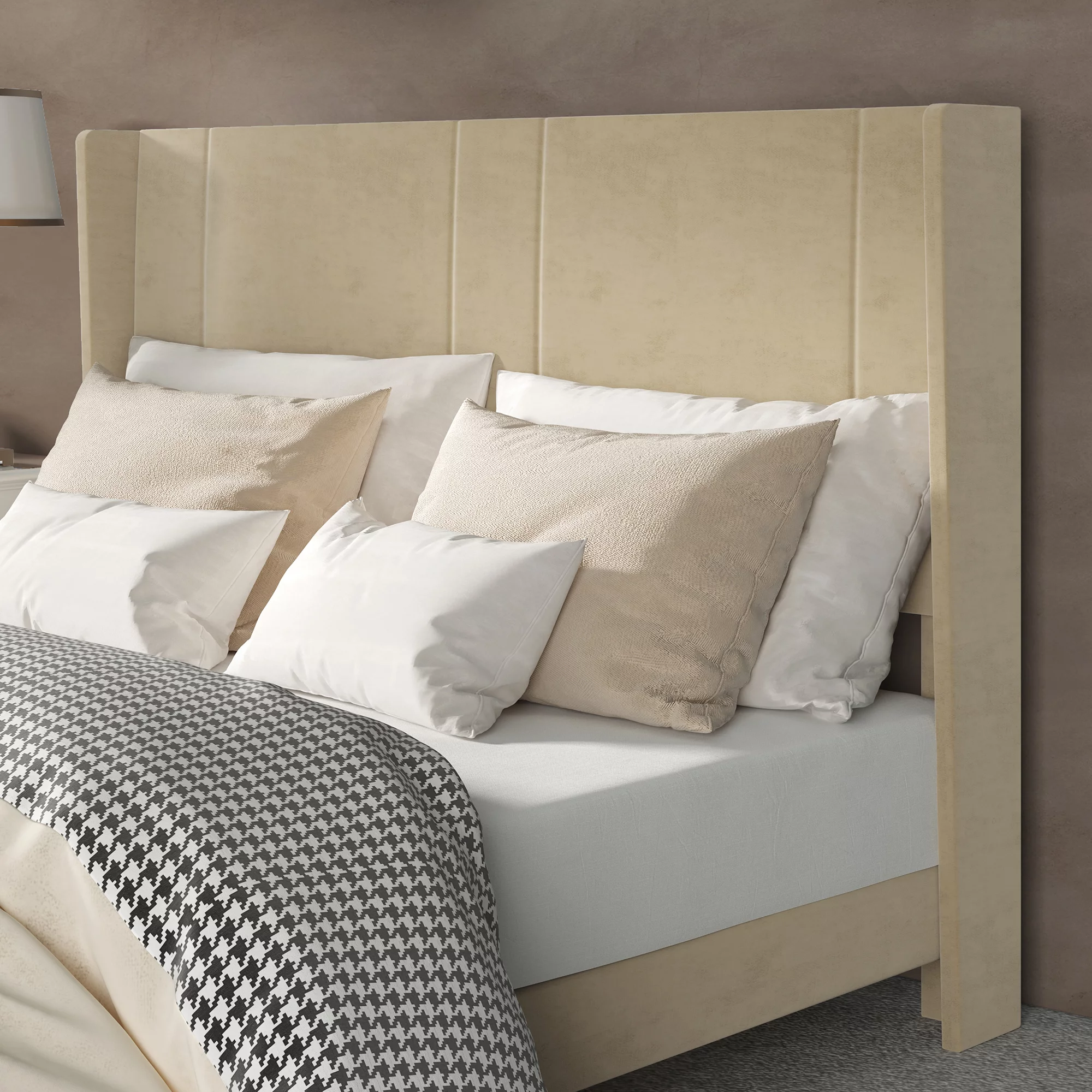 Dextrus Upholstered Bed Frame, Platform Bed Base with Beige Velvet Headboard and Wingback, No Box Spring Needed, Beige