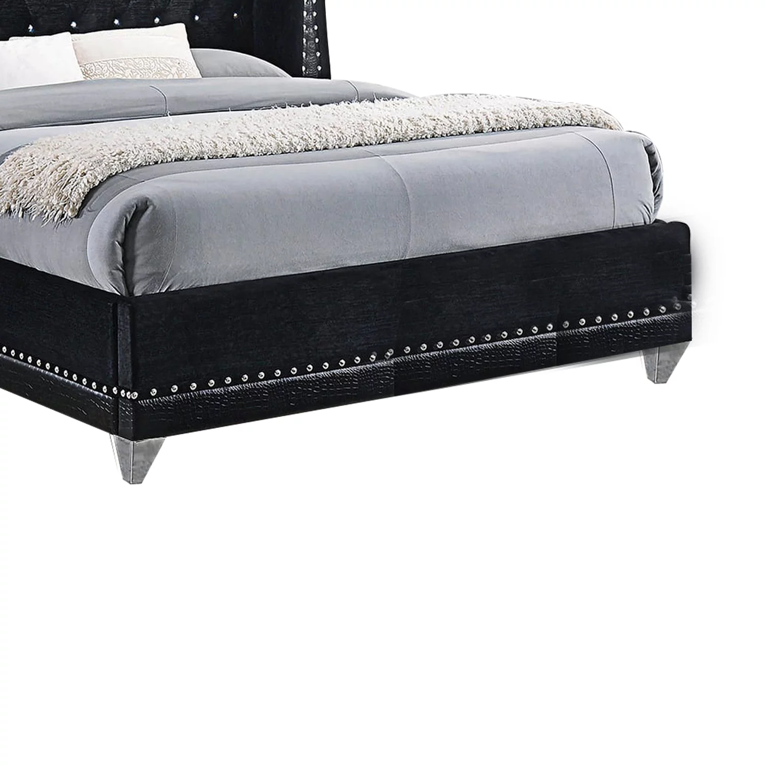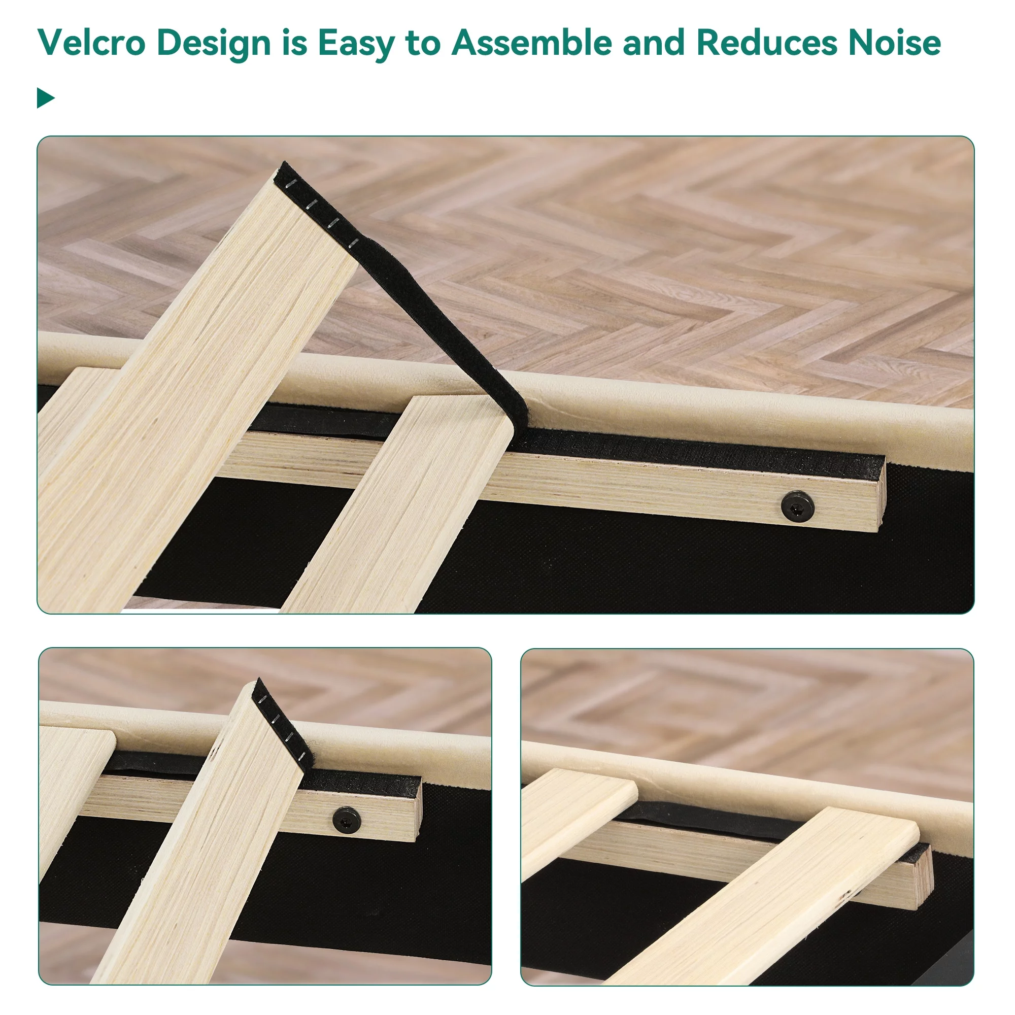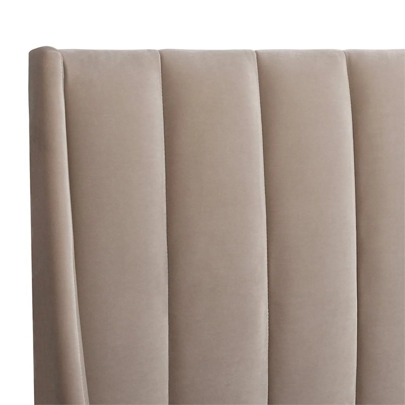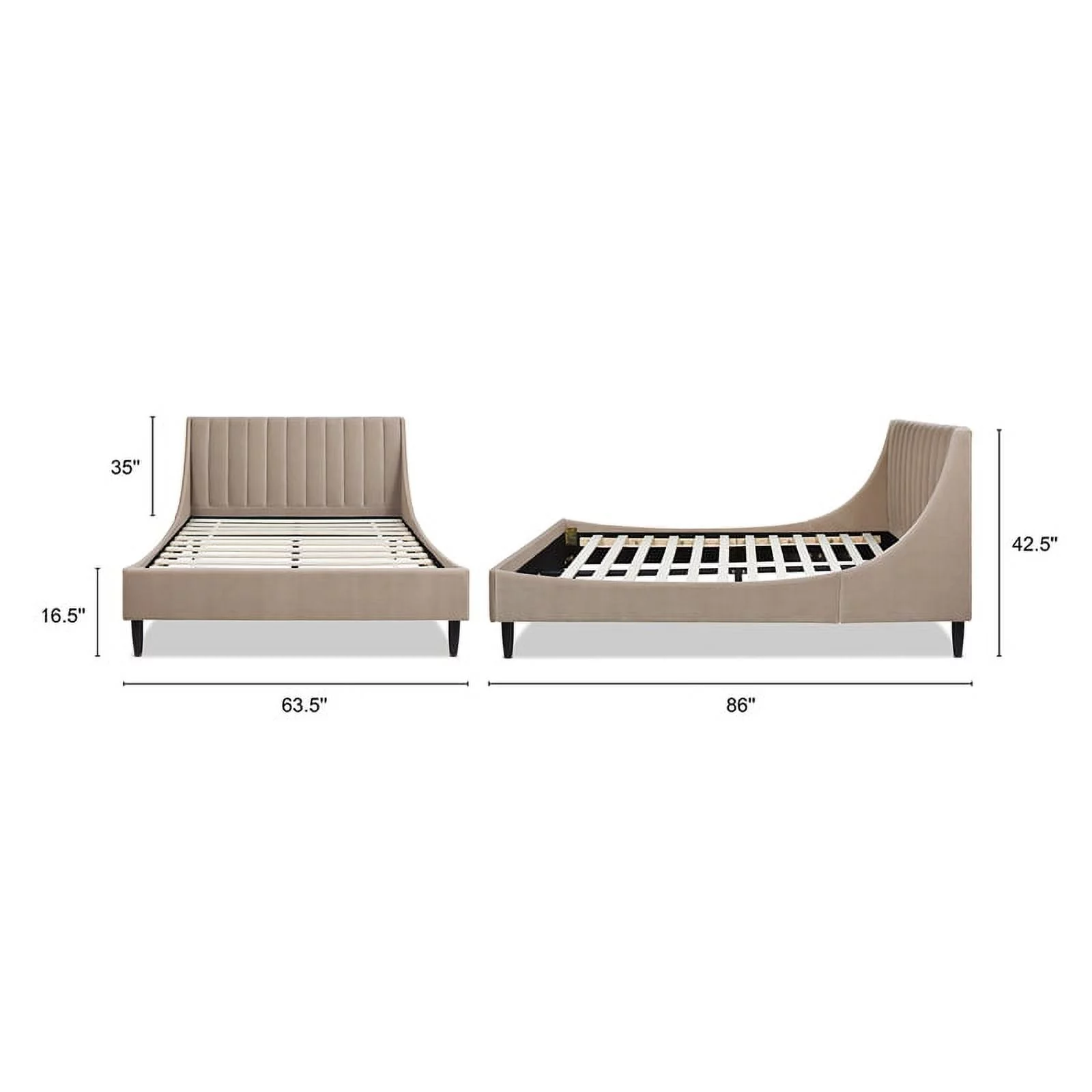 Dextrus Upholstered Bed Frame, Platform Bed Base with Beige Velvet Headboard and Wingback, No Box Spring Needed, Beige