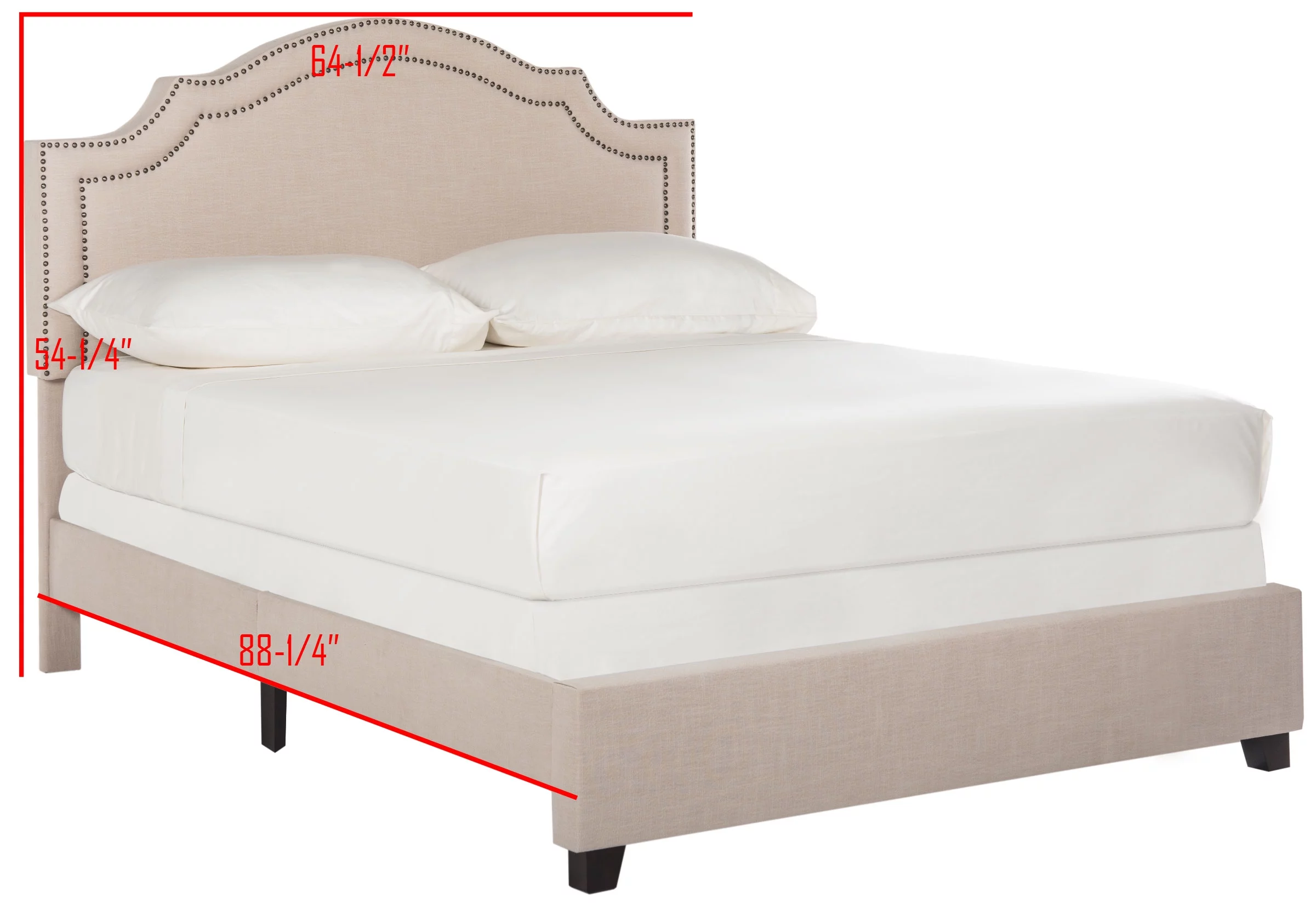 SAFAVIEH Theron Modern Elegant Upholstered Bed Frame with Nail Heads, Full, Light Beige/Brass Nails