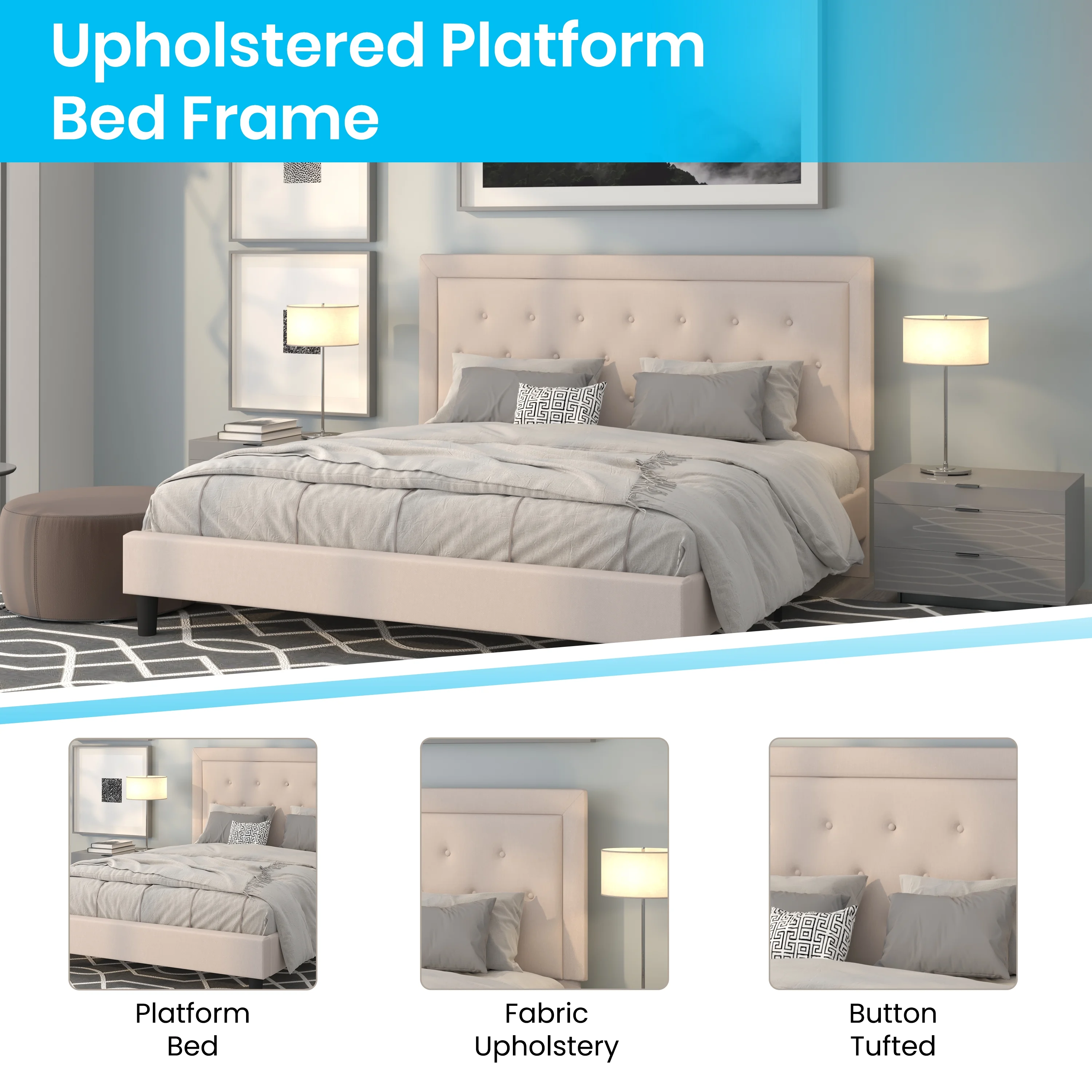 Flash Furniture Roxbury King Size Tufted Upholstered Platform Bed in Beige Fabric
