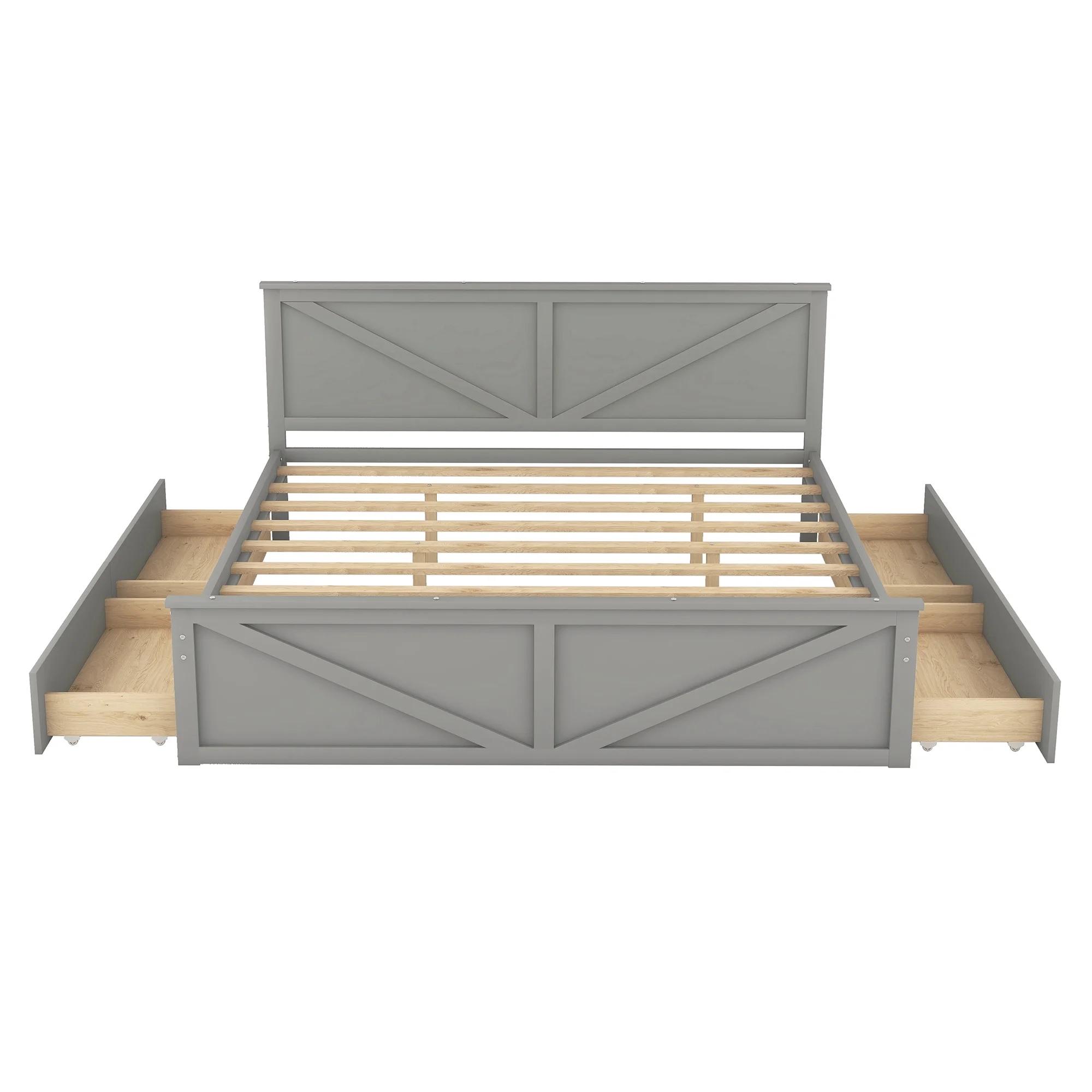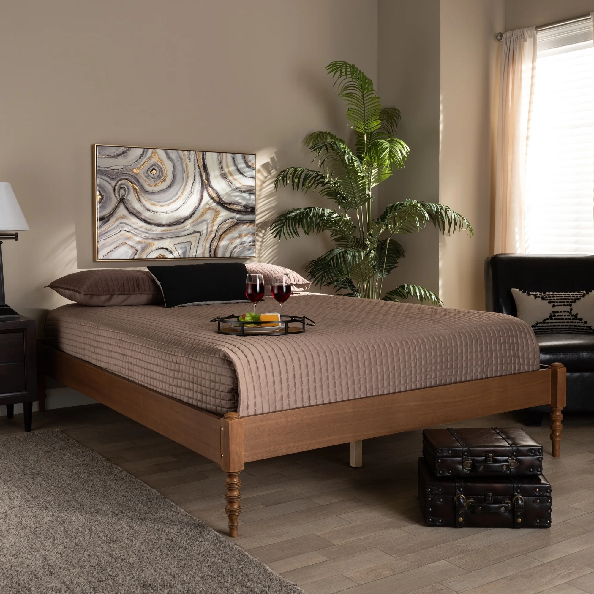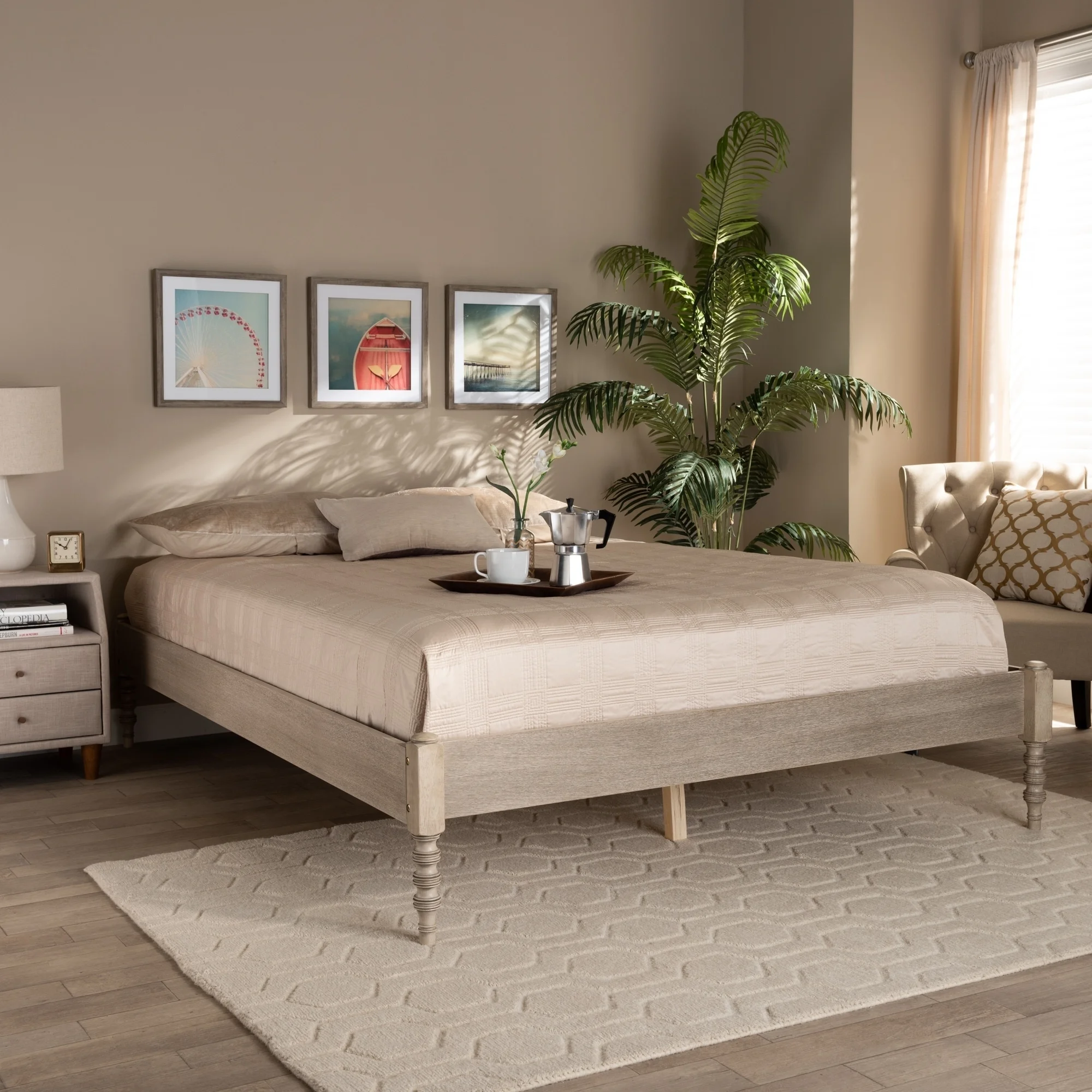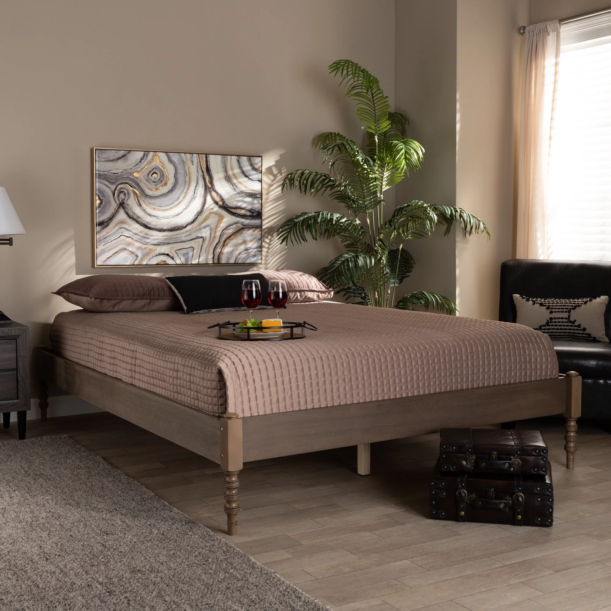 Baxton Studio Cielle French Bohemian Wood Platform Bed Frame Weathered grey King Weathered
