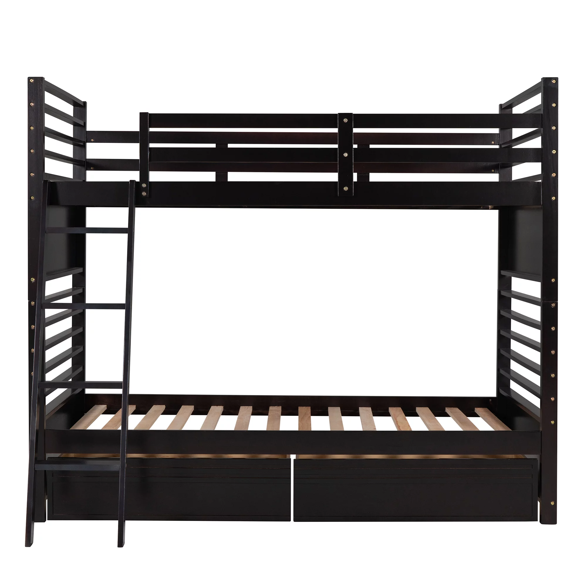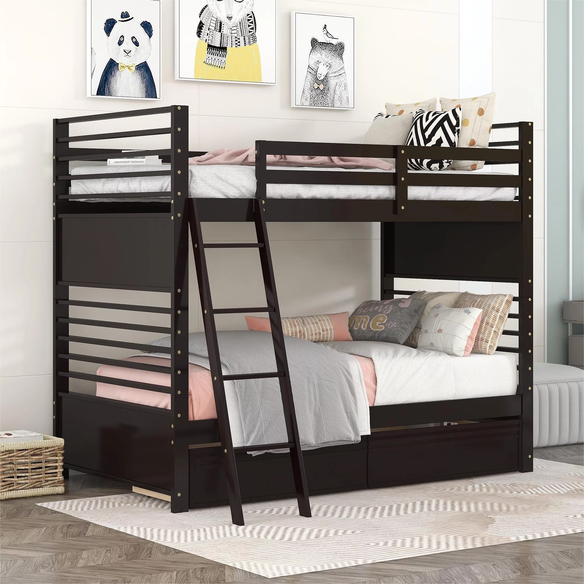 Twin-Over-Twin Metal Bunk Bed With Trundle,Can be Divided into two beds,No Box Spring needed ,Black ( old sku: MF194806AAB )