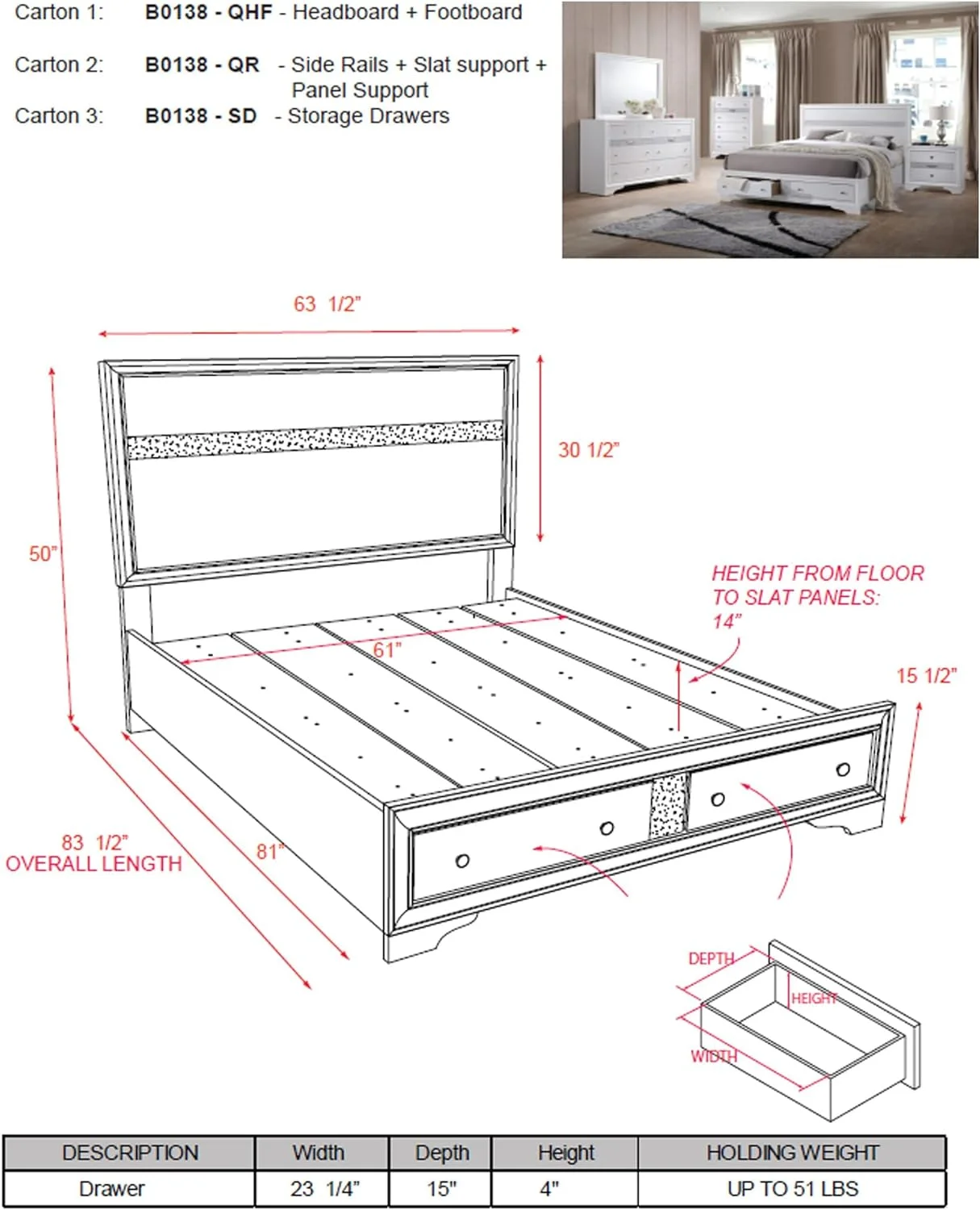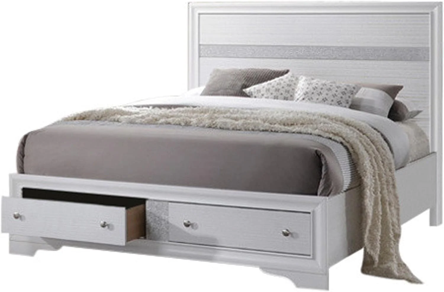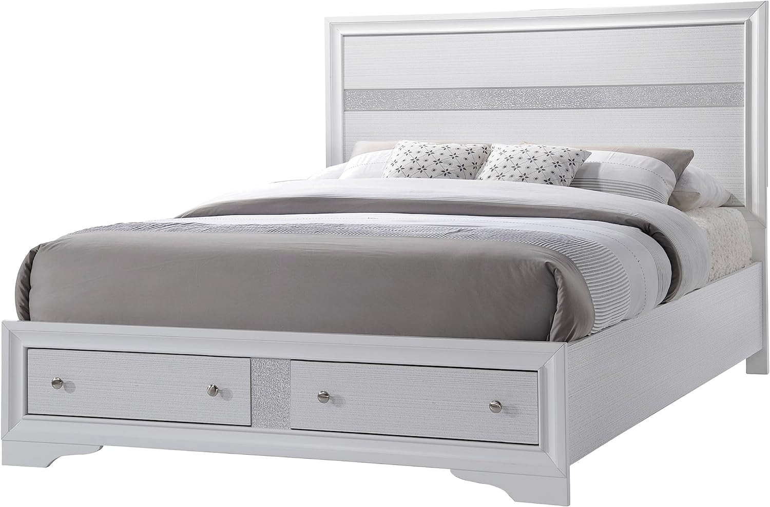Kings Brand Furniture - Watson Wooden Queen Size Bed with Storage Drawers, White