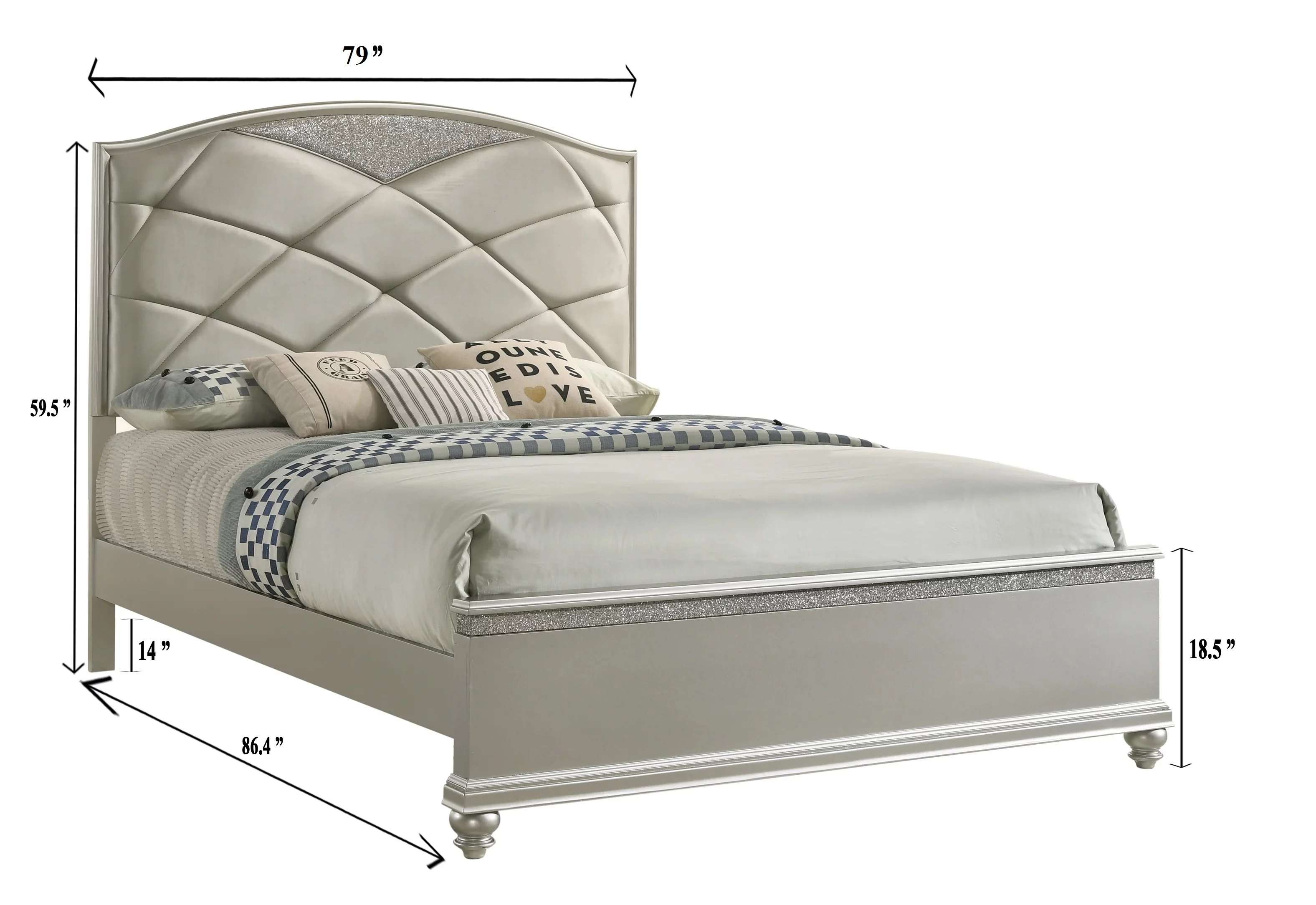 1pc Traditional Style King Size Panel Upholstered Bed Wooden Bedroom Furniture Set Metallic Silver Finish