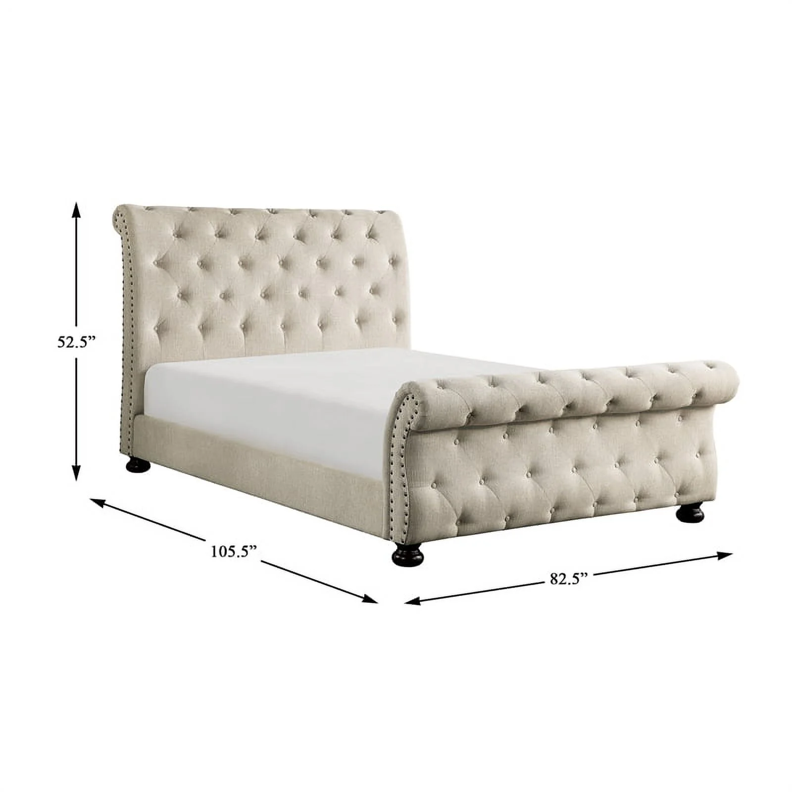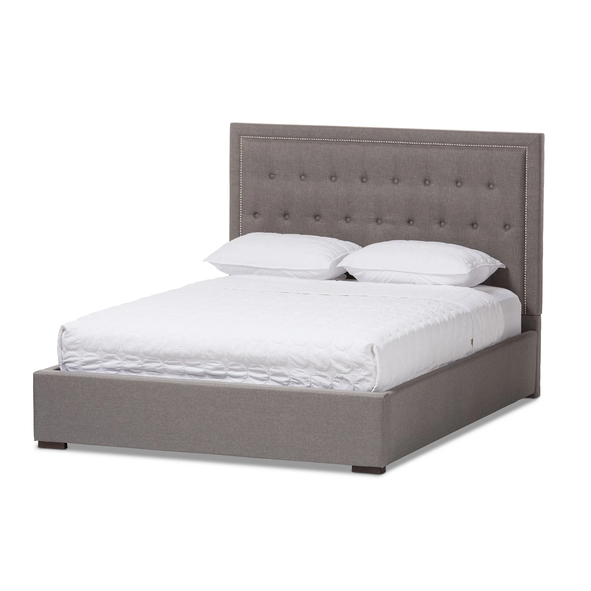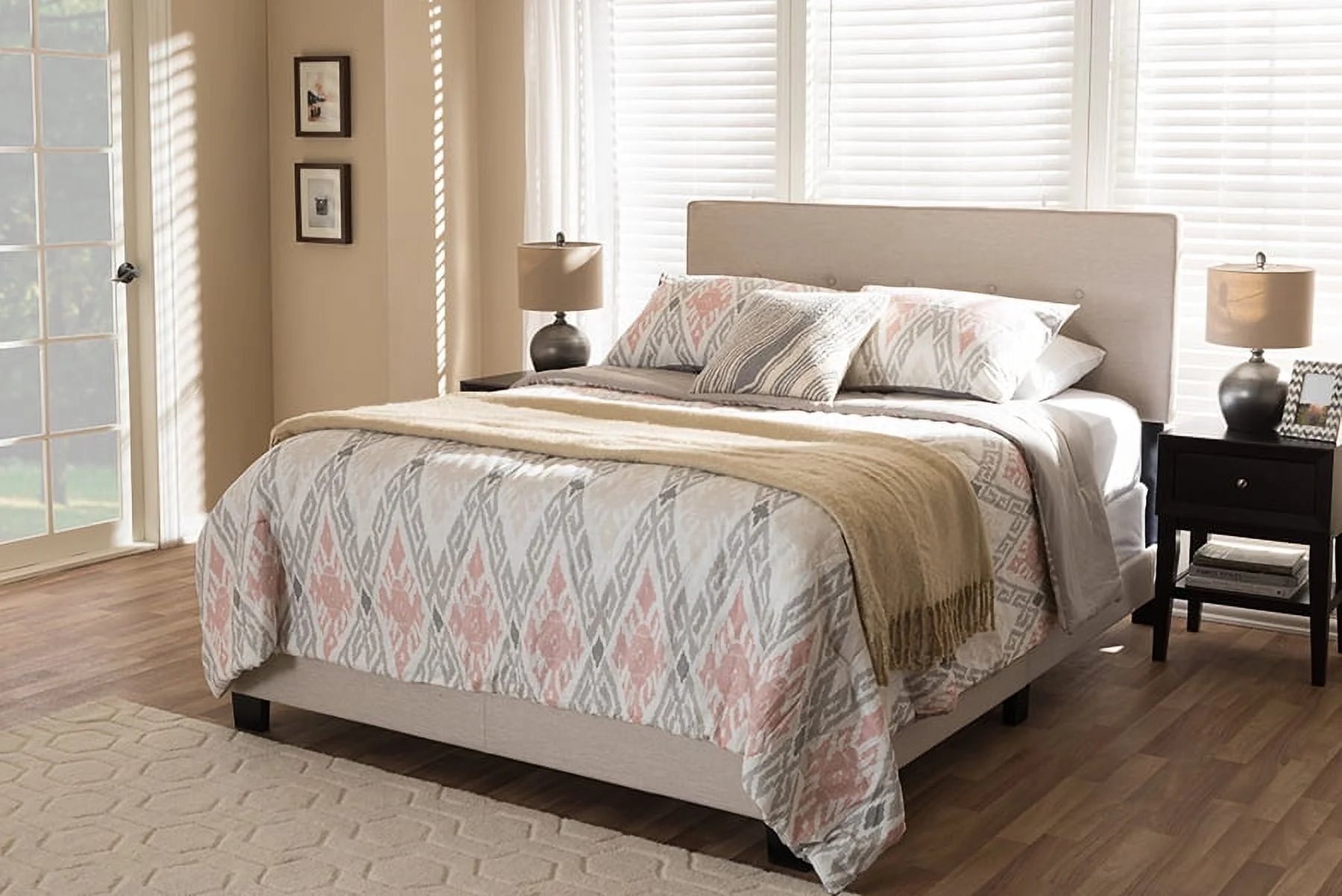 Baxton Studio Hampton Modern and Contemporary Light Beige Fabric Upholstered Queen Size Bed